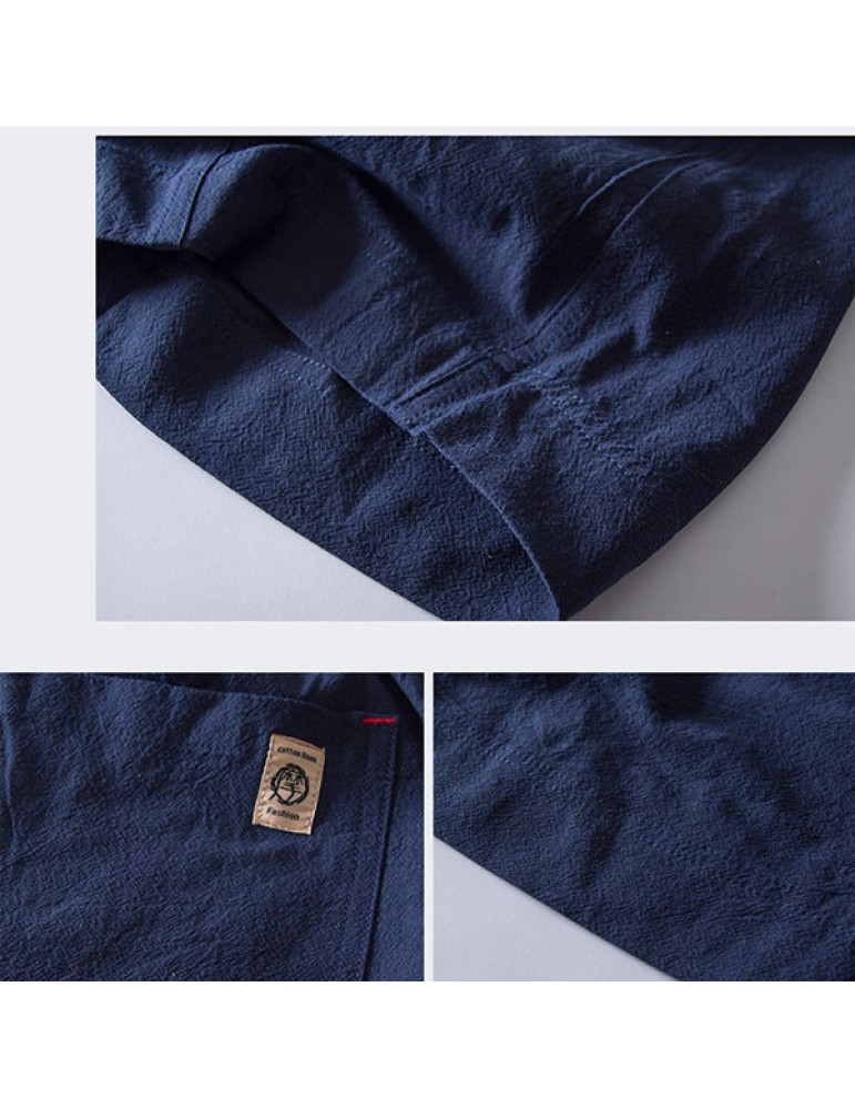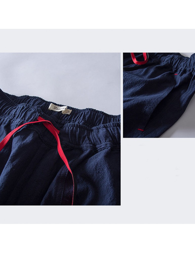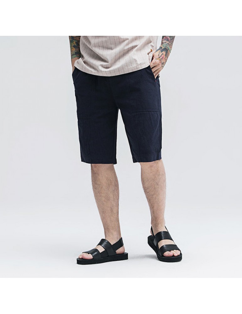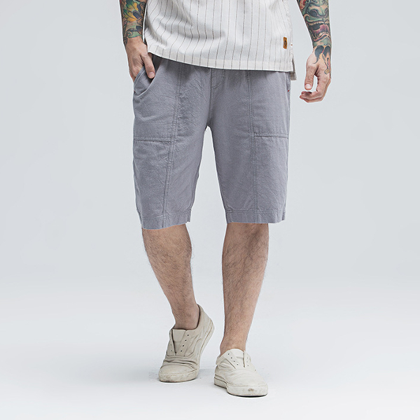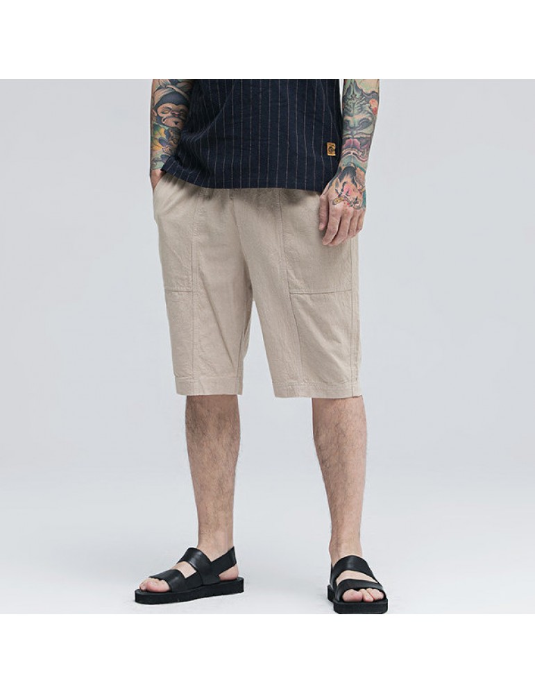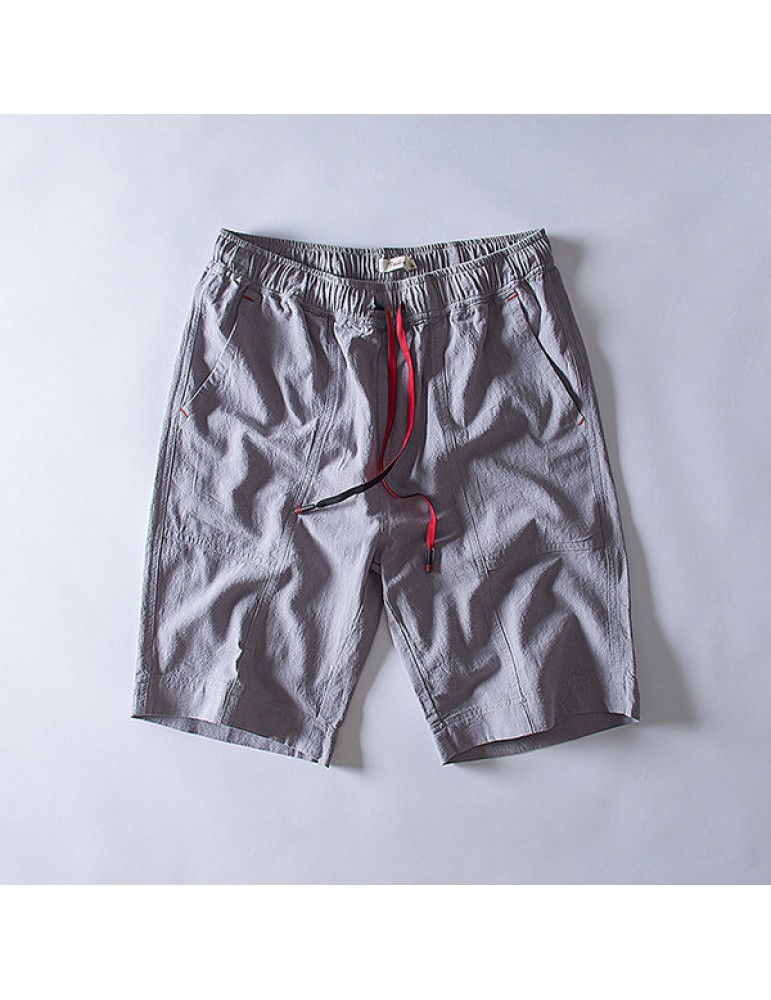 Mens Summer 100% Cotton Breathable Solid Color Knee Length Drawstring Casual Shorts