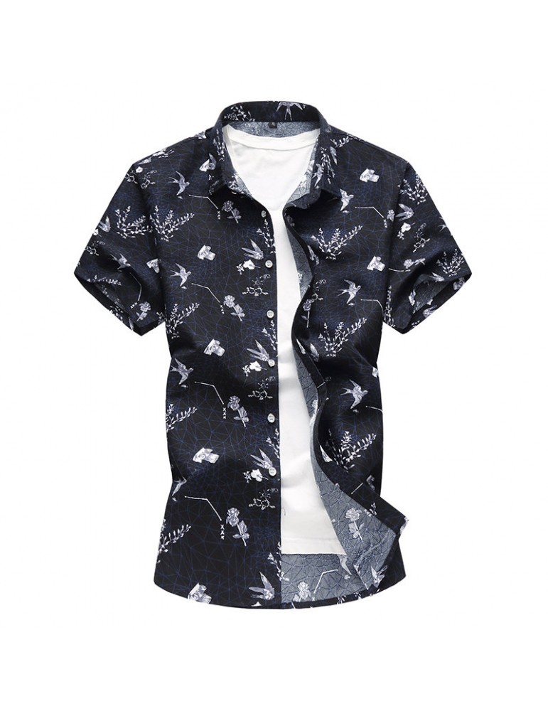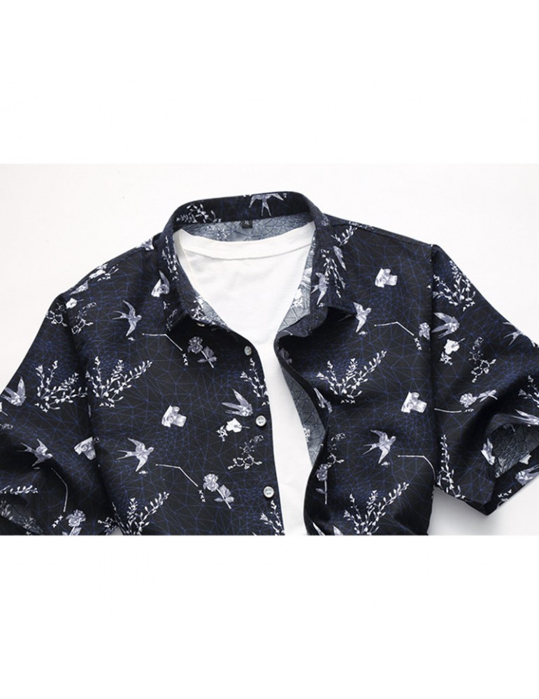 Mens Summer Loose Hawaiian Printing Shirt Short Sleeve Casual Cotton Beach Shirts