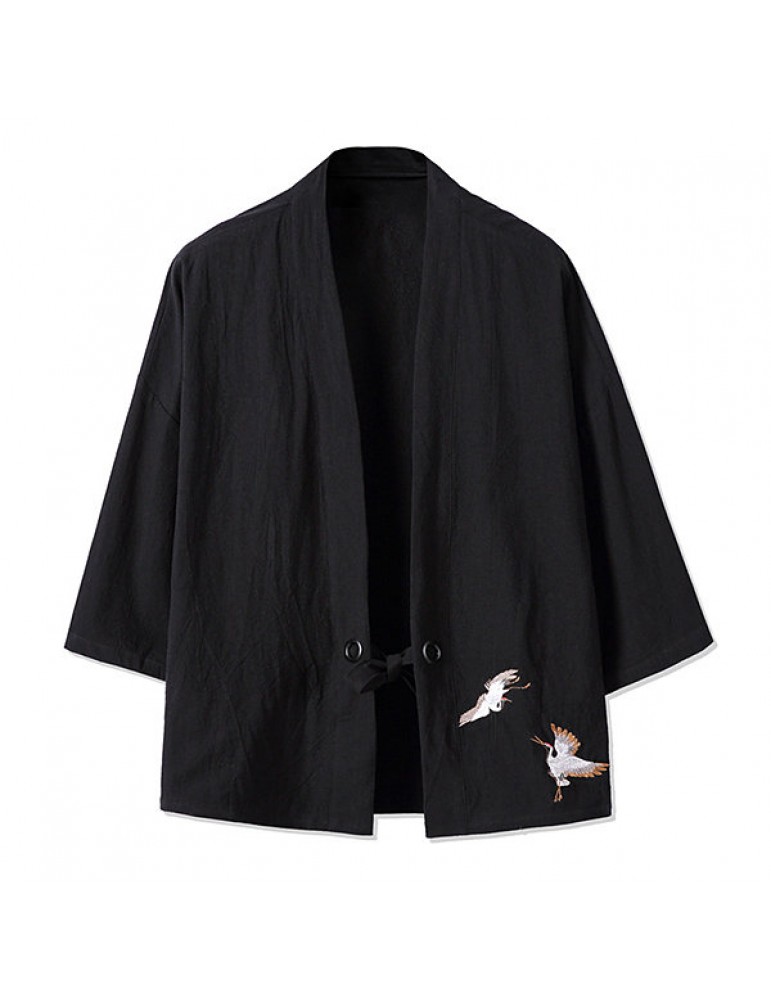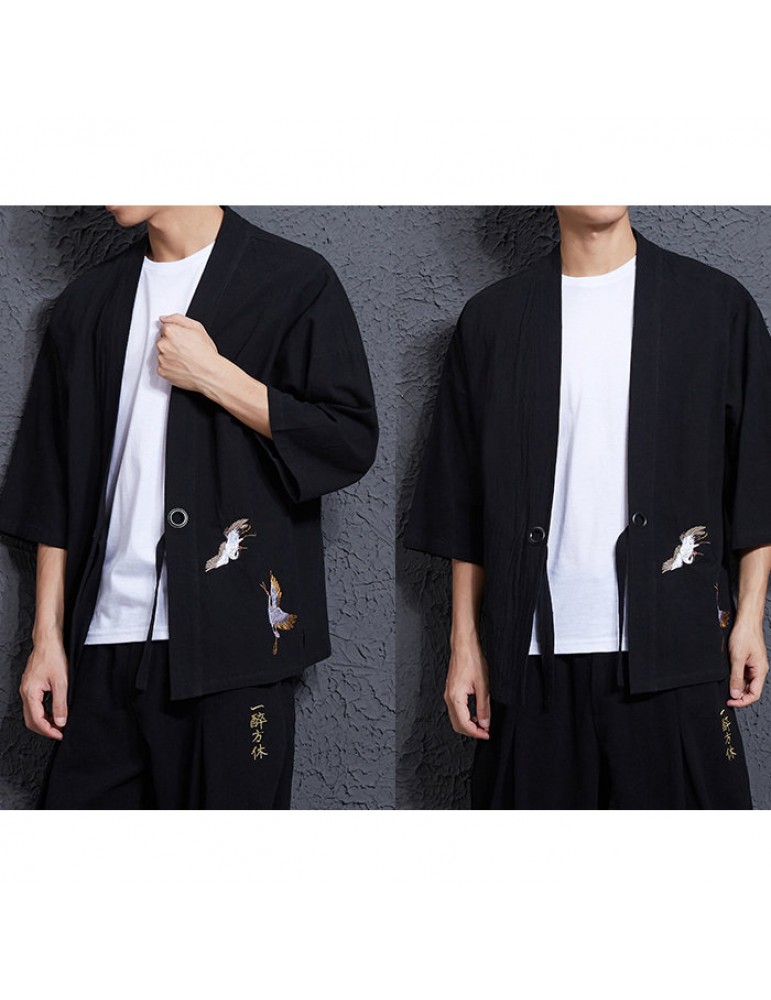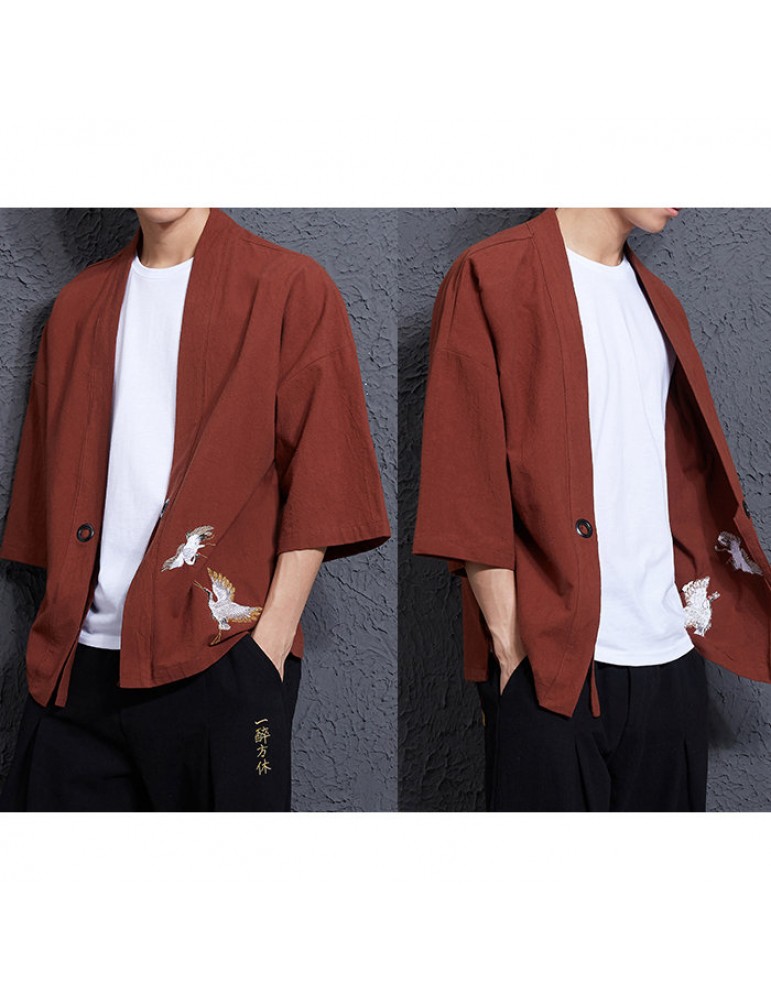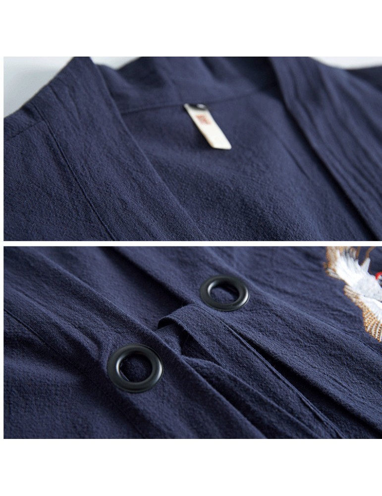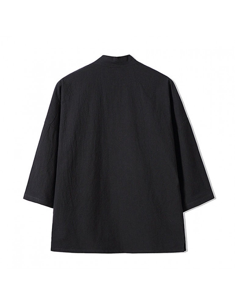 Cotton Embroidered Hanfu Three Quarter Sleeve Sunscreen Shirts for Men
