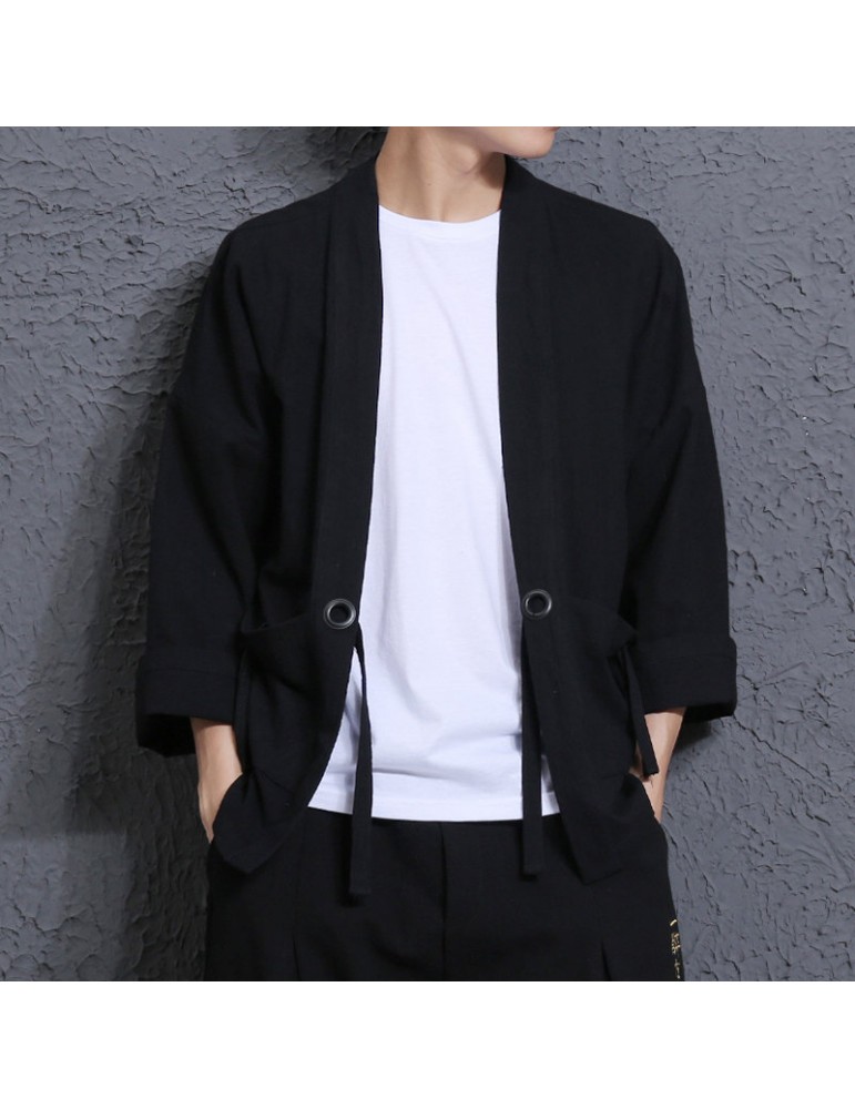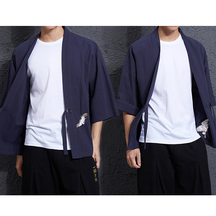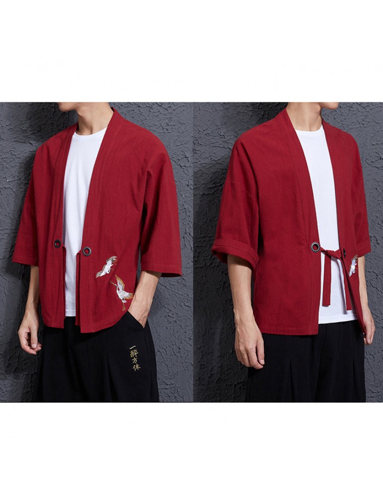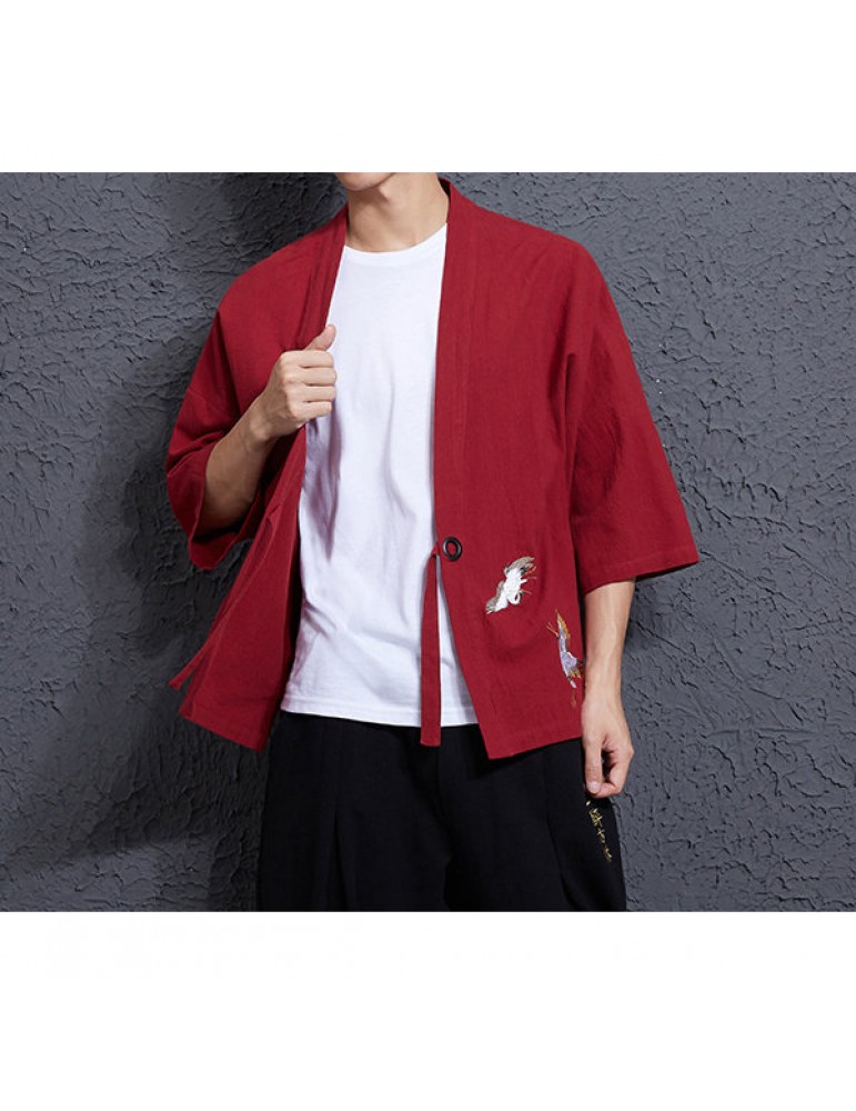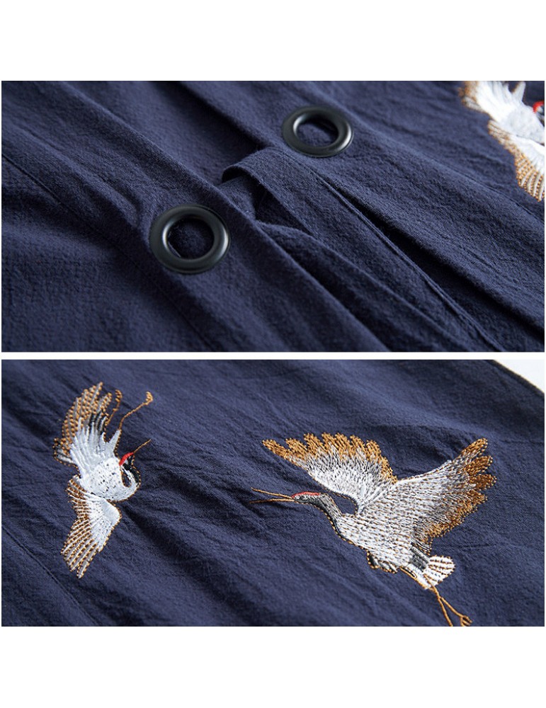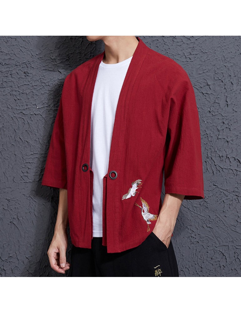Cotton Embroidered Hanfu Three Quarter Sleeve Sunscreen Shirts for Men