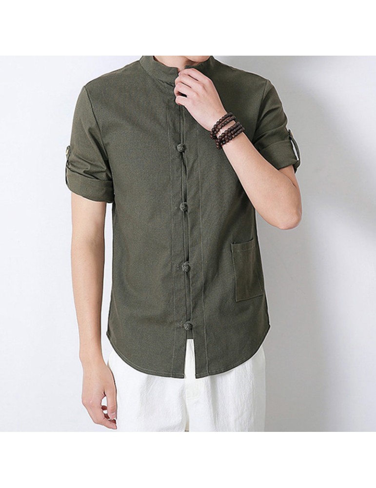 Men Chinese Style Retro Design Linen Shirts With Pocket