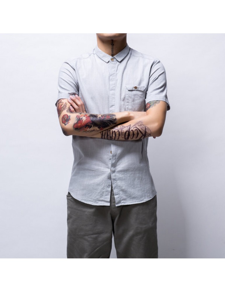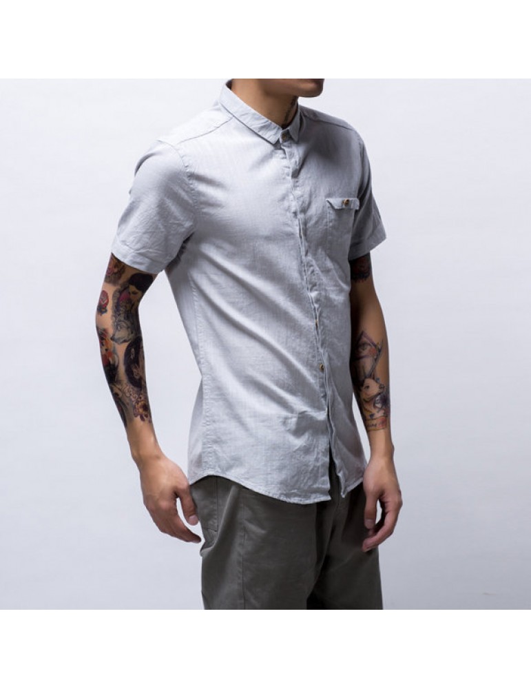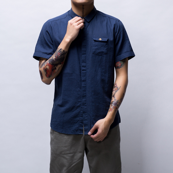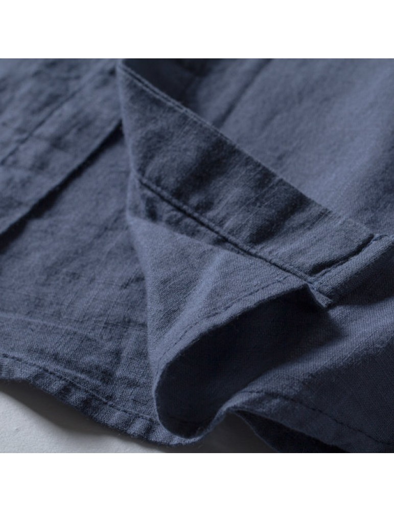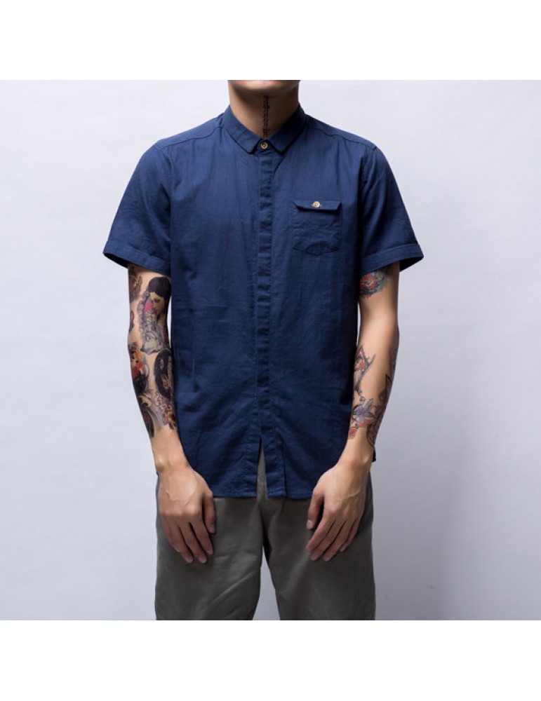 Men Casual Solid Color Short Sleeve Linen Shirts
