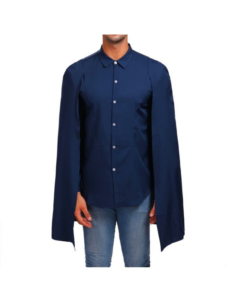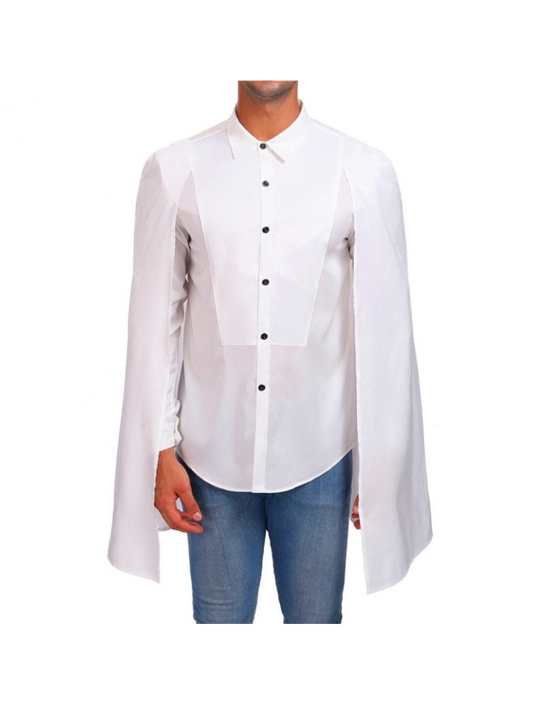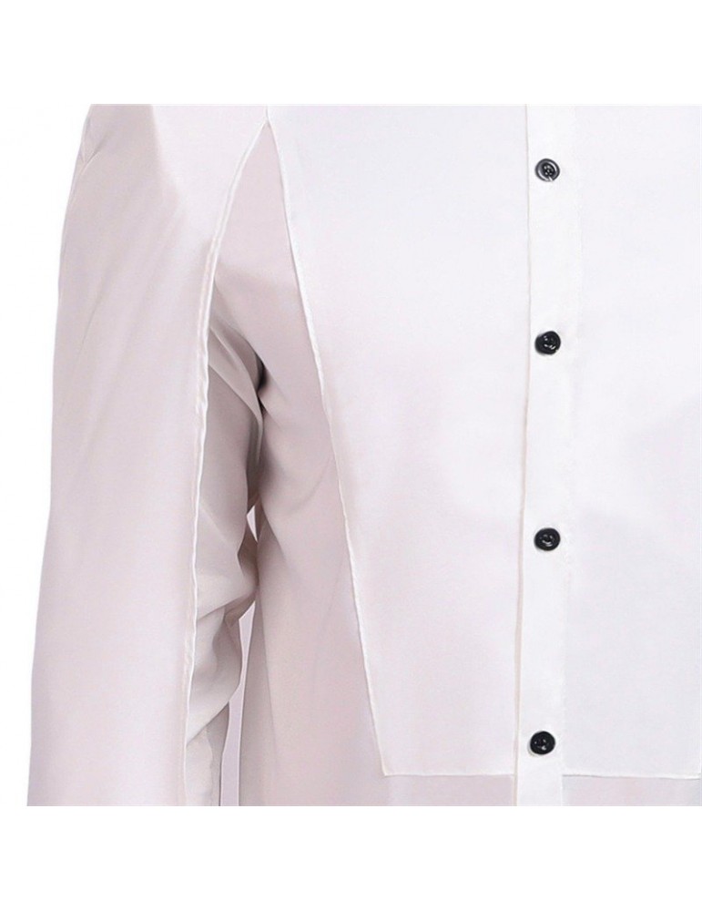 Men's Business Fake Two-Pieces Cloak Design Solid Color Court Style Shirt