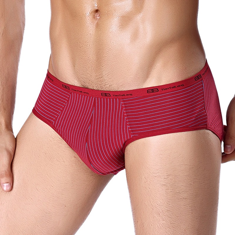 Mens 100%Modal Stripe Elasticity Low Waist Sexy U Convex Pouch Brief Underwear