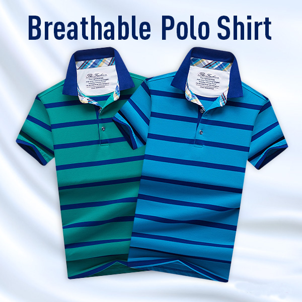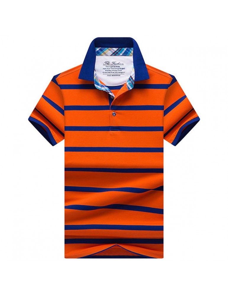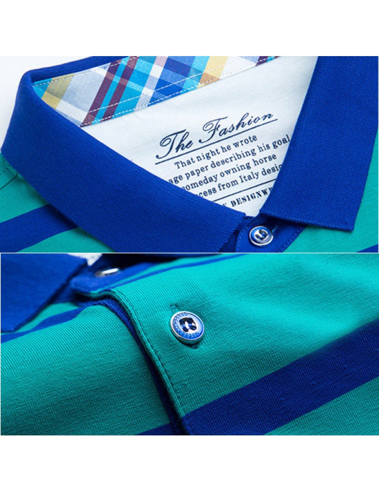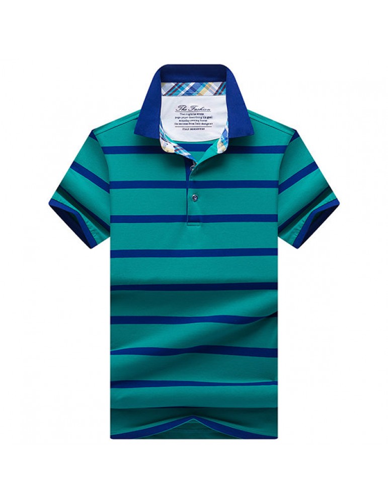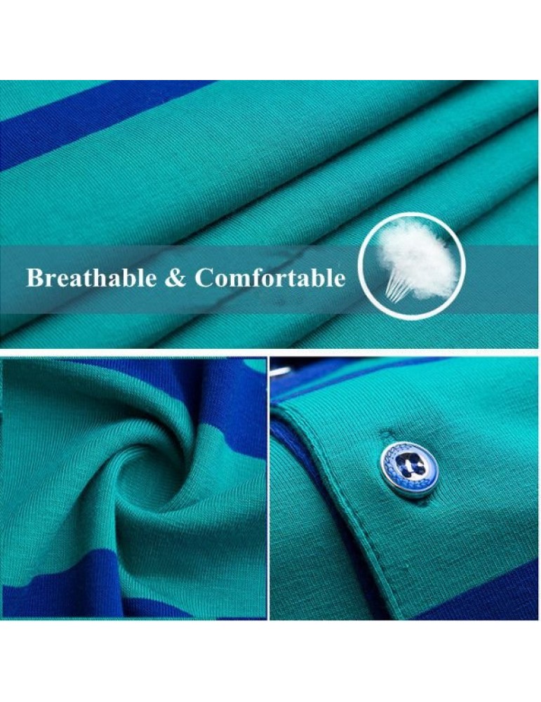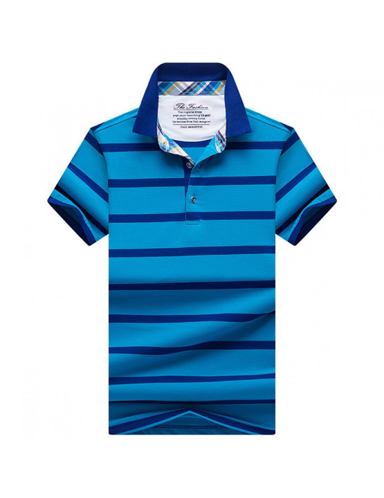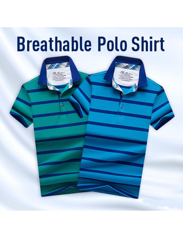 Mens Summer Casual Business Slim Fit Striped Cotton Turn-down Collar Golf Shirt