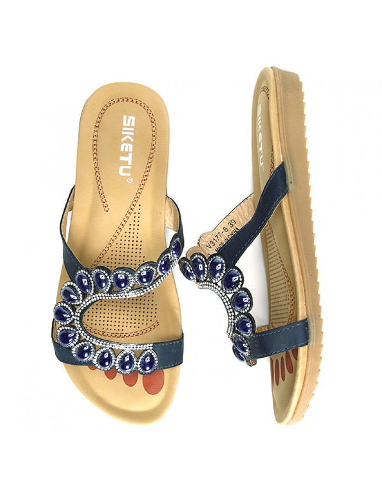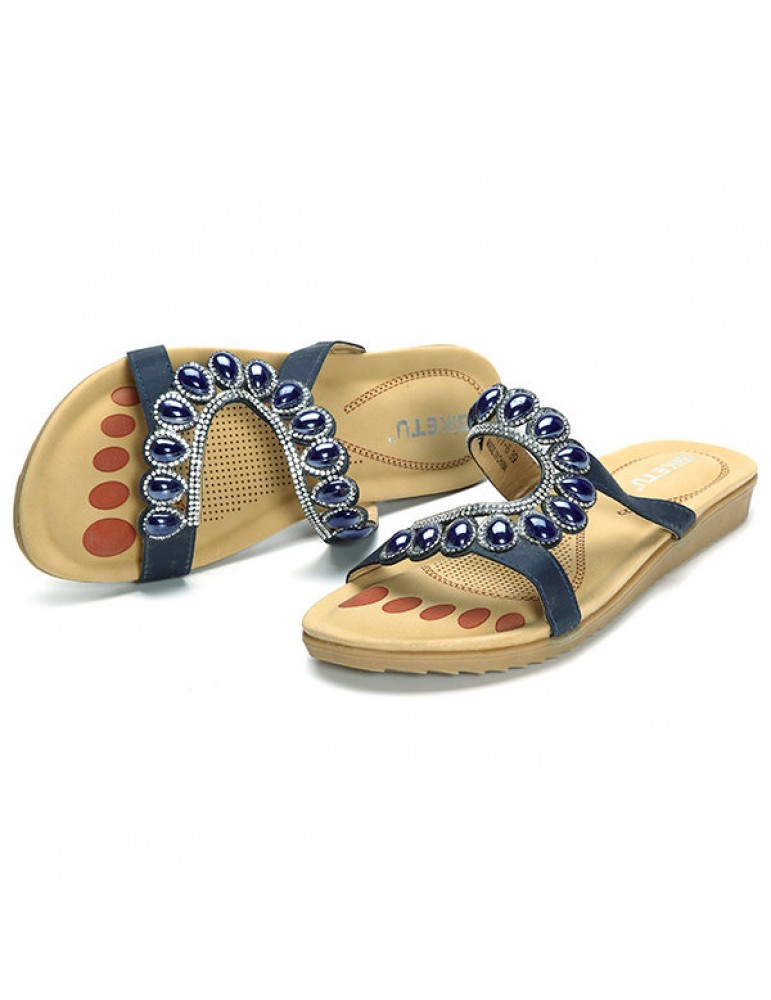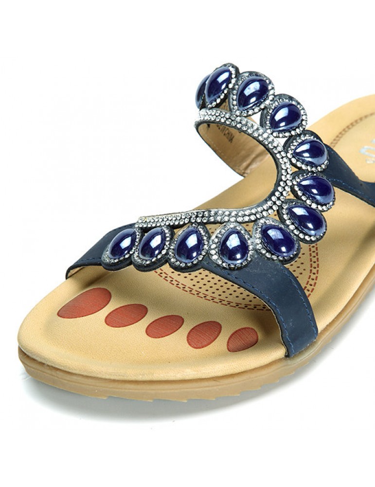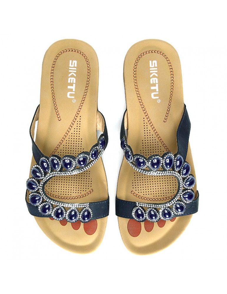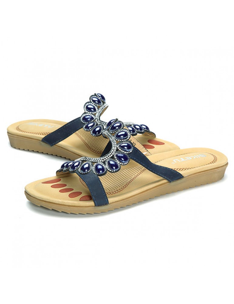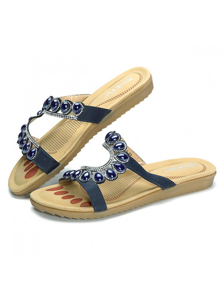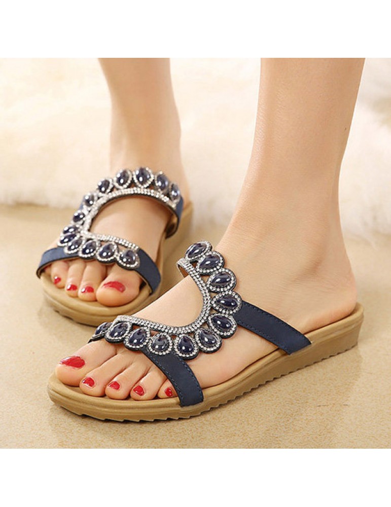 Bead Shiny Crystal Peep Toe Flat Lazy Sandals