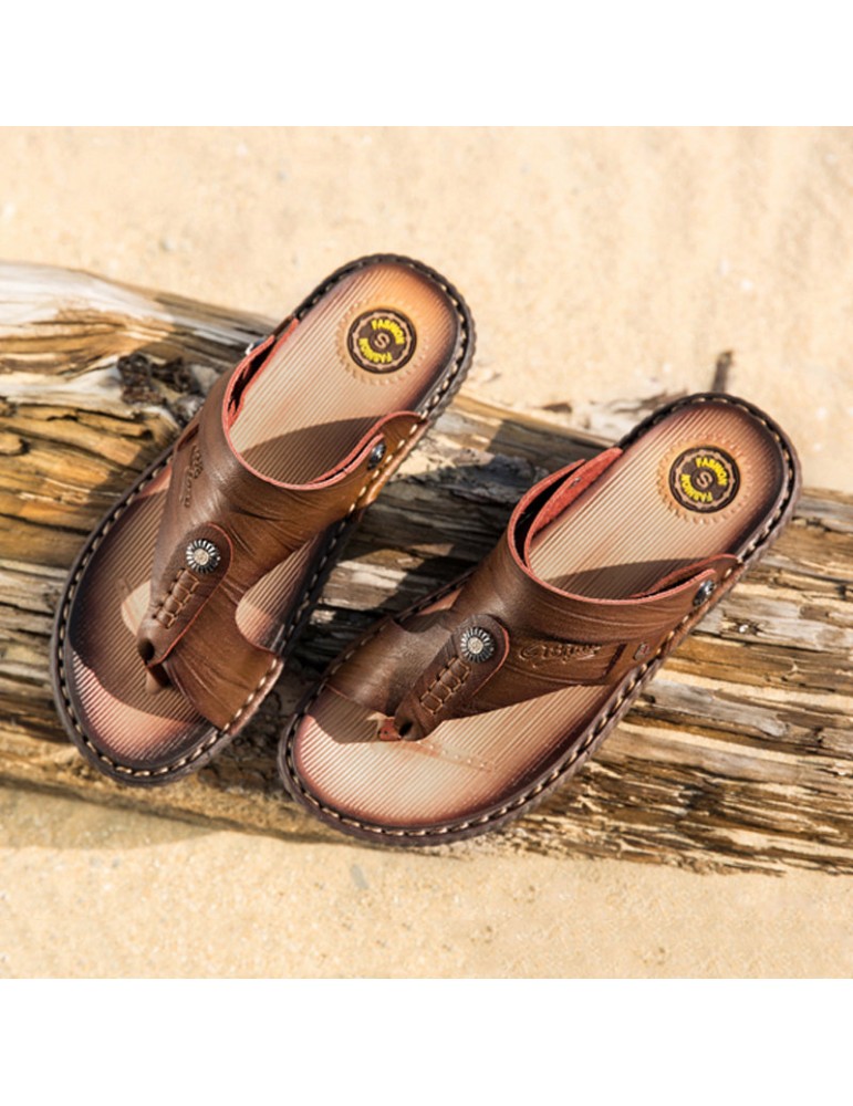 Men Microfiber Leather Clip Toe Non-slip Slippers Casual Beach Sandals