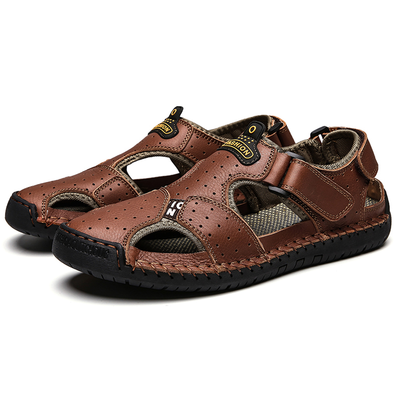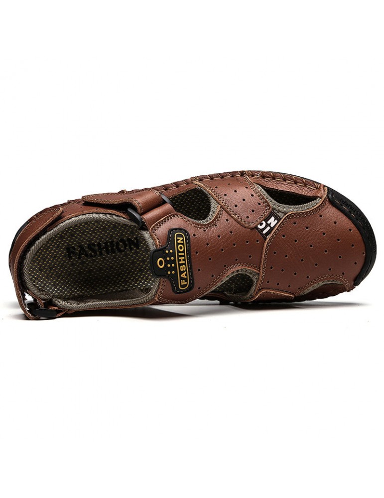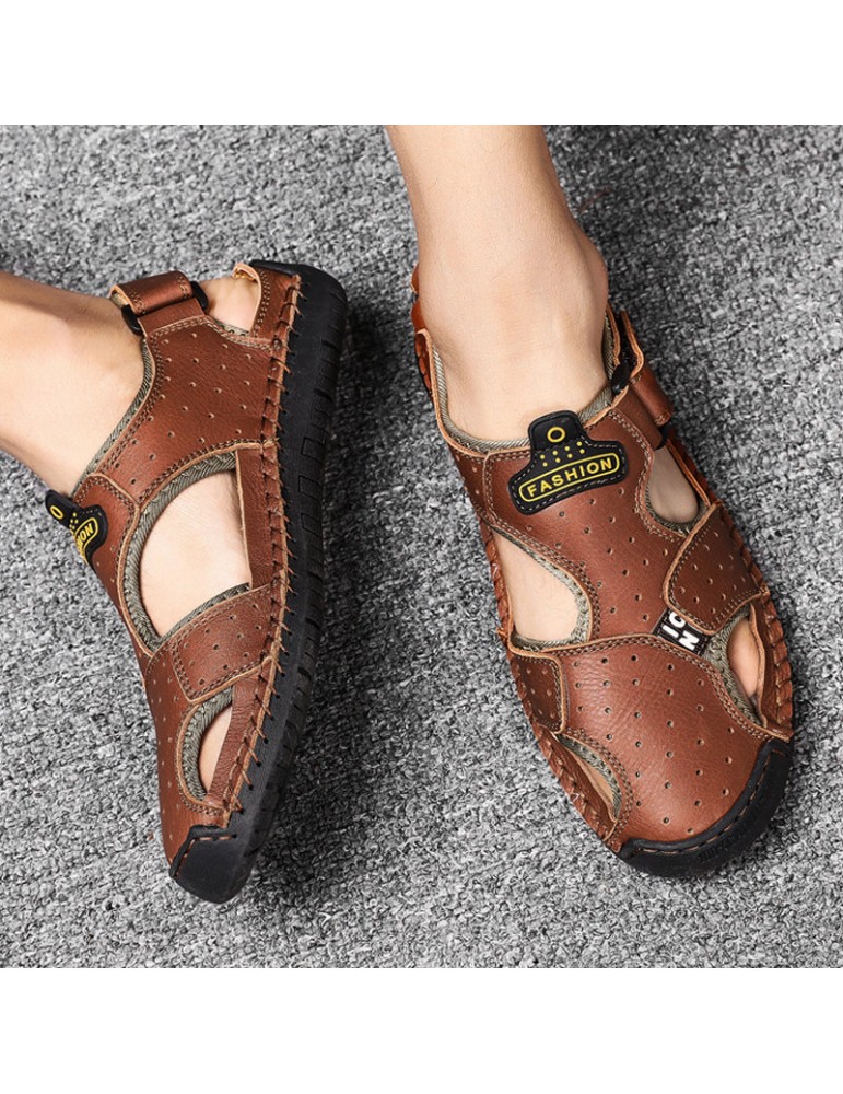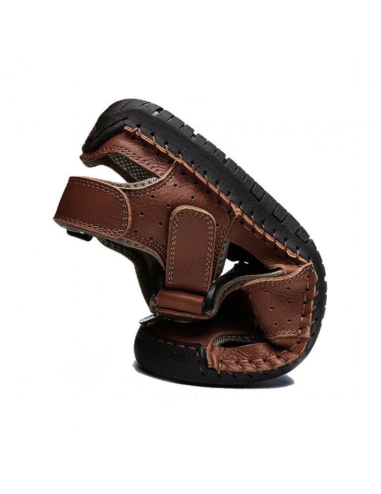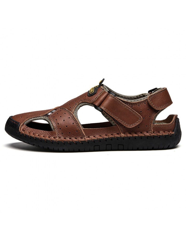 Men Hand Stitching Large Size Non Slip Soft Sole Outdoor Leather Sandals