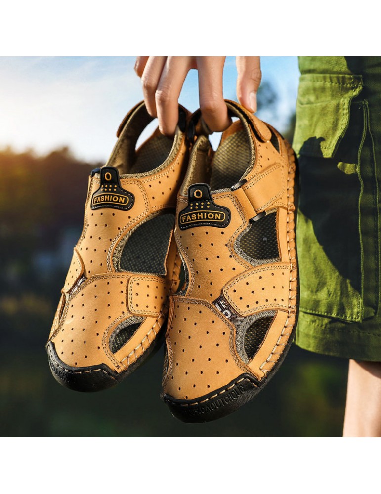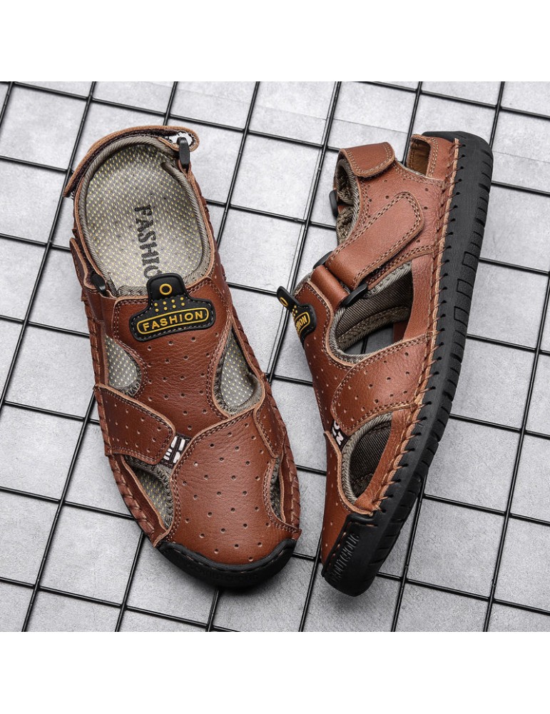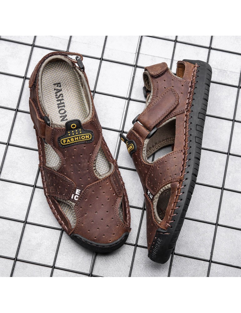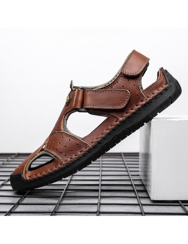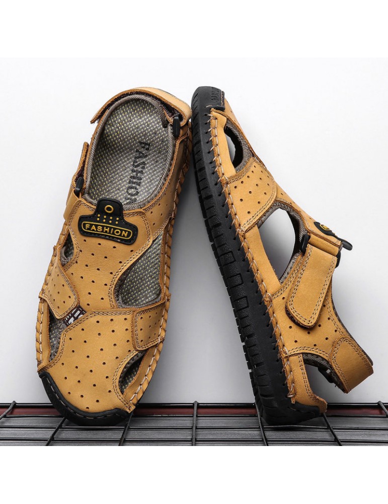 Men Hand Stitching Large Size Non Slip Soft Sole Outdoor Leather Sandals