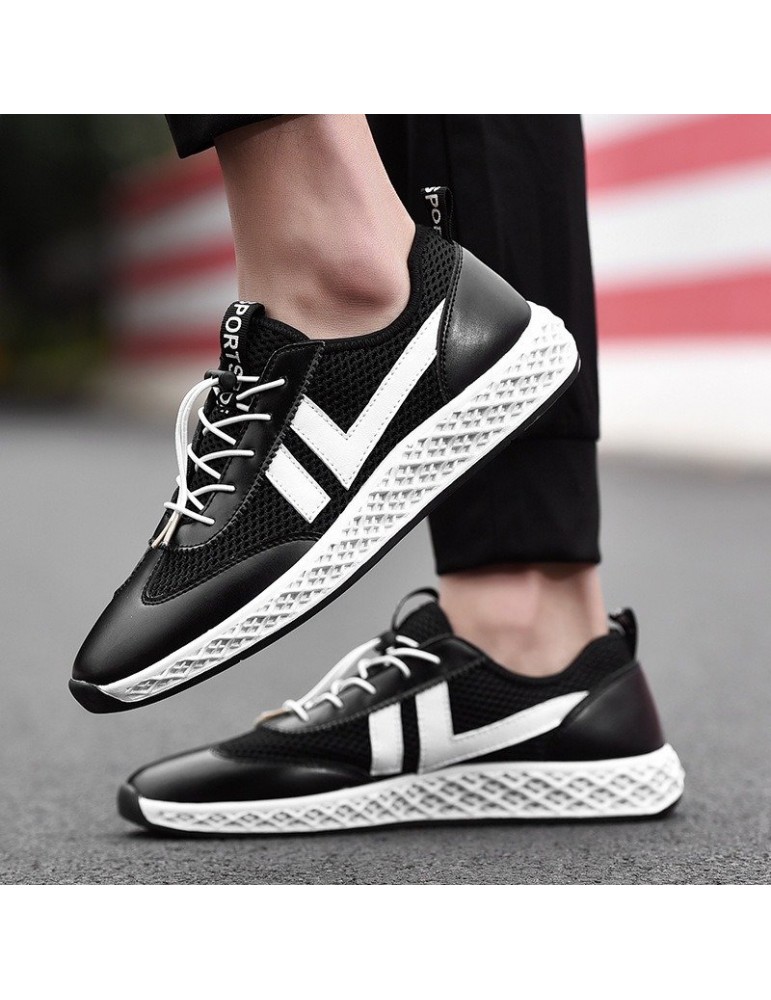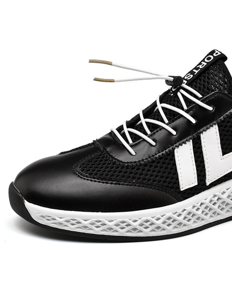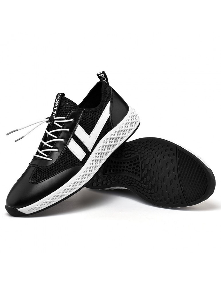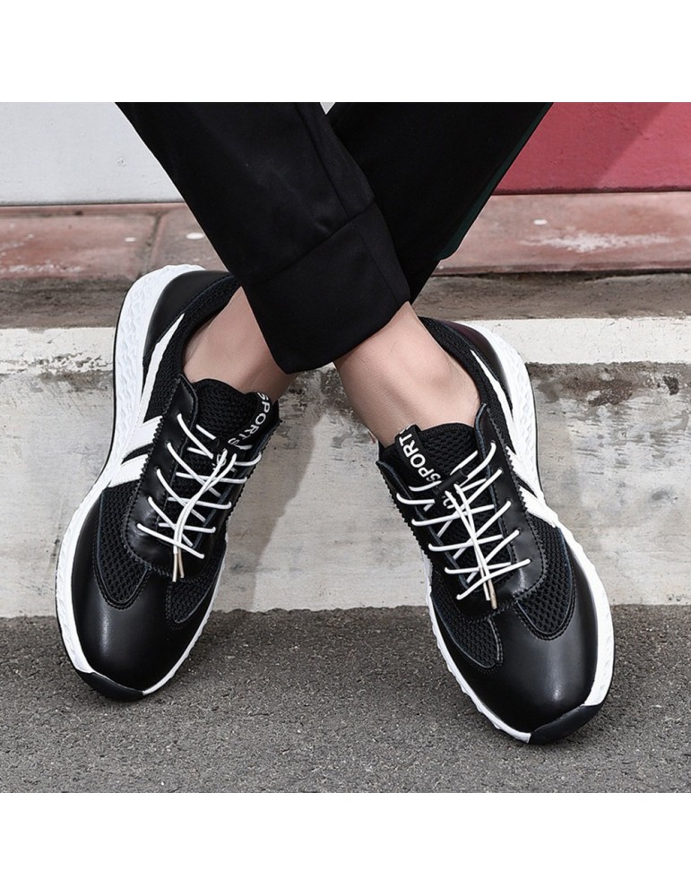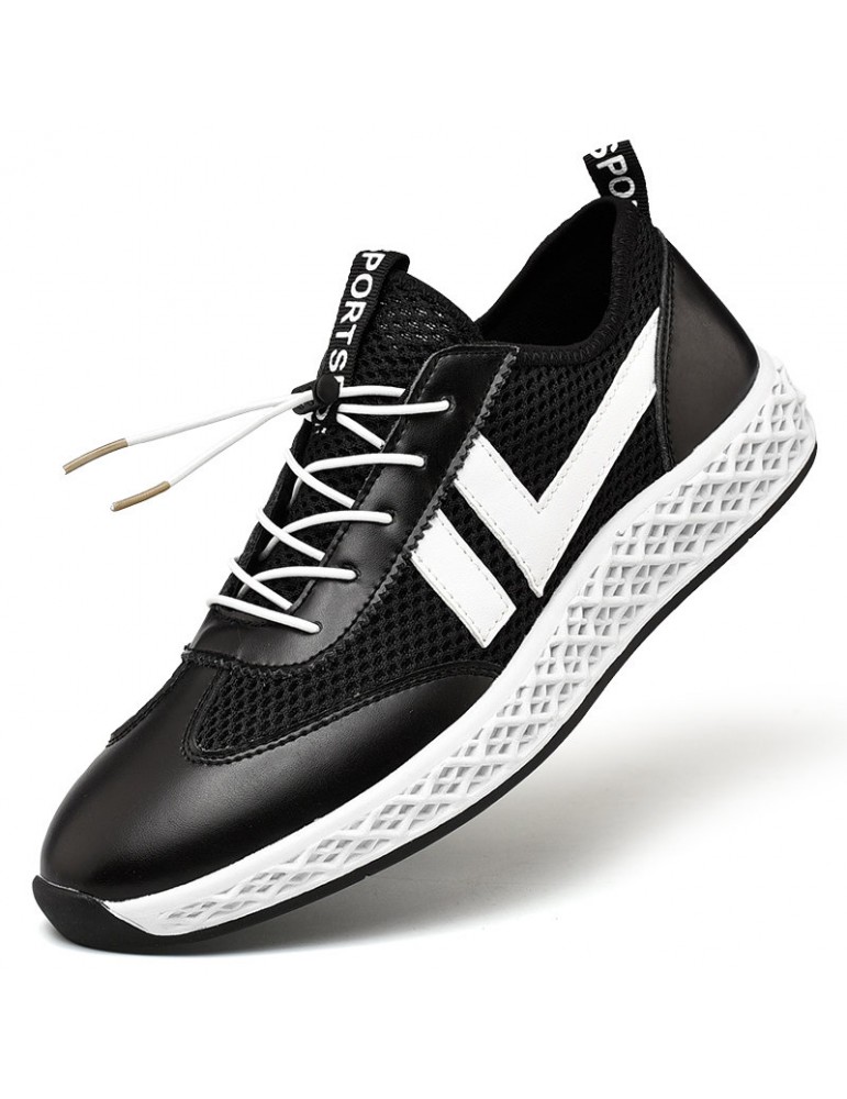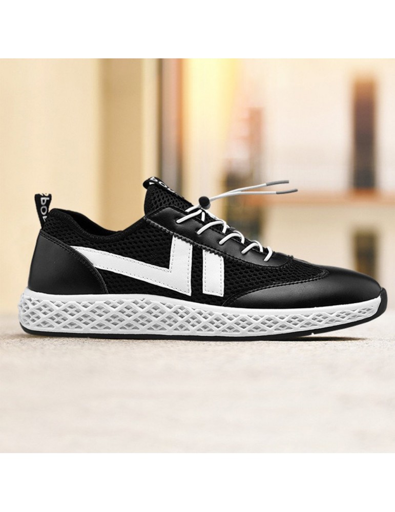 Men Mesh Leather Splicing Breathable Slip Resistant Sport Casual Running Sneakers
