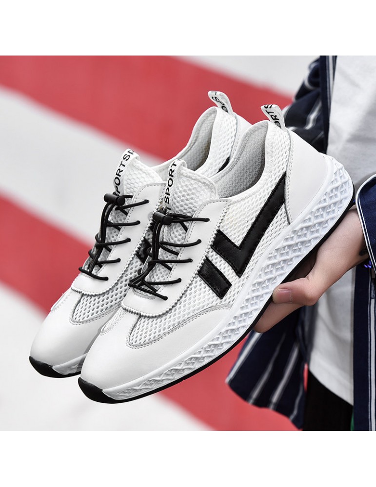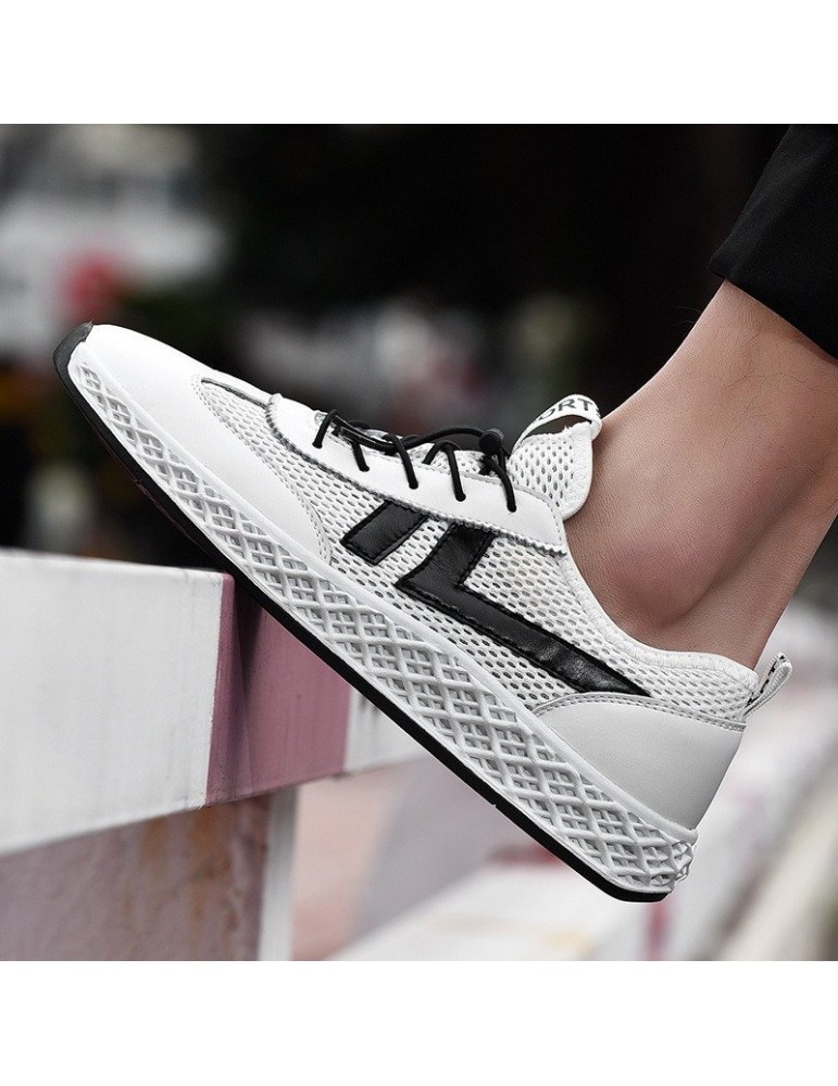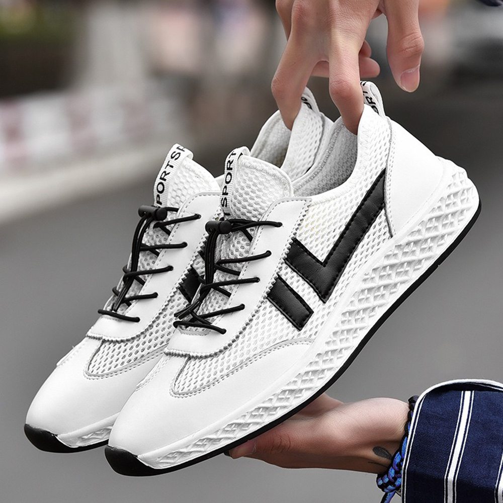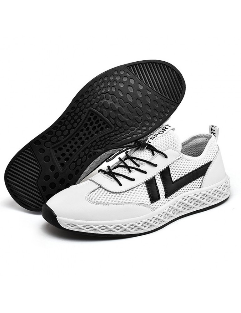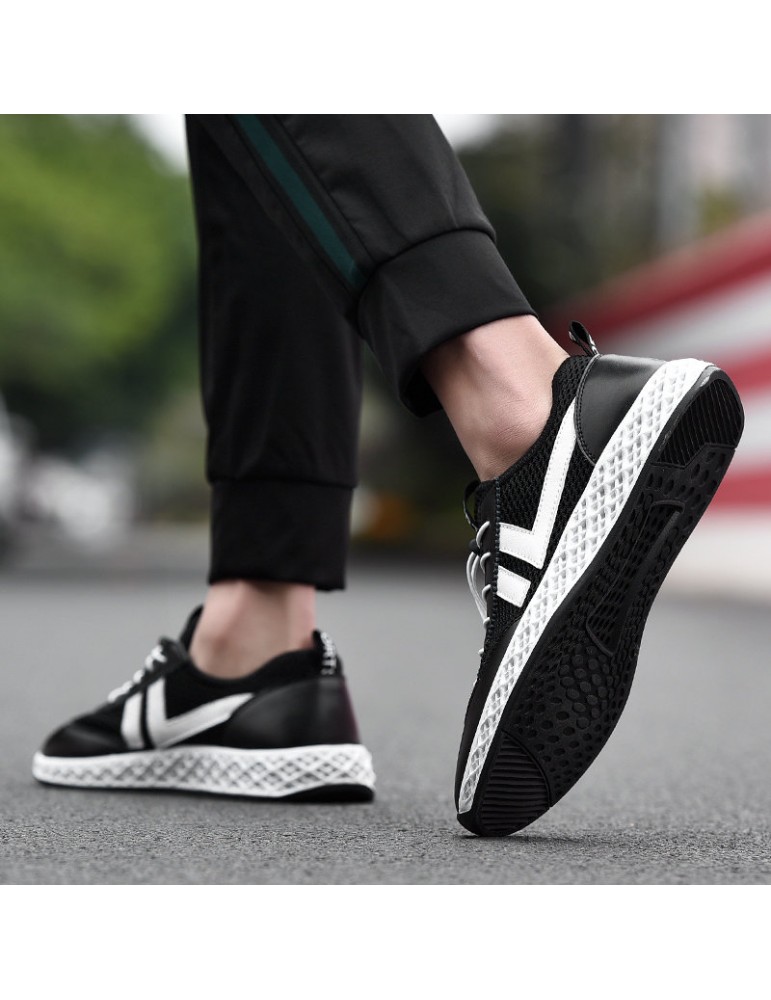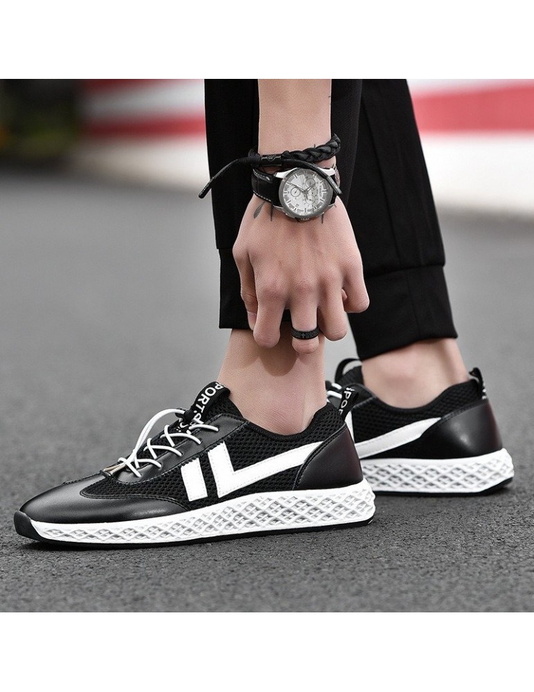 Men Mesh Leather Splicing Breathable Slip Resistant Sport Casual Running Sneakers