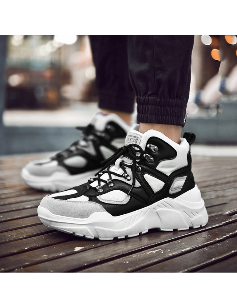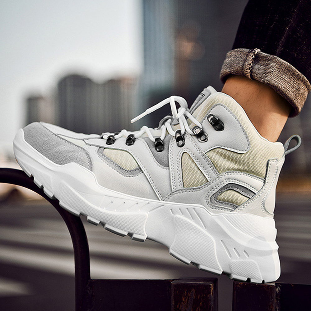 Men Fabric Leather Splicing Slip Resistant Wearable Casual Outdoor Sneakers