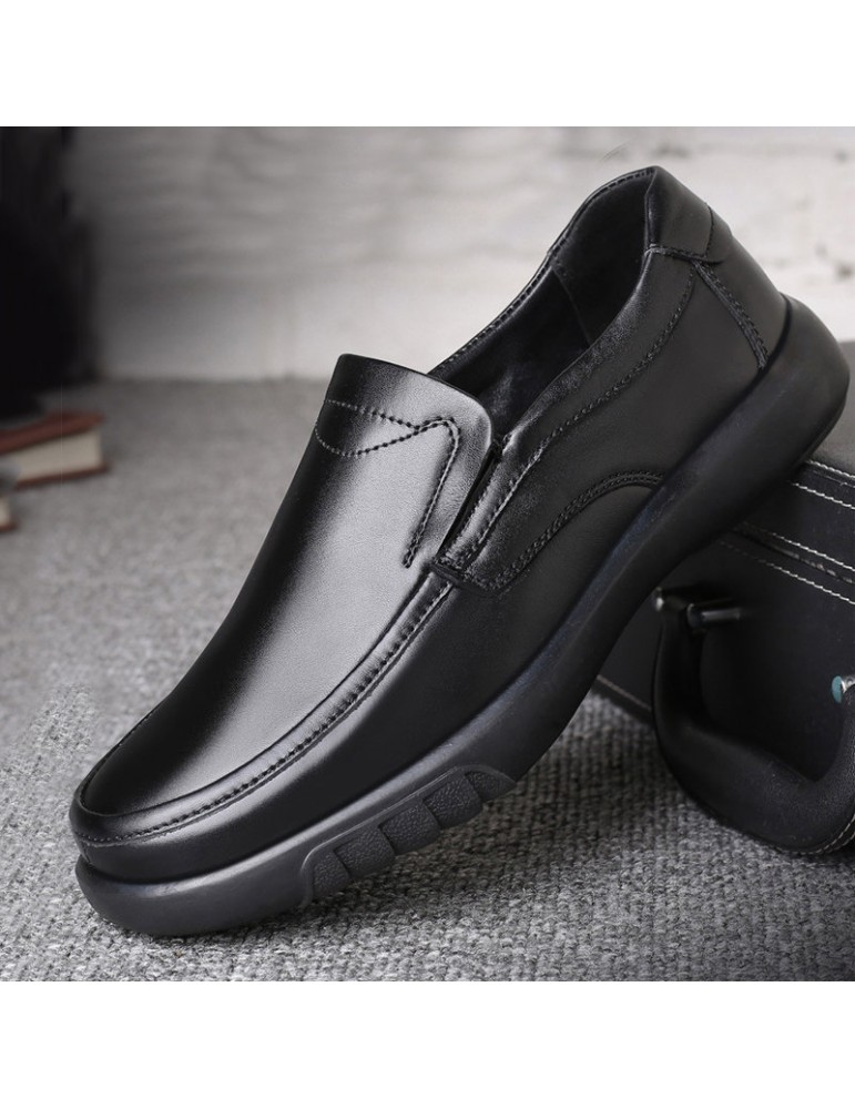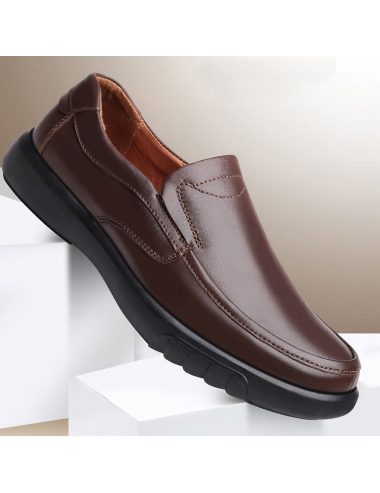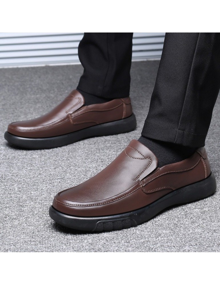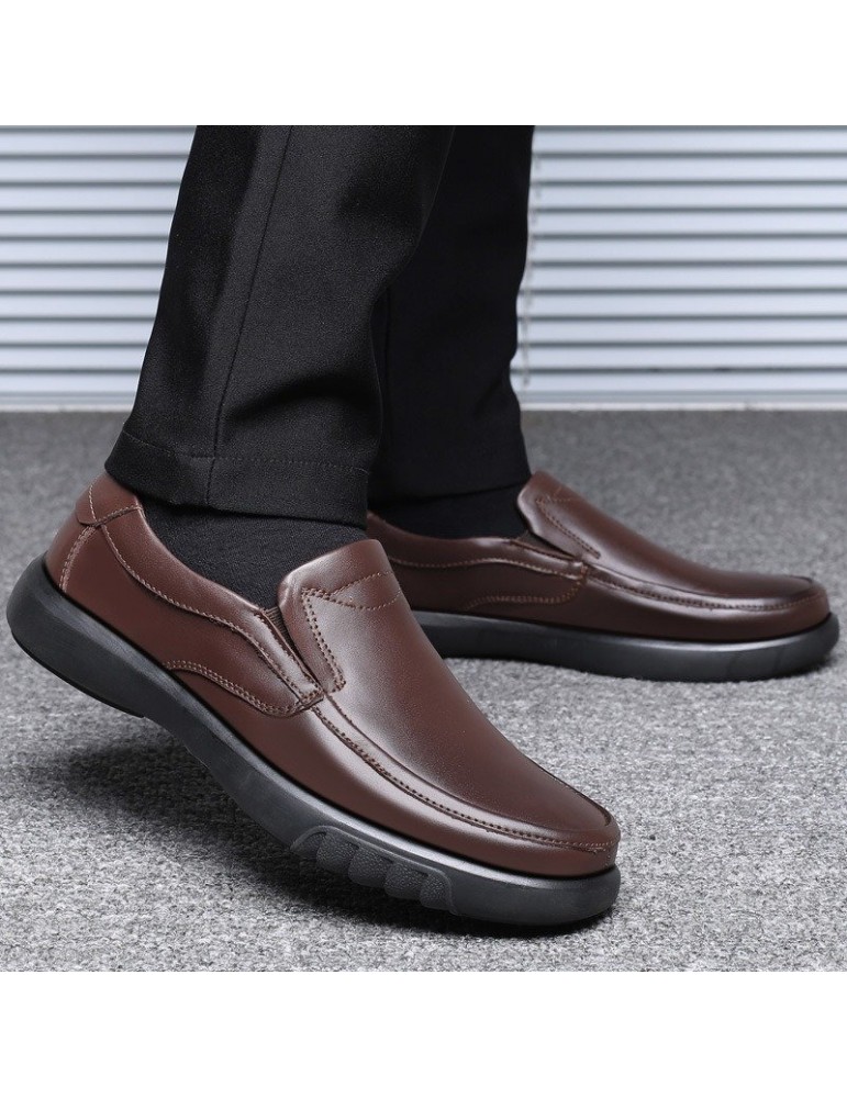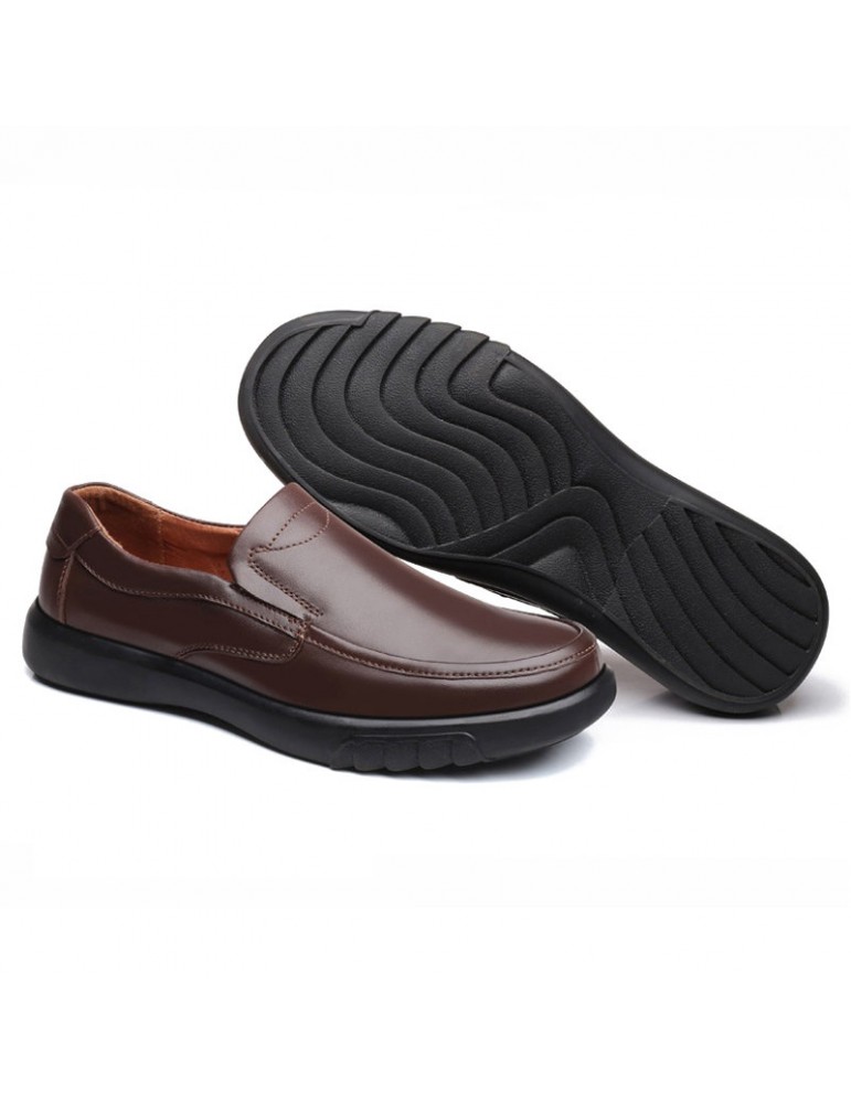 Men Genuine Leather Slip Resistant Slip On Soft Sole Casual Shoes