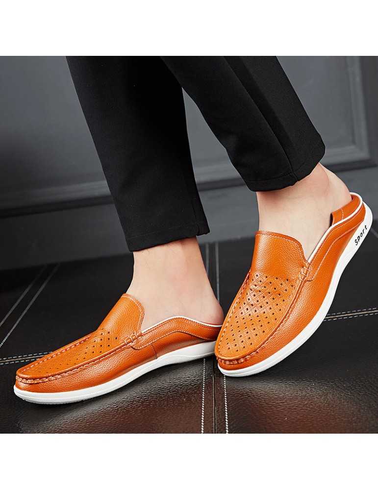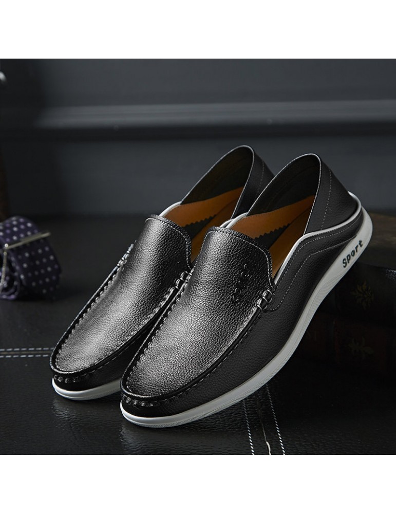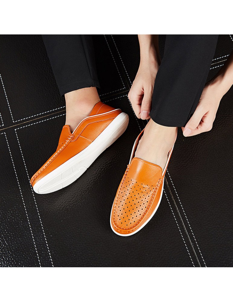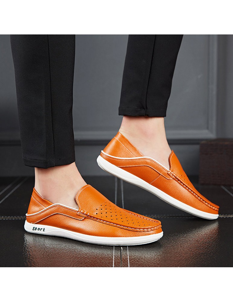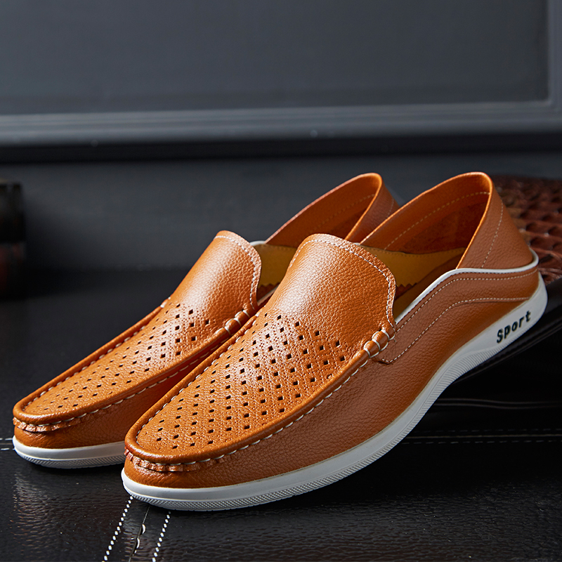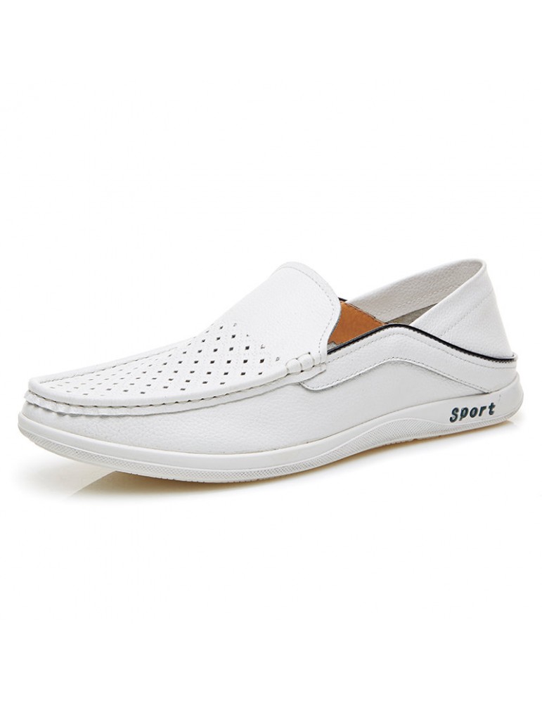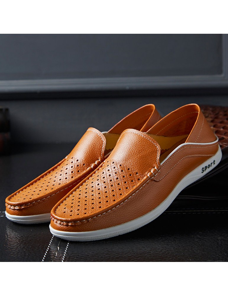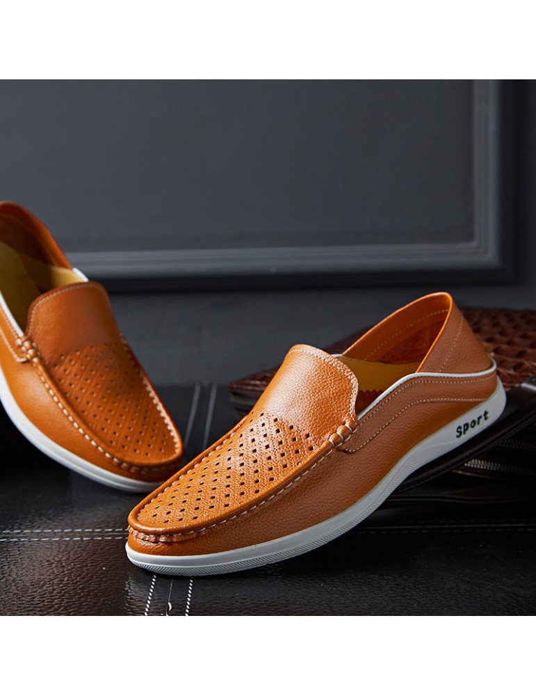 Men Hole Leather Breathable Slip Resistant Casual Driving Loafers