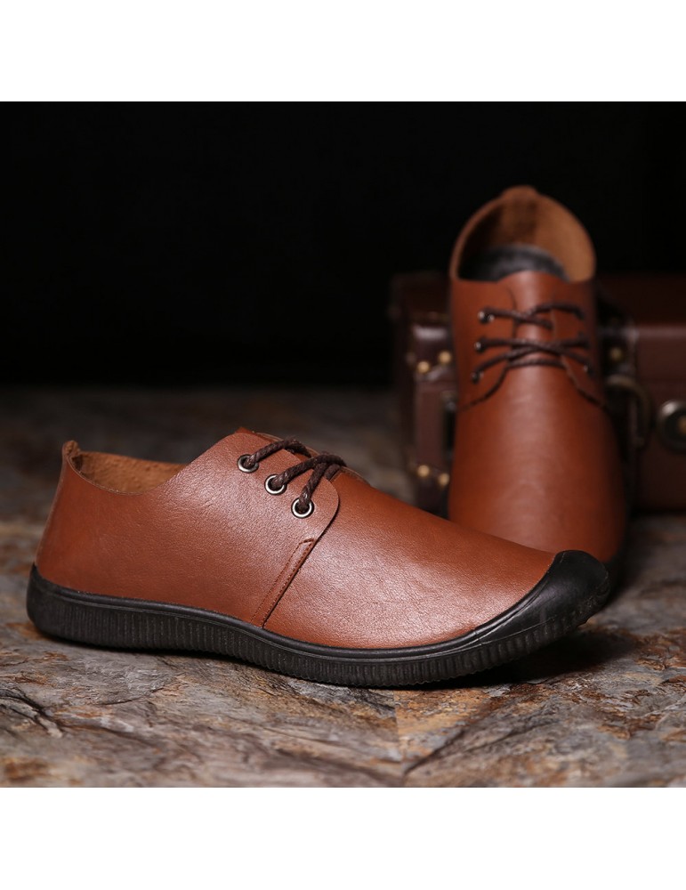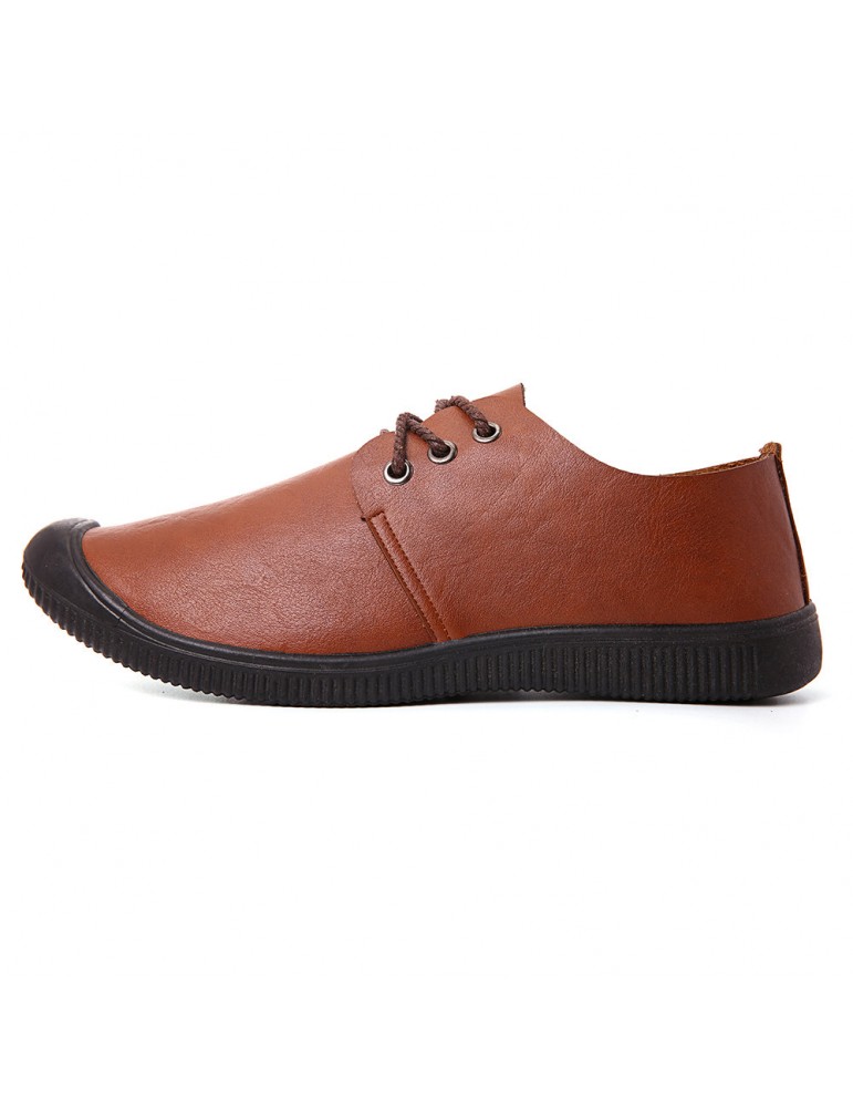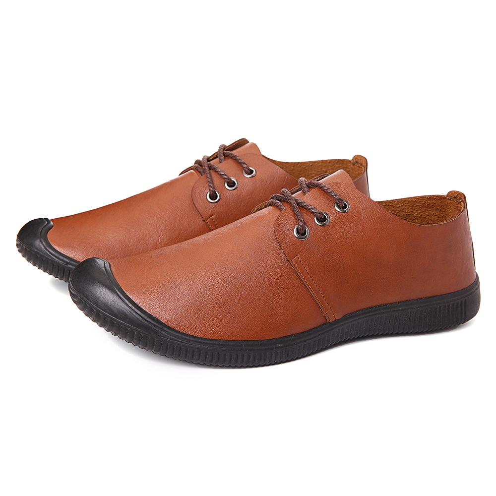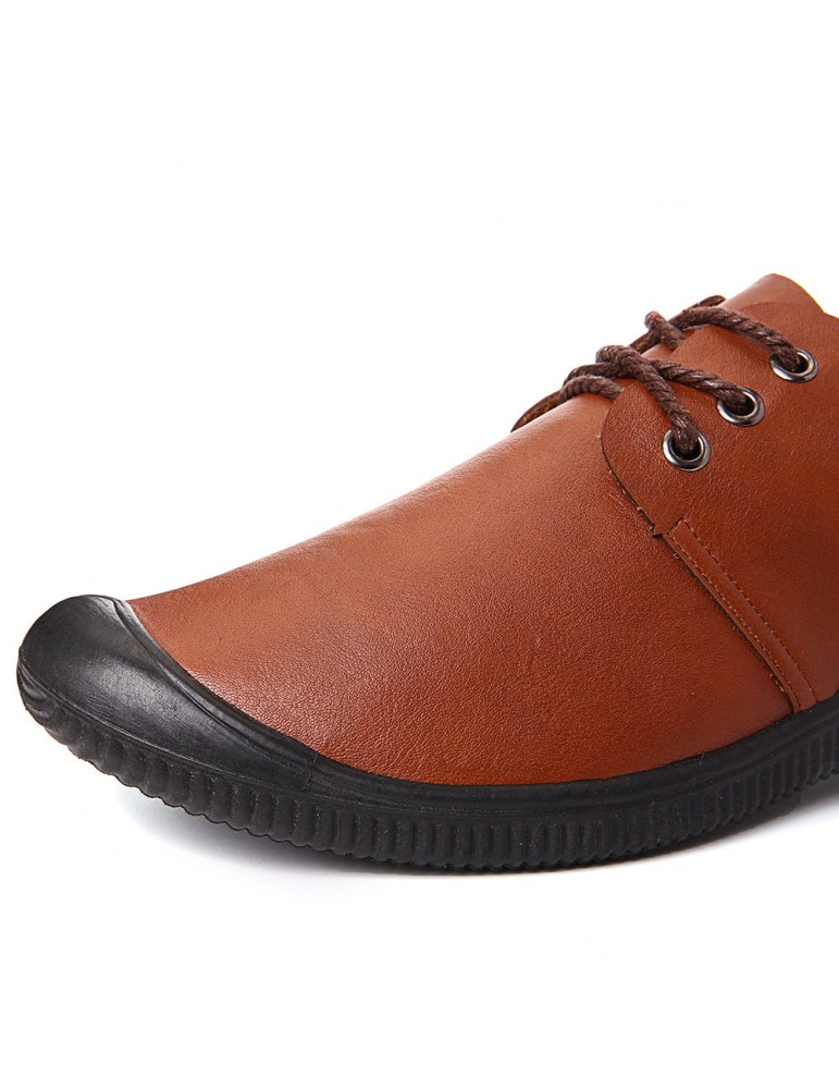 Men Pure Color Leather Anti-colision Soft Outdoor Casual Shoes