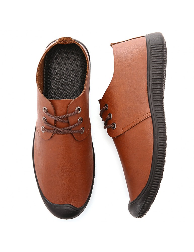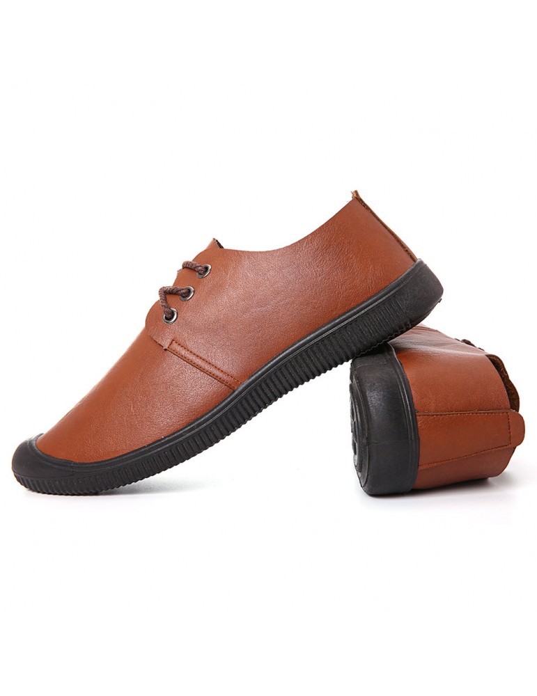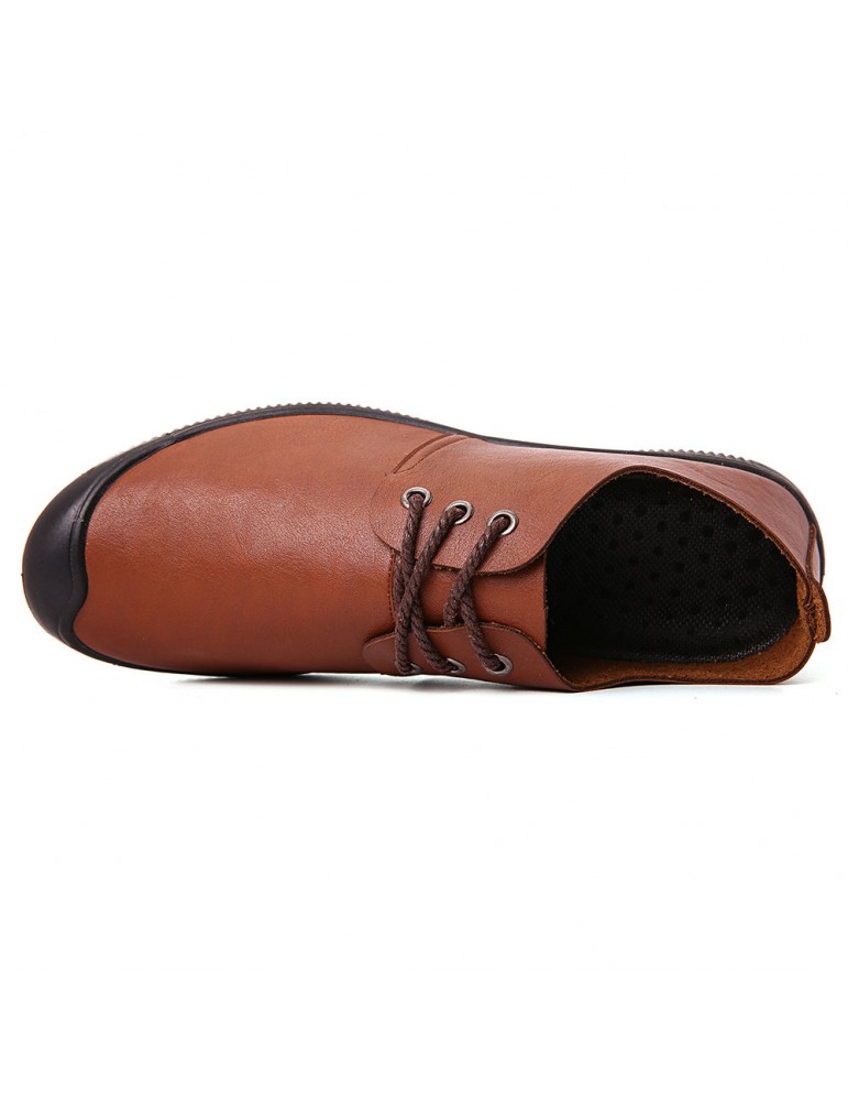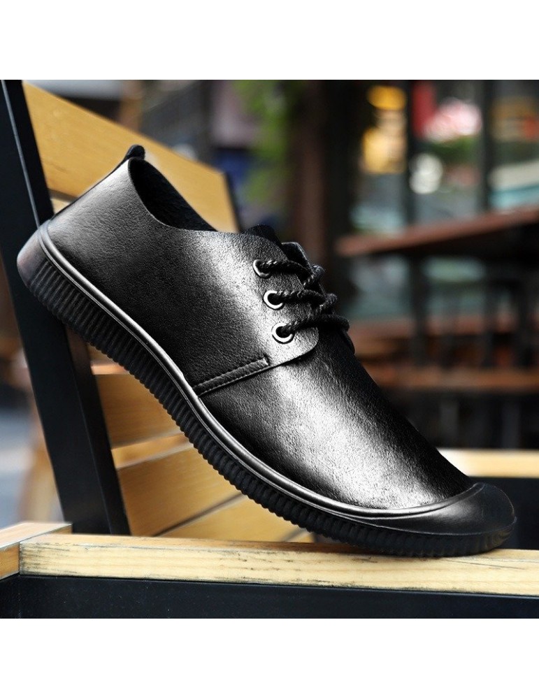 Men Pure Color Leather Anti-colision Soft Outdoor Casual Shoes