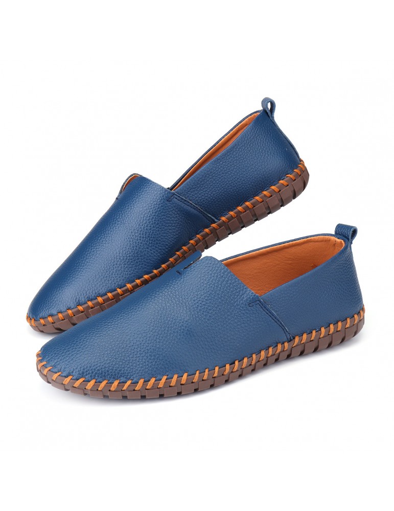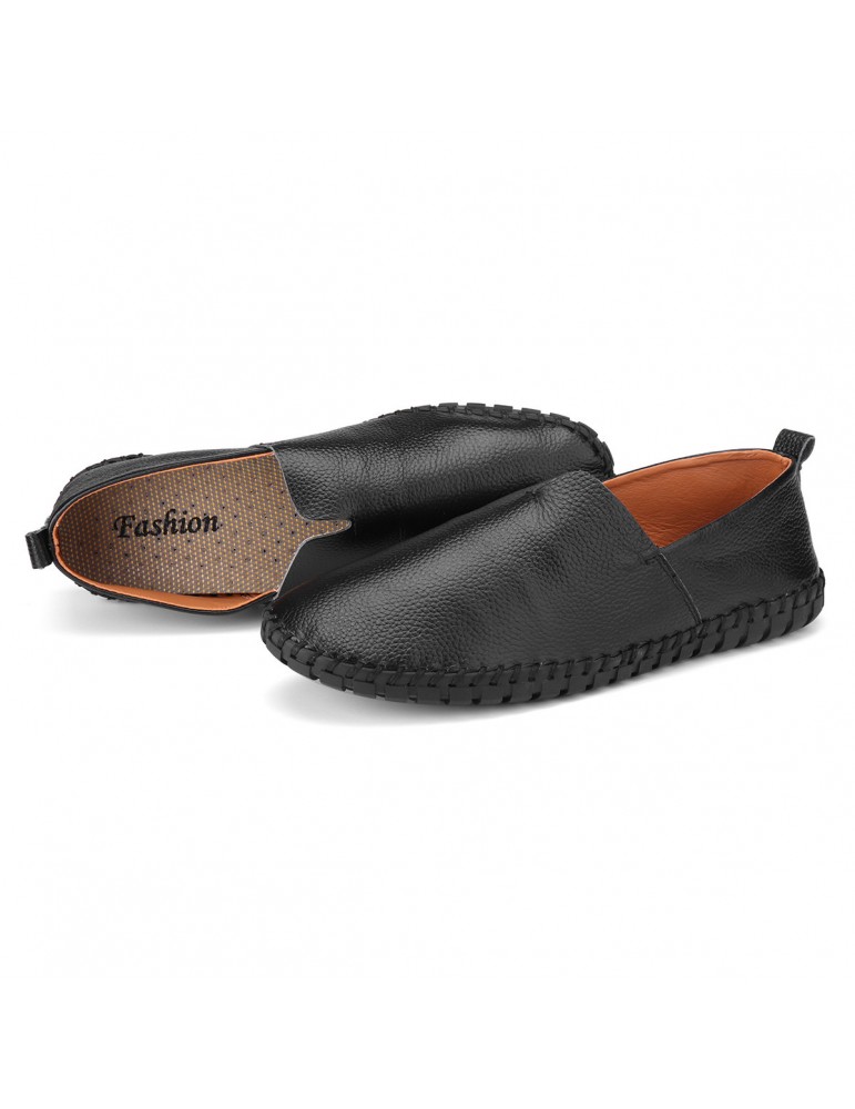 Large Size Men Hand Stitching Genuine Leather Slip On Loafers