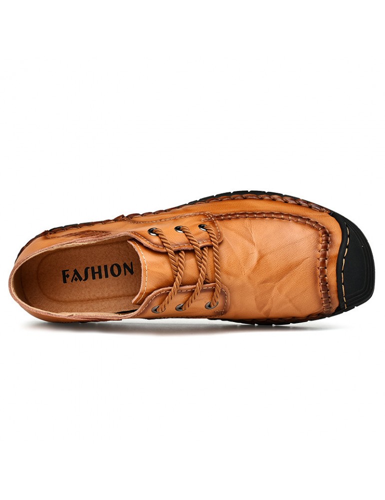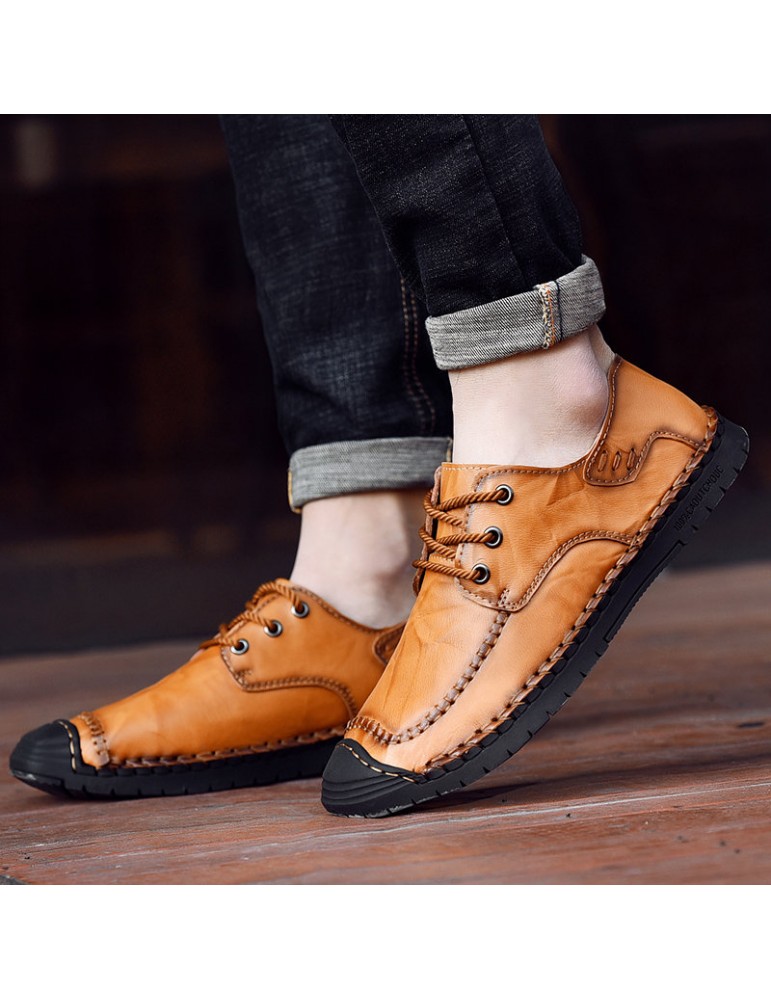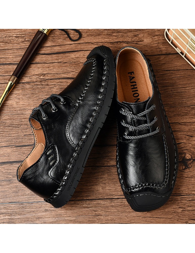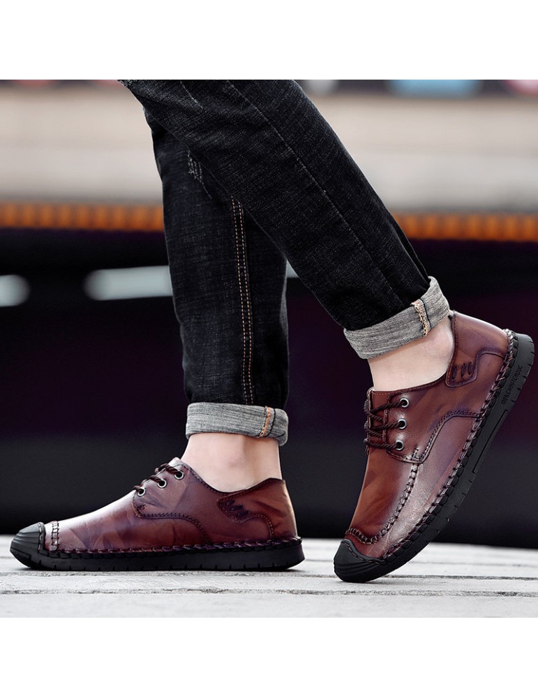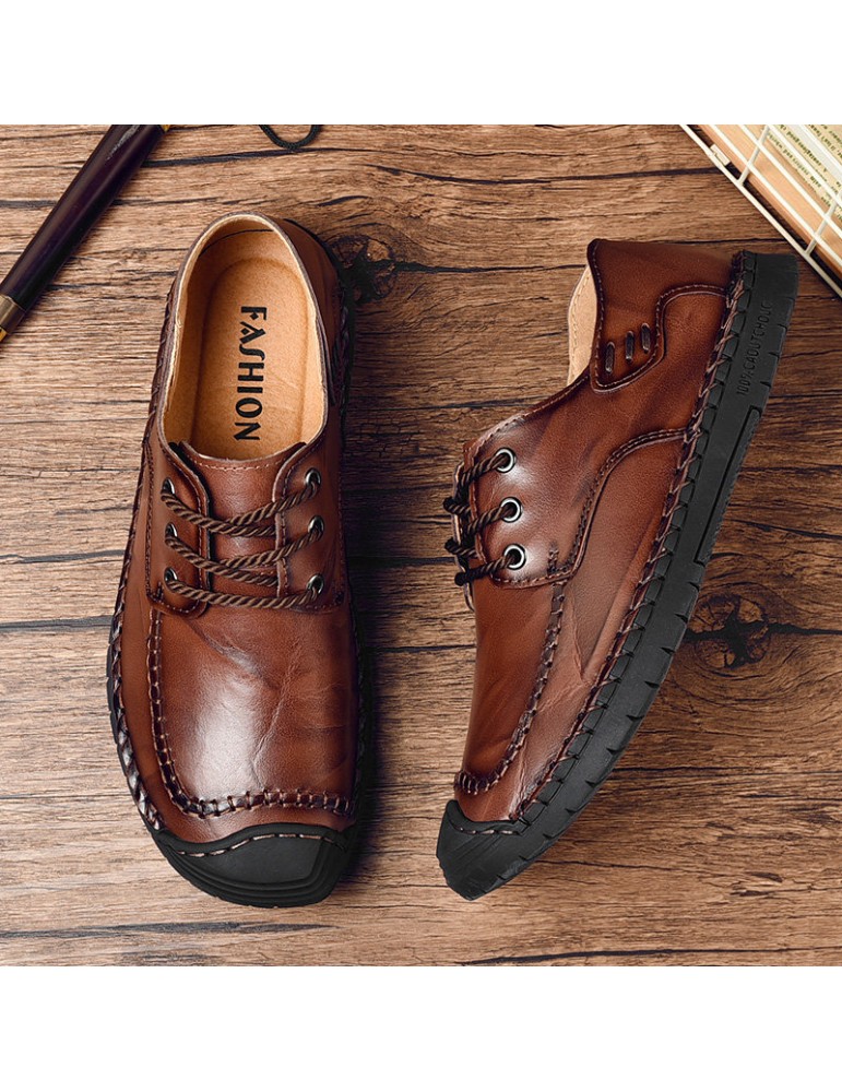 Men Classic Hand Stitching Comfy Soft Lace Up Leather Shoes