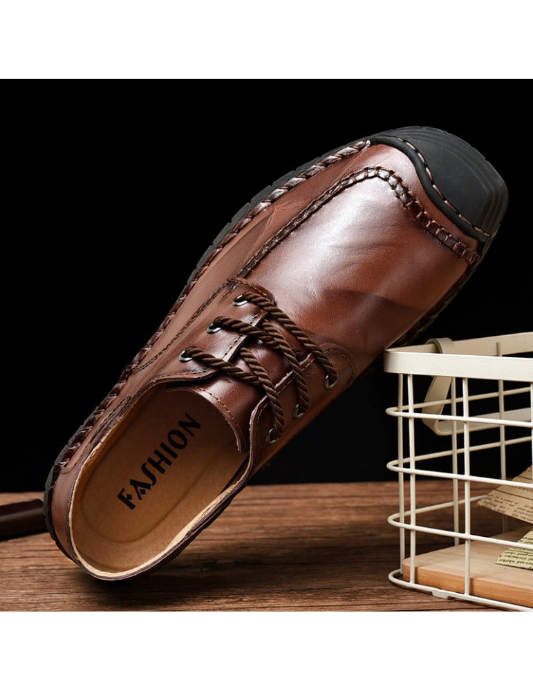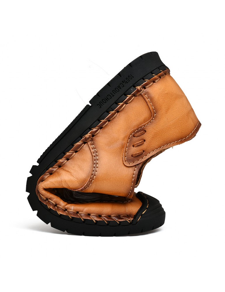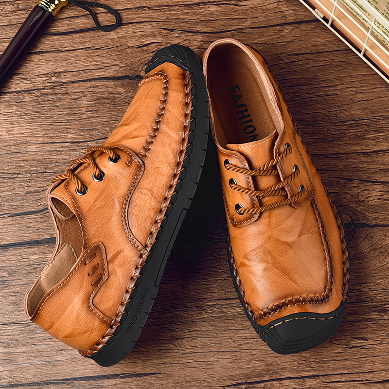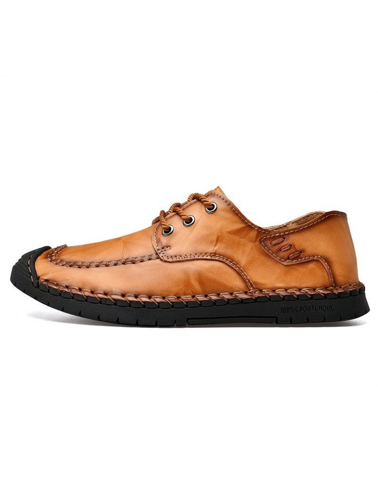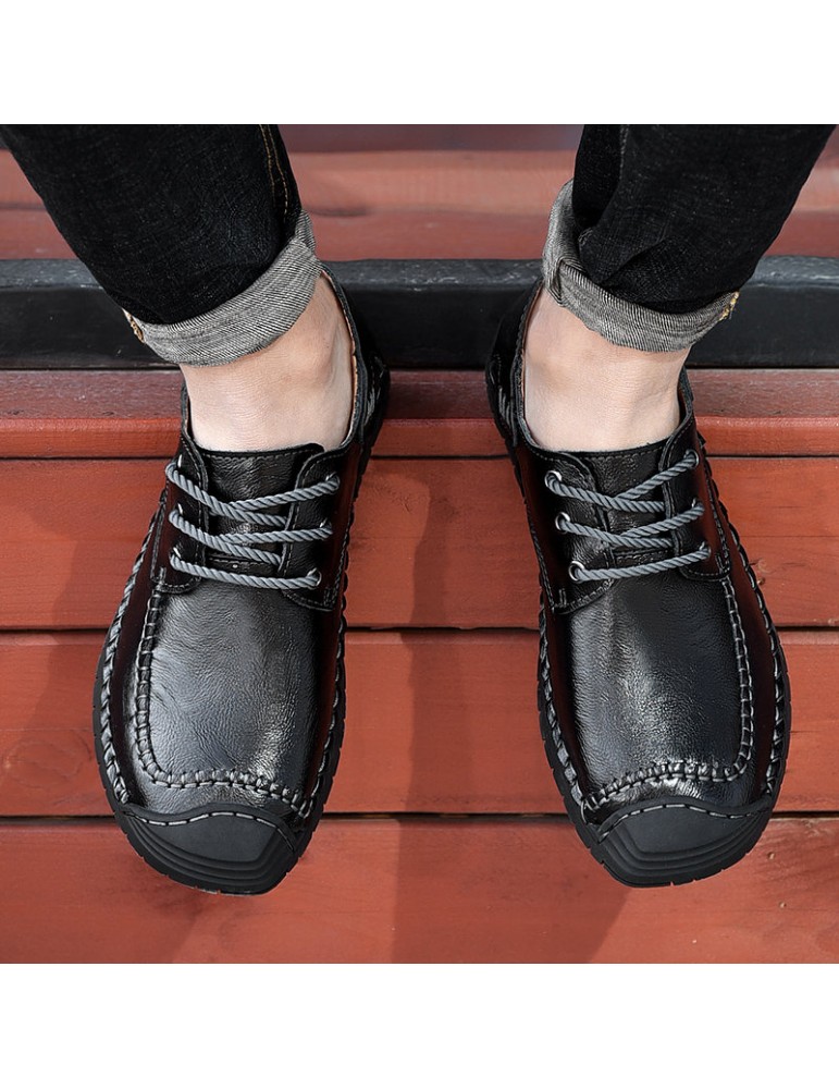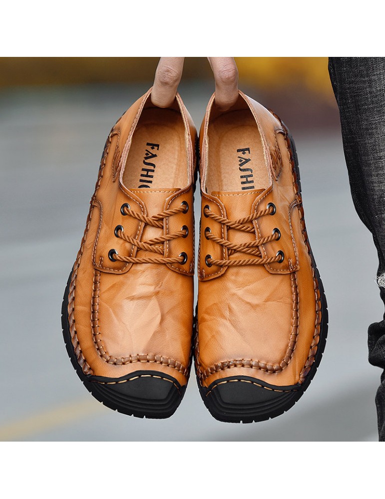 Men Classic Hand Stitching Comfy Soft Lace Up Leather Shoes