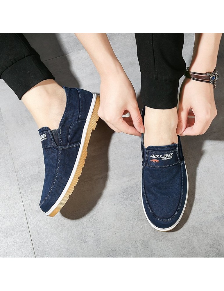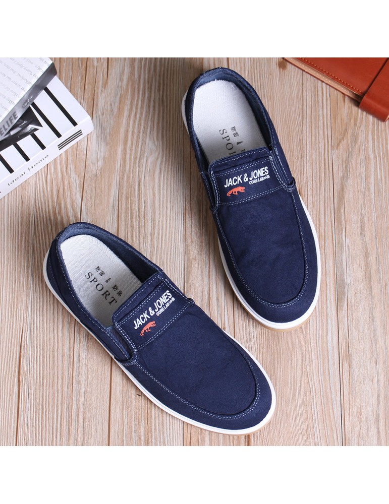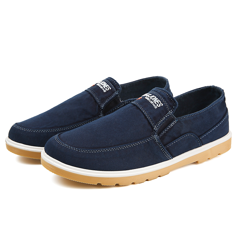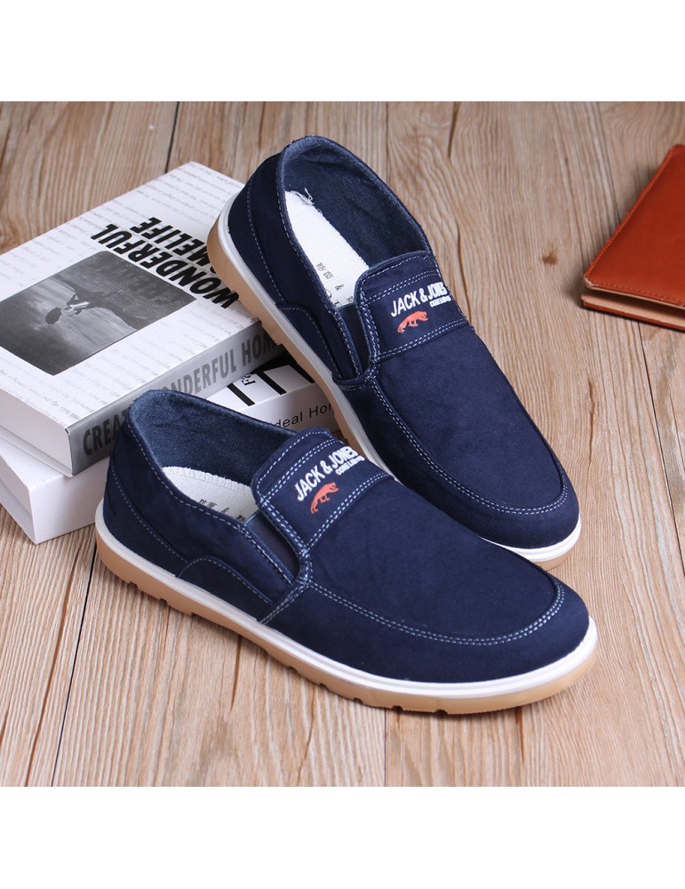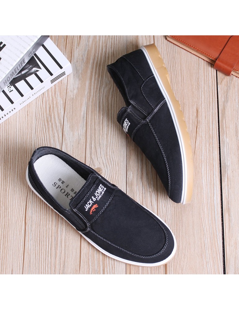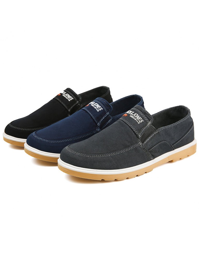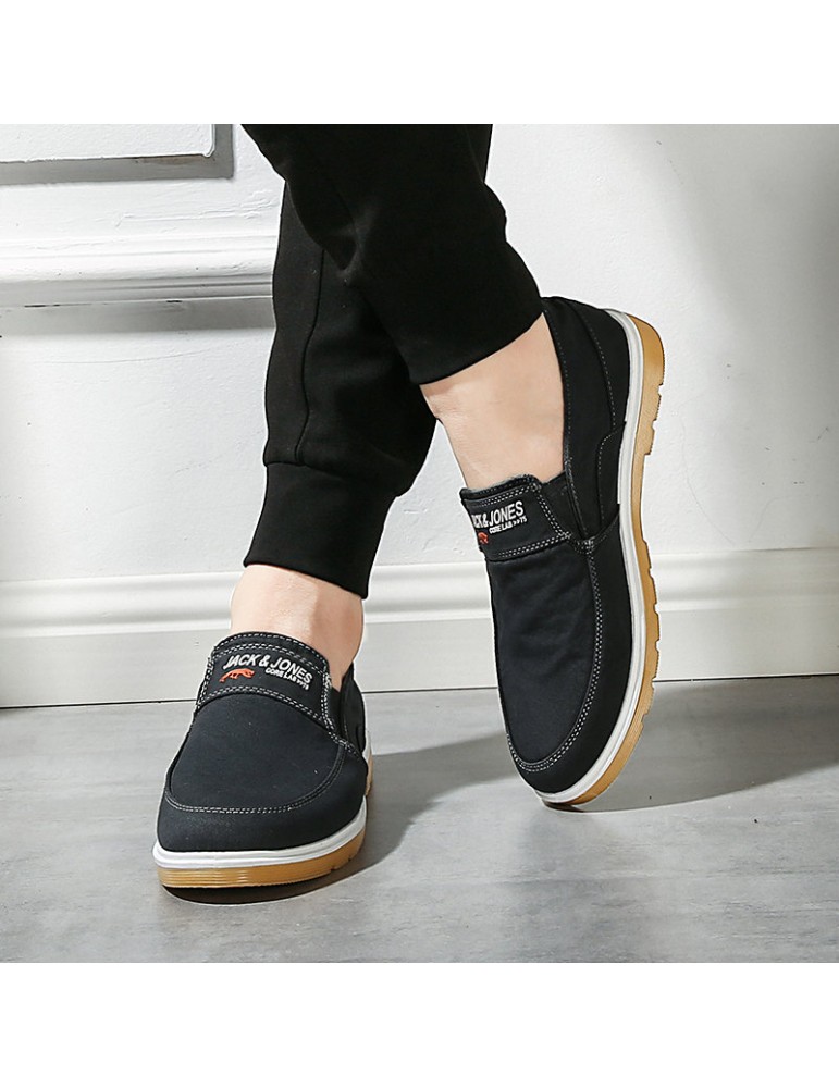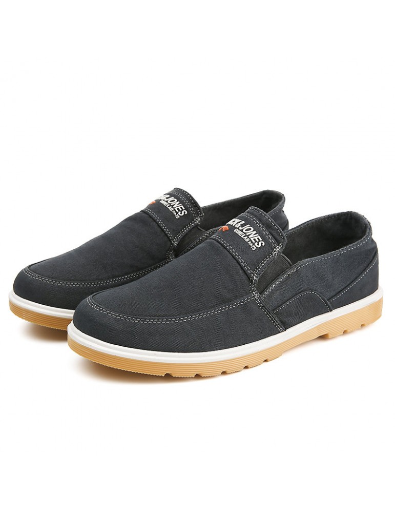 Men Pure Color Canvas Slip Resistant Slip On Soft Casual Shoes