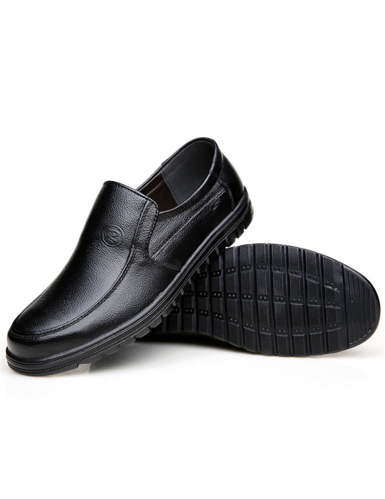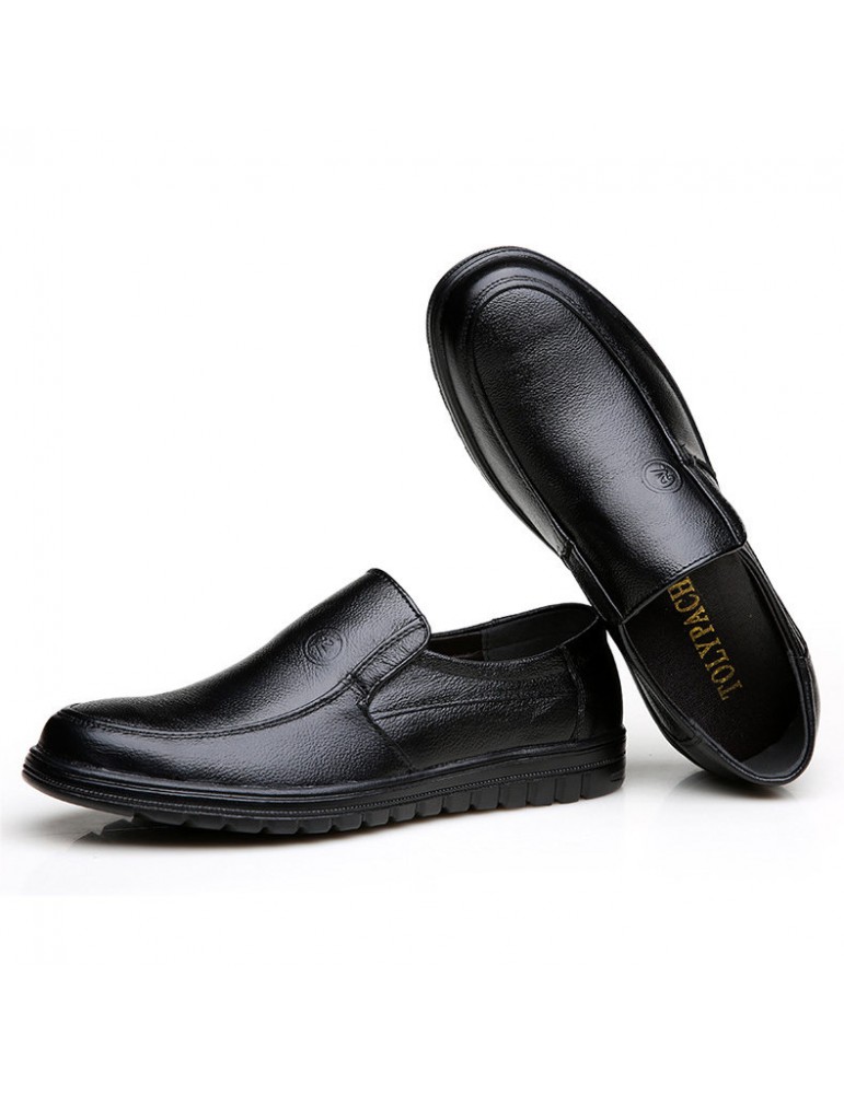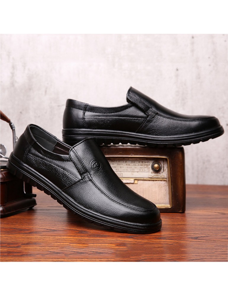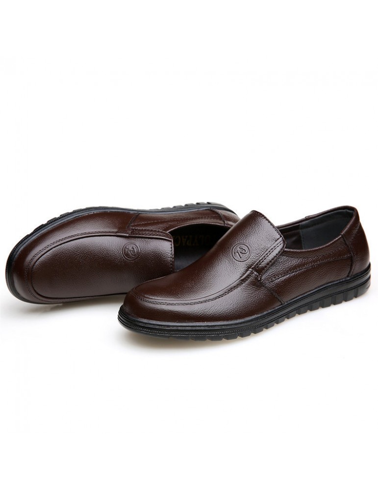 Men Pure Color Soft Sole Slip On Casual Driving Leather Shoes