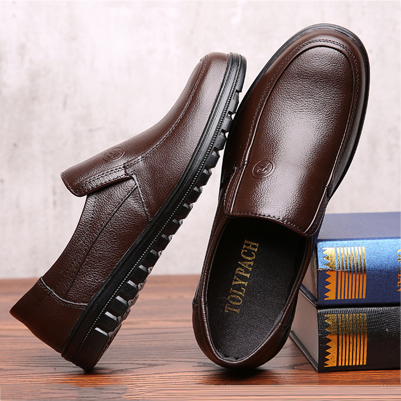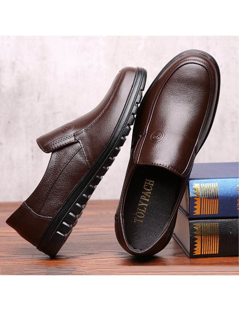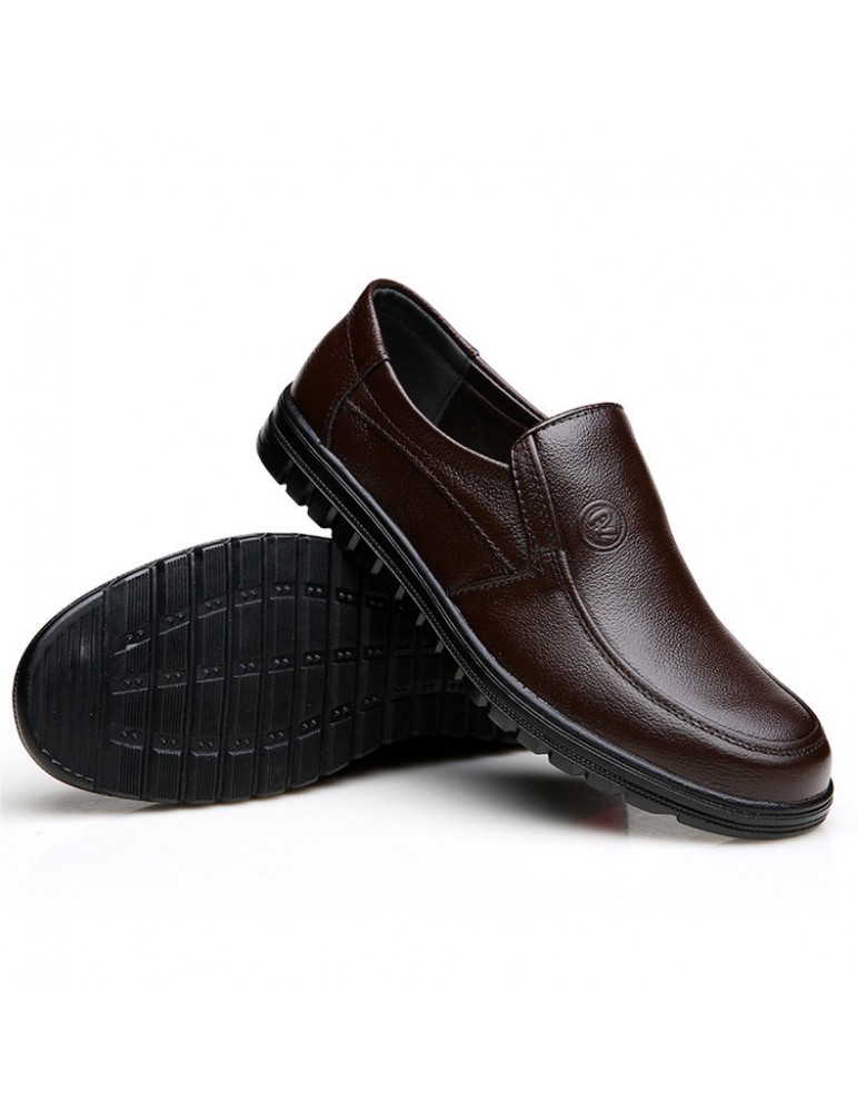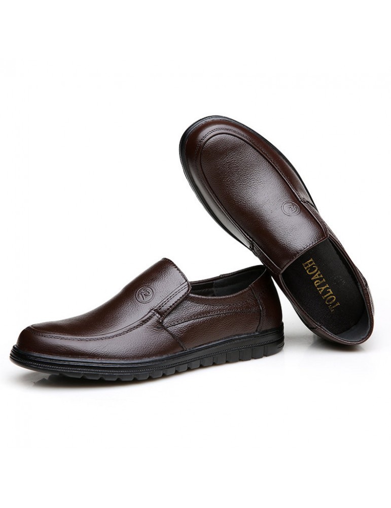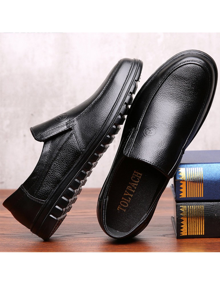 Men Pure Color Soft Sole Slip On Casual Driving Leather Shoes