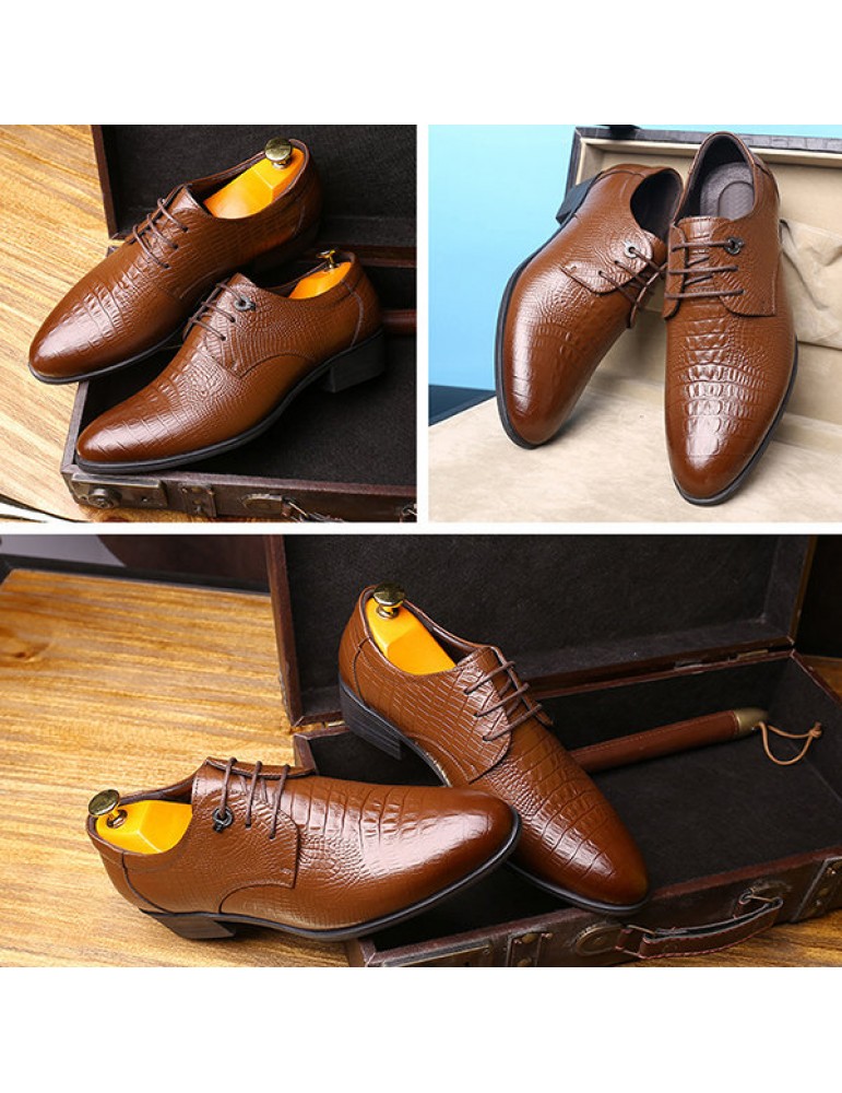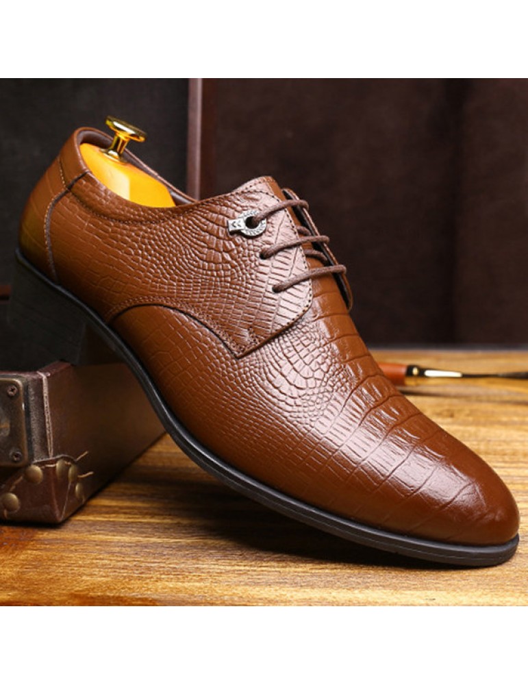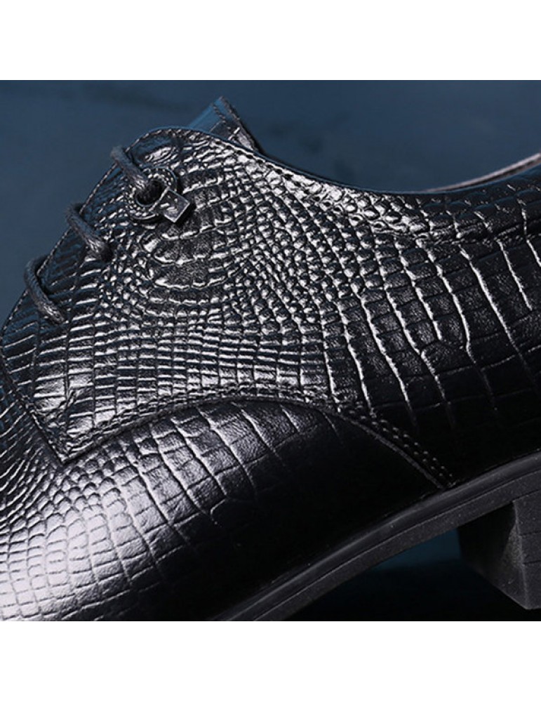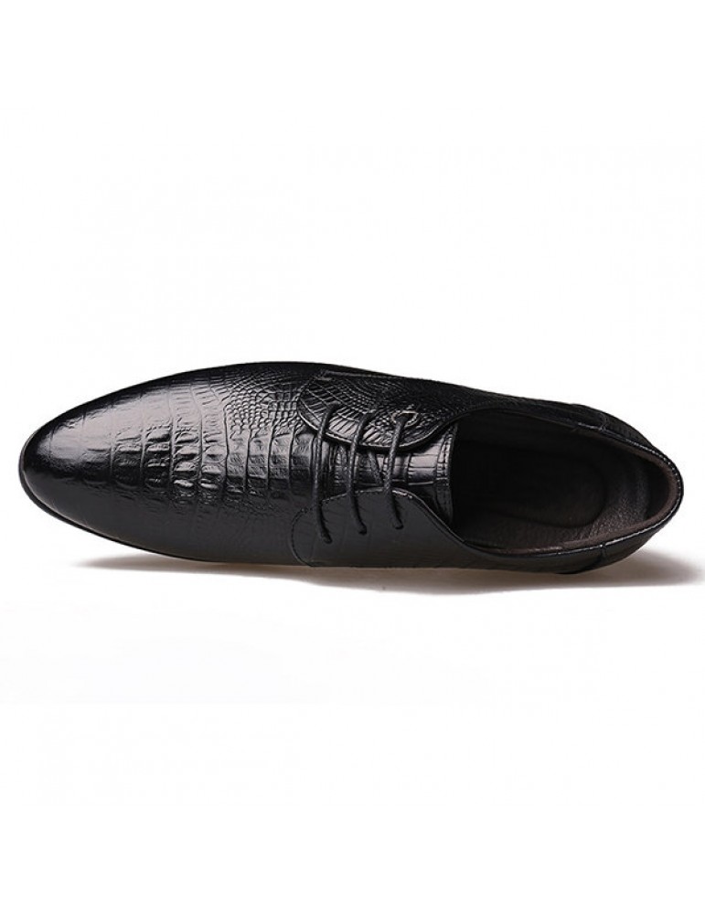 Men's Crocodile Pattern Classic Pointed Toe Lace Up Business Dress Shoes