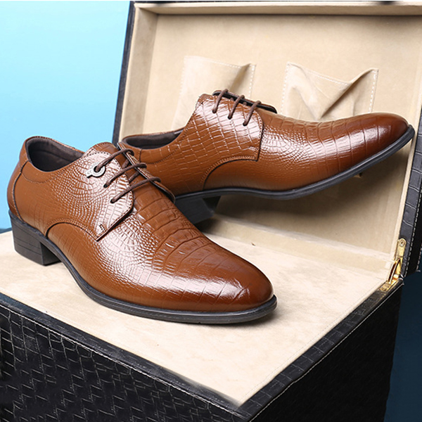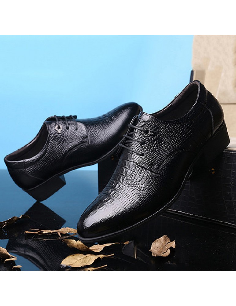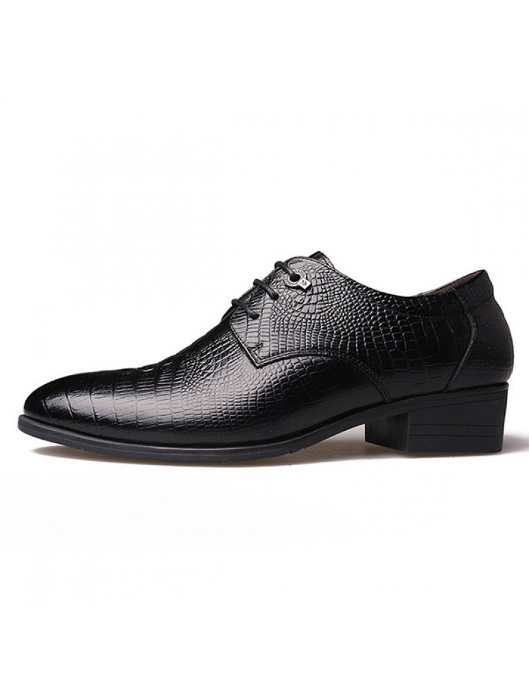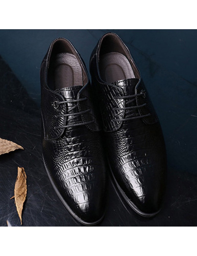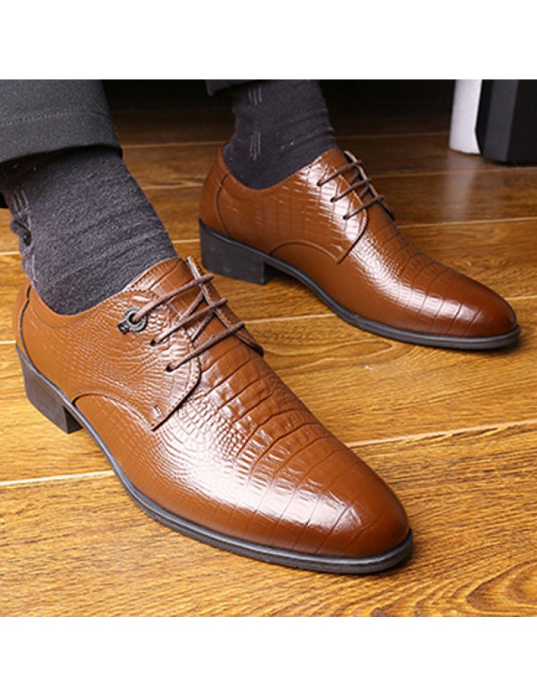 Men's Crocodile Pattern Classic Pointed Toe Lace Up Business Dress Shoes