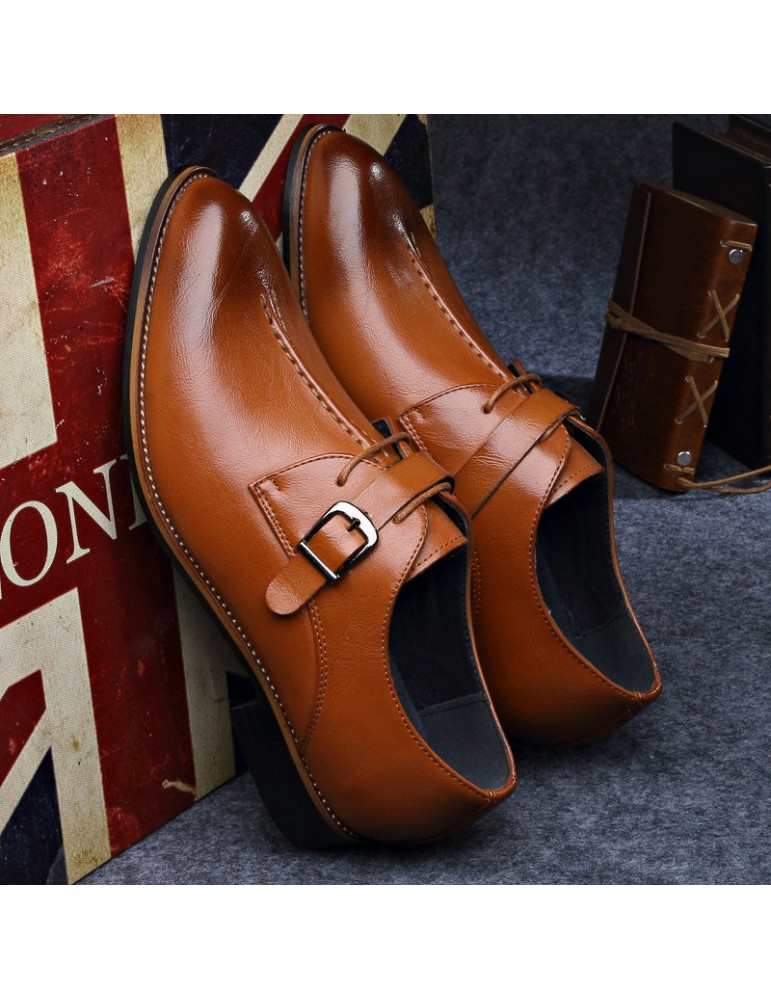 Men Classic Pointed Toe Metal Buckle Business Formal Shoes