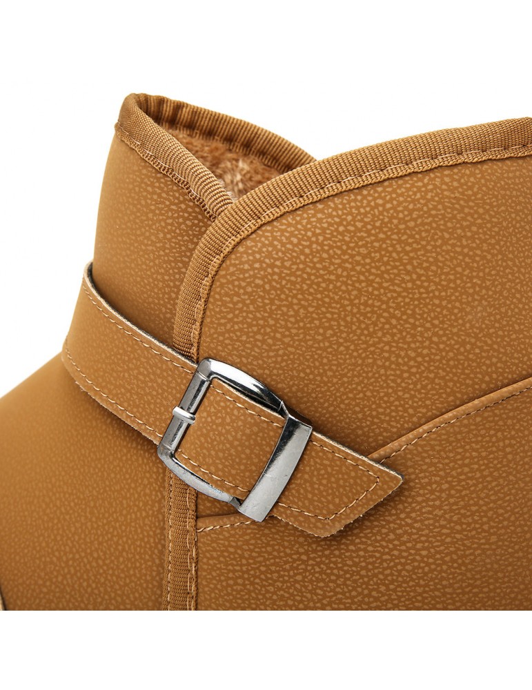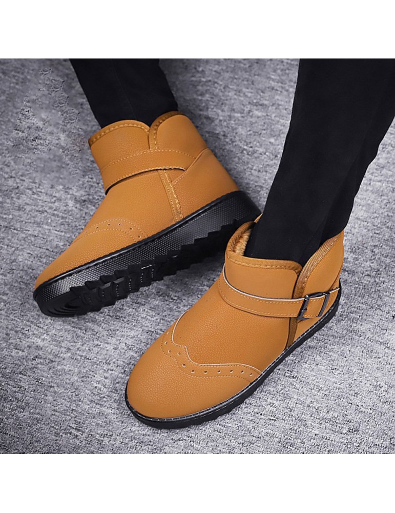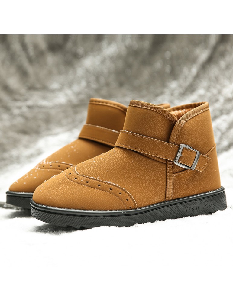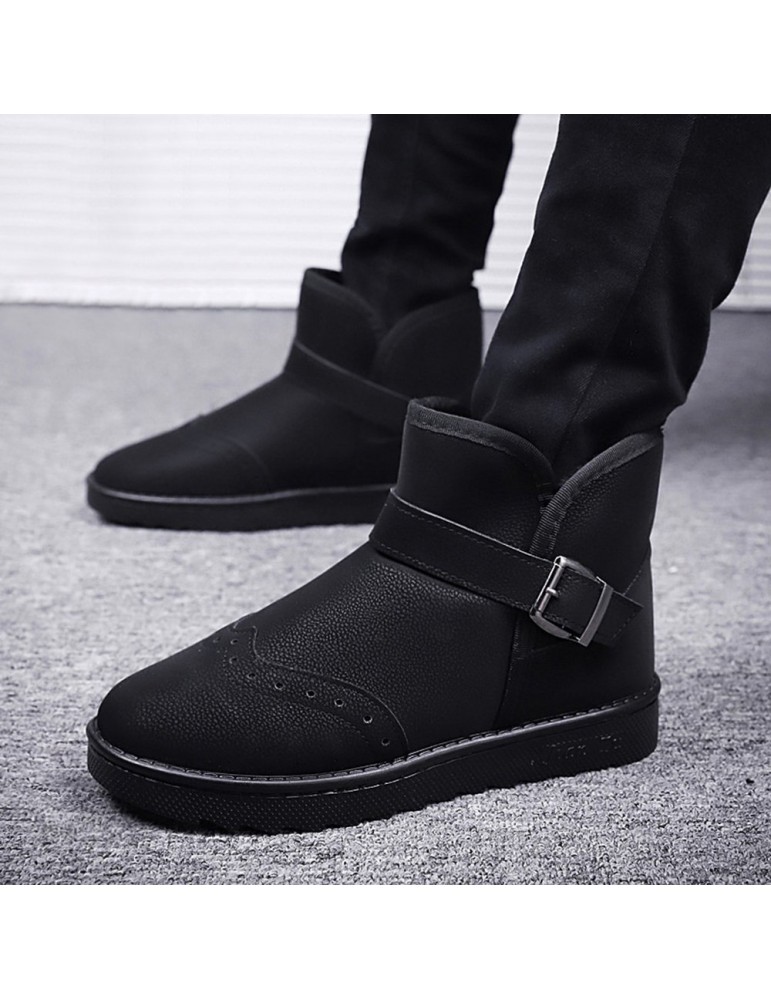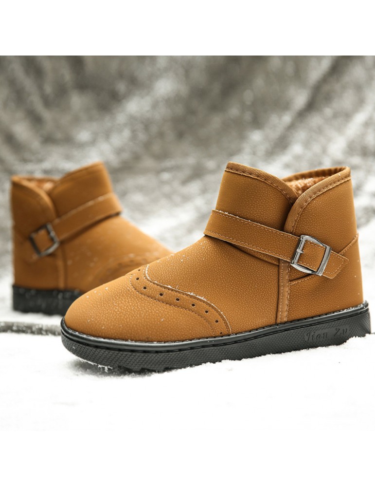 Men Leather Metal Buckle Slip Resistant Warm Casual Snow Boots