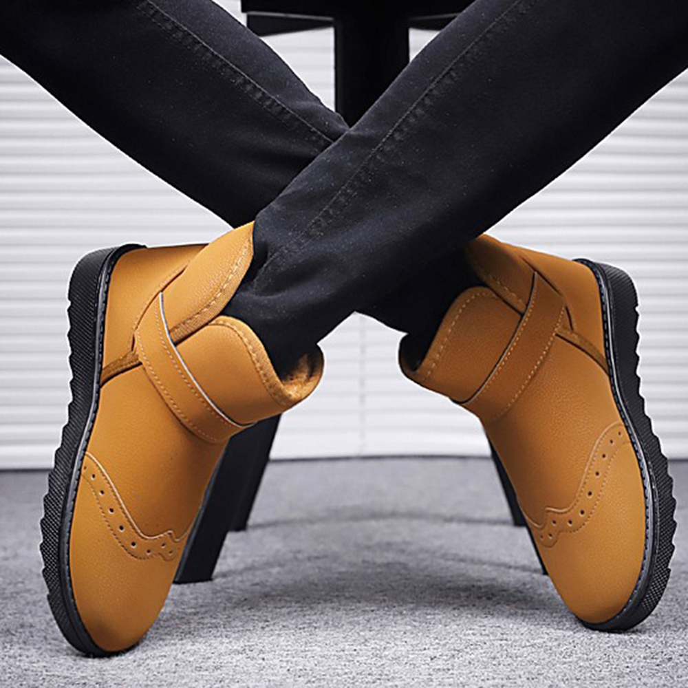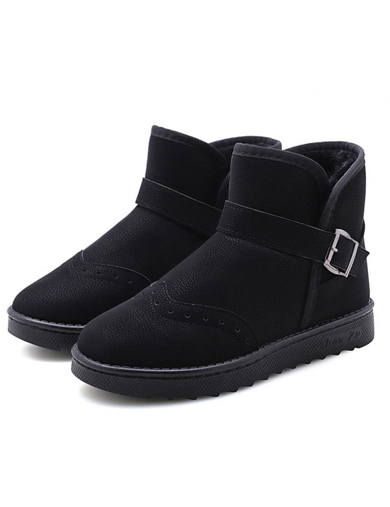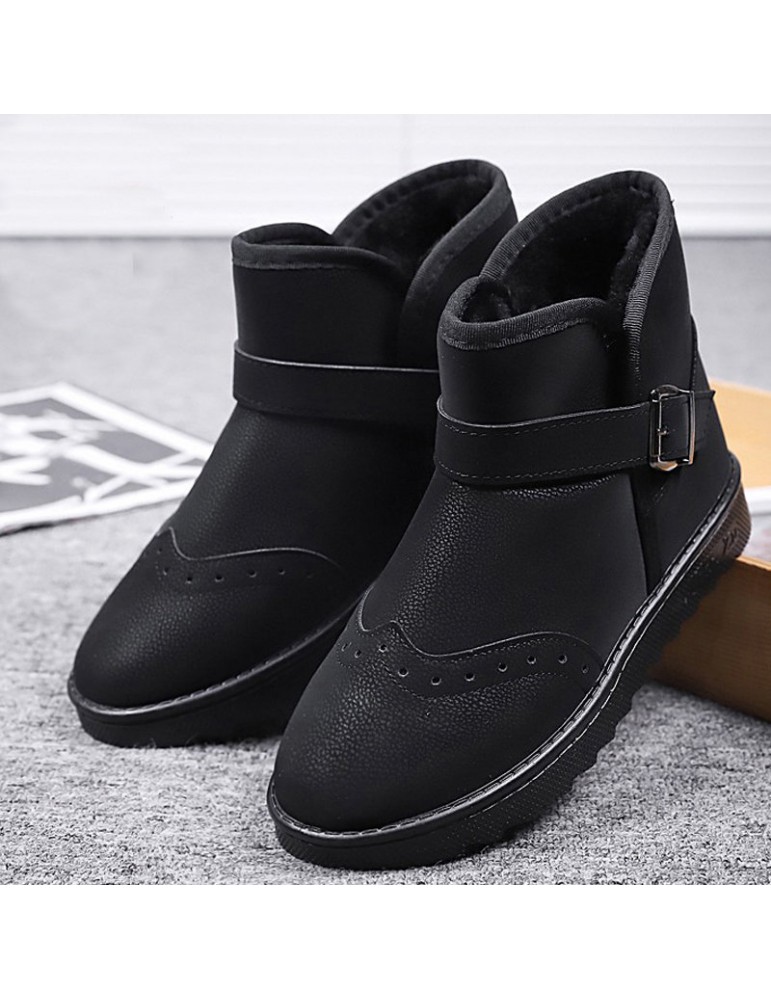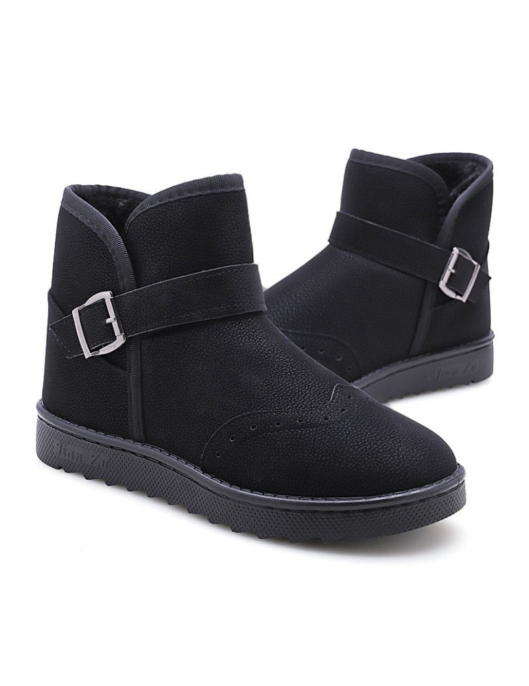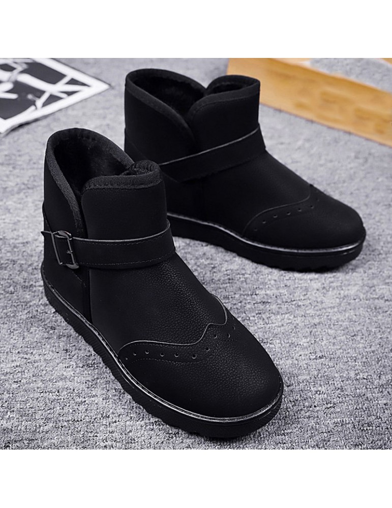 Men Leather Metal Buckle Slip Resistant Warm Casual Snow Boots