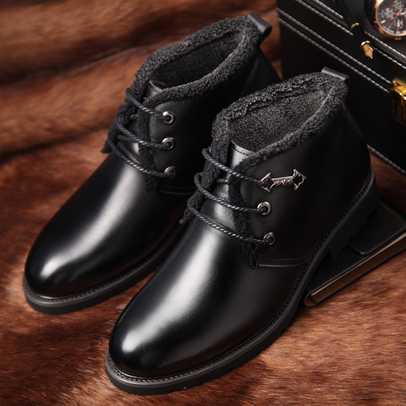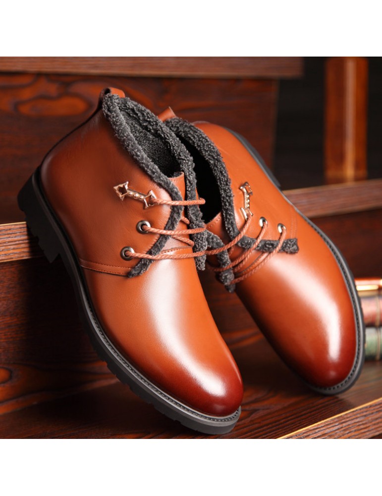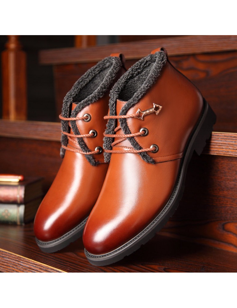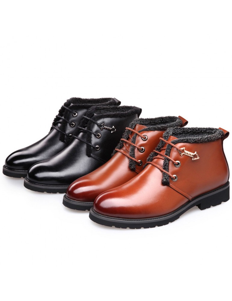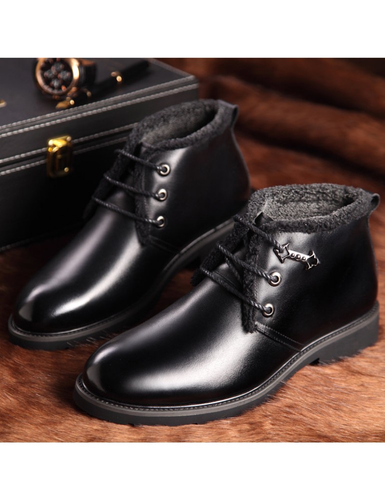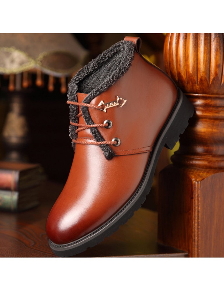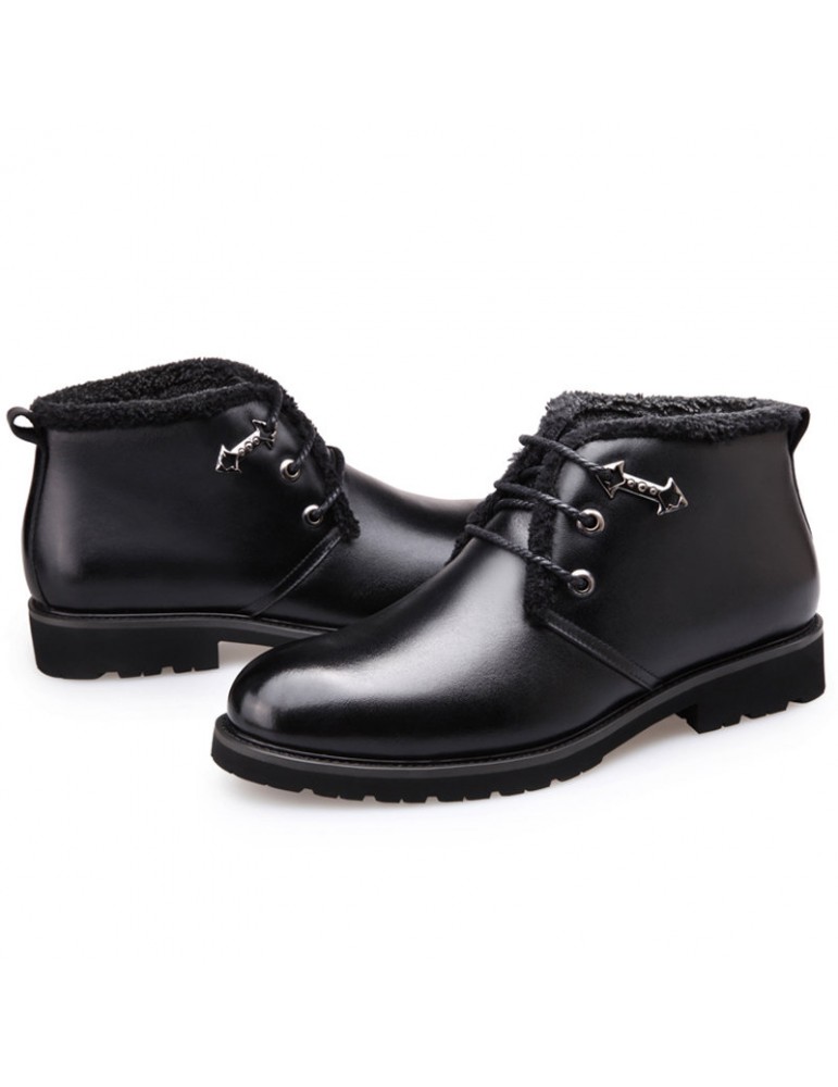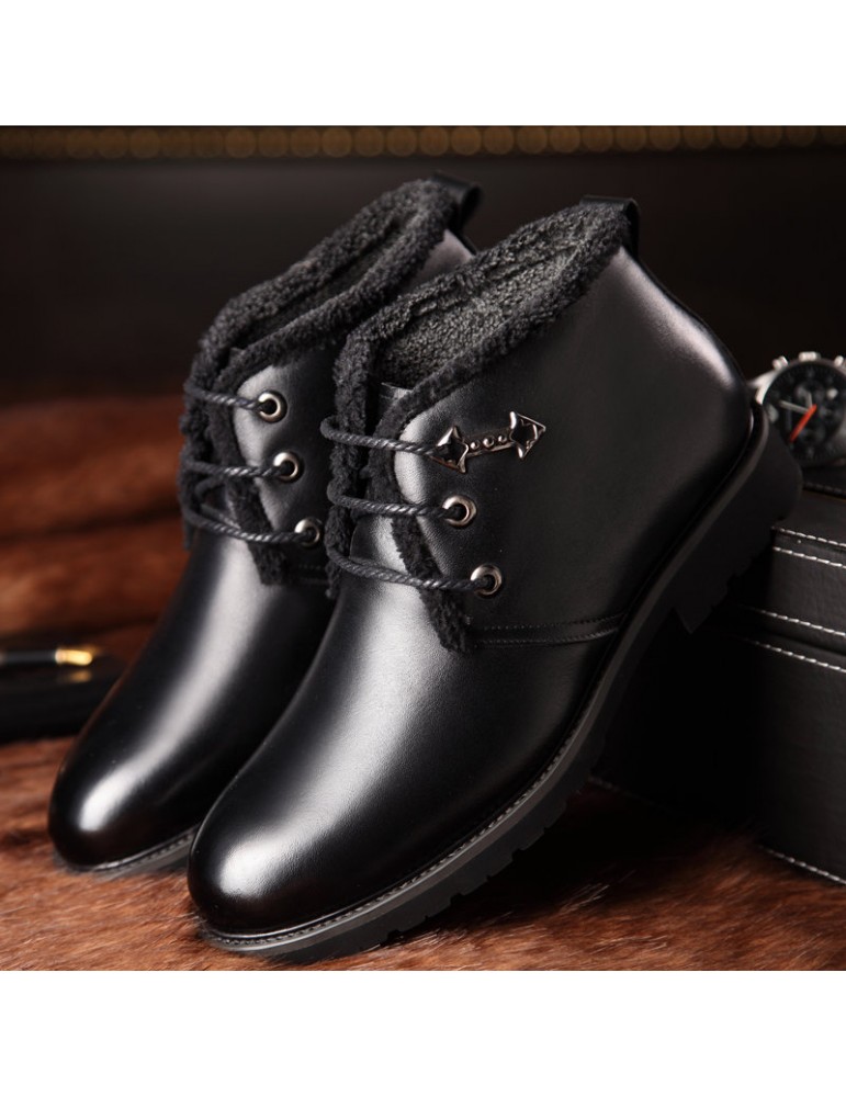 Men Microfiber Leather Slip Resistant Plush Lining Warm Casual Boots