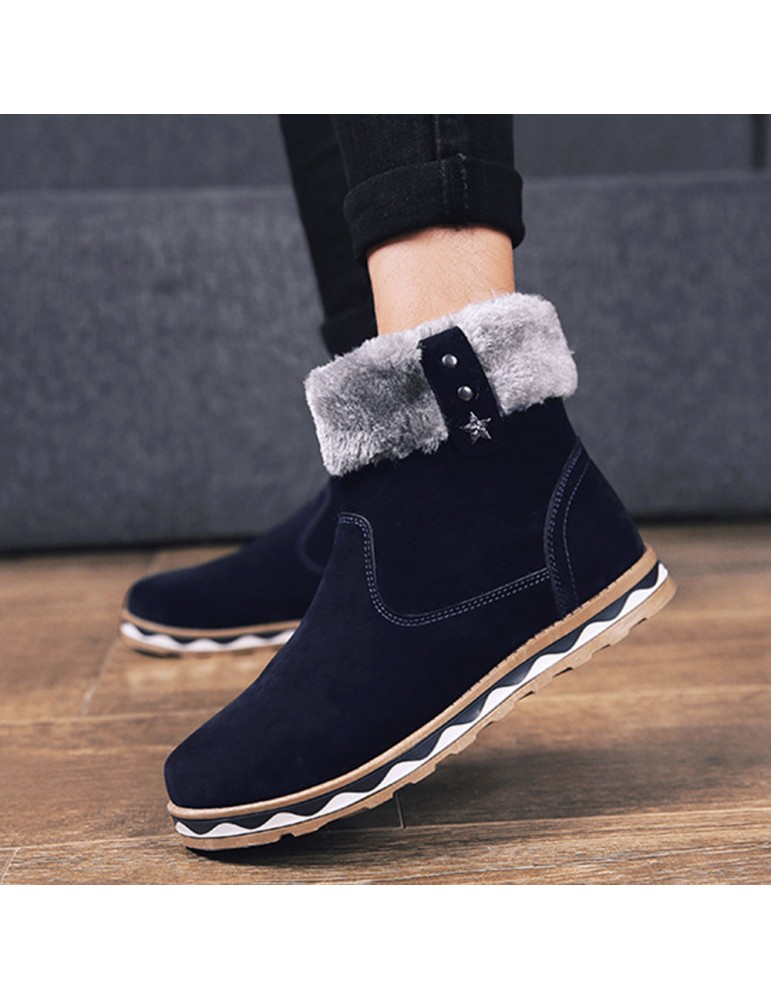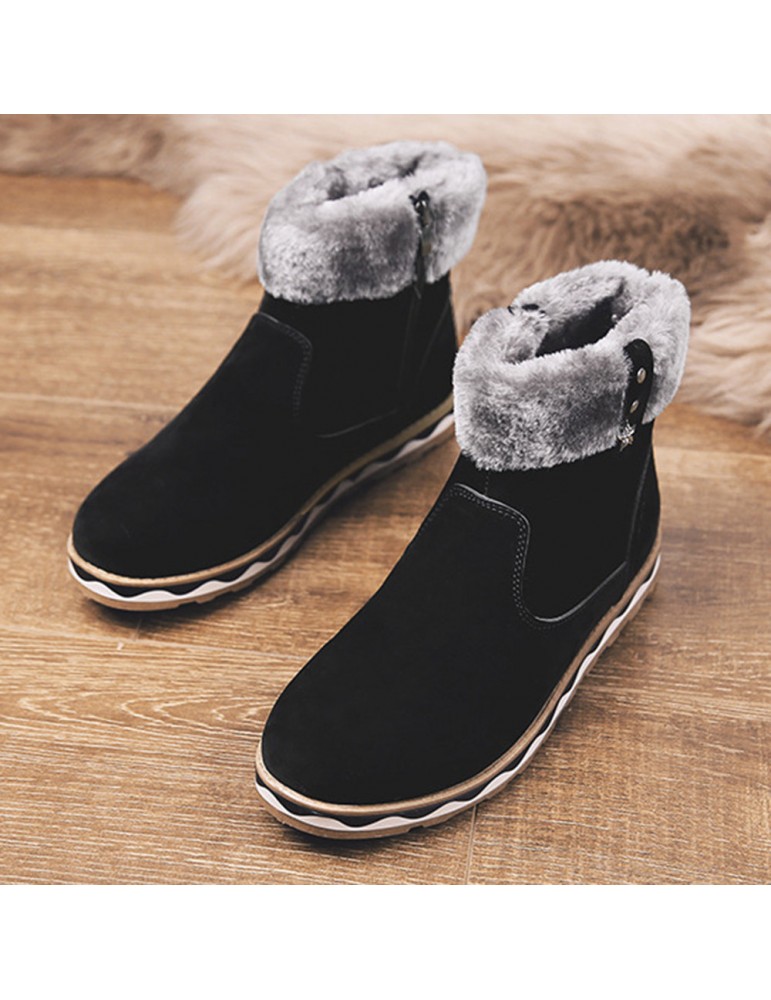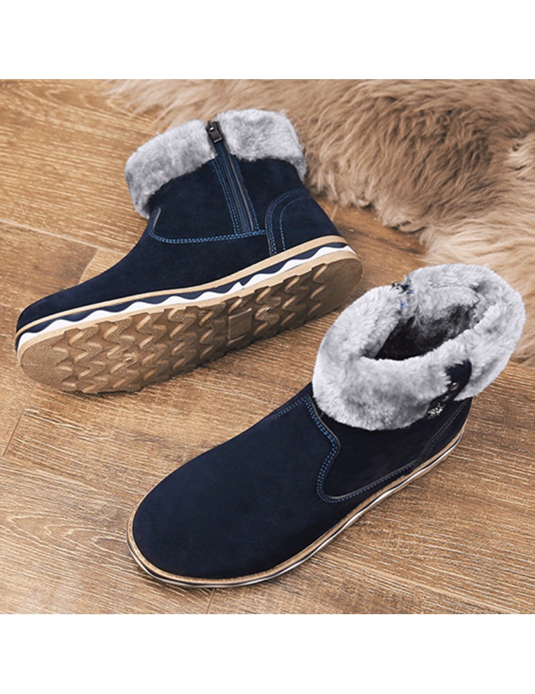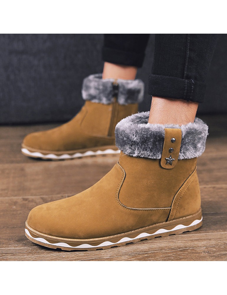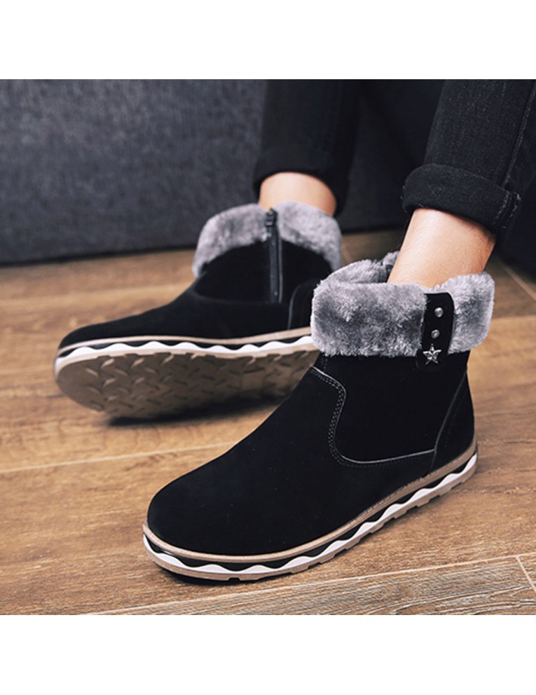 Men Suede Fur Lining Slip Resistant Side Zipper Casual Snow Boots