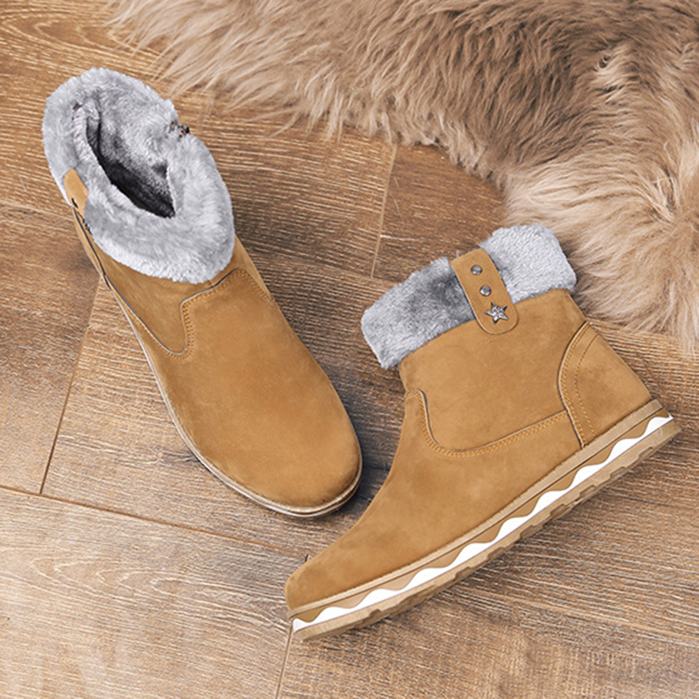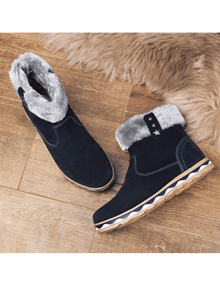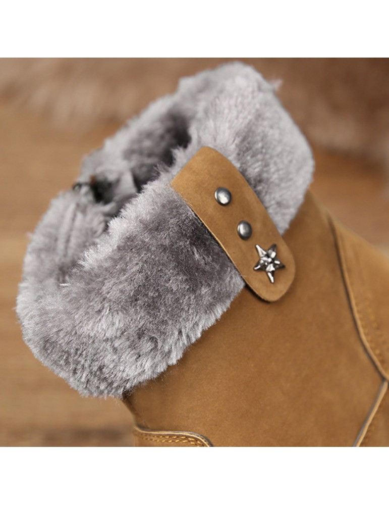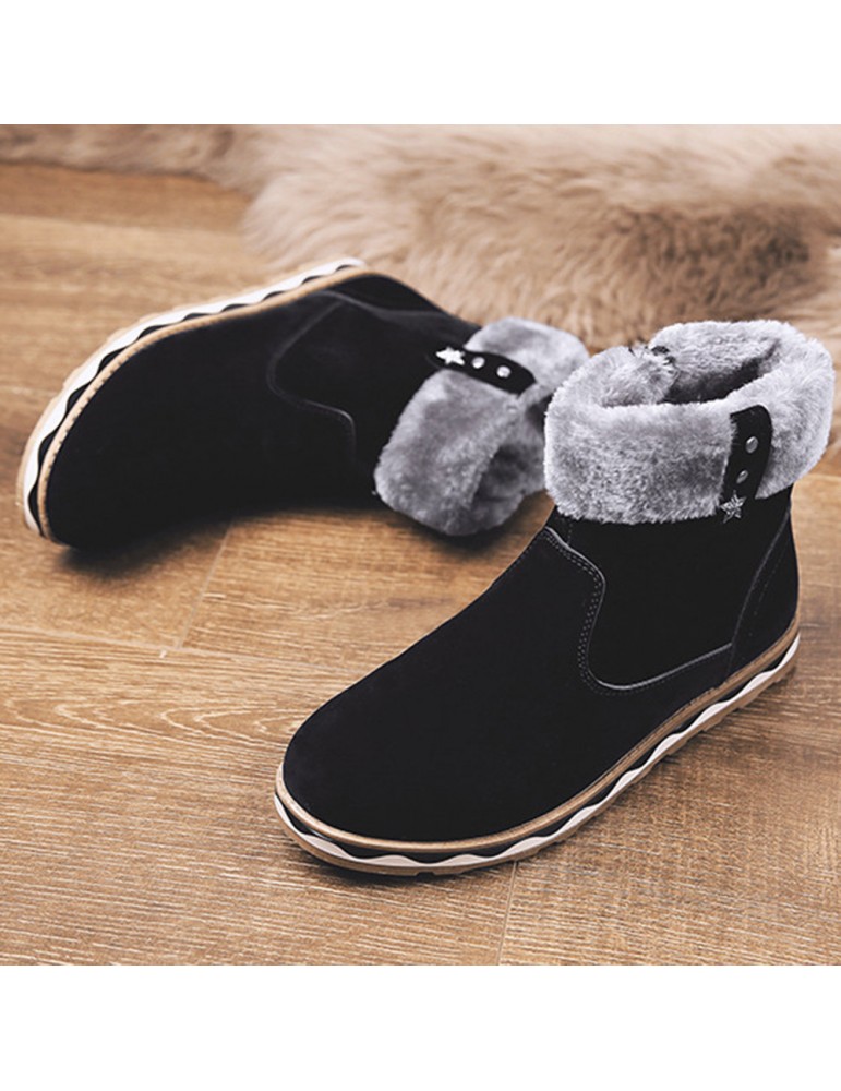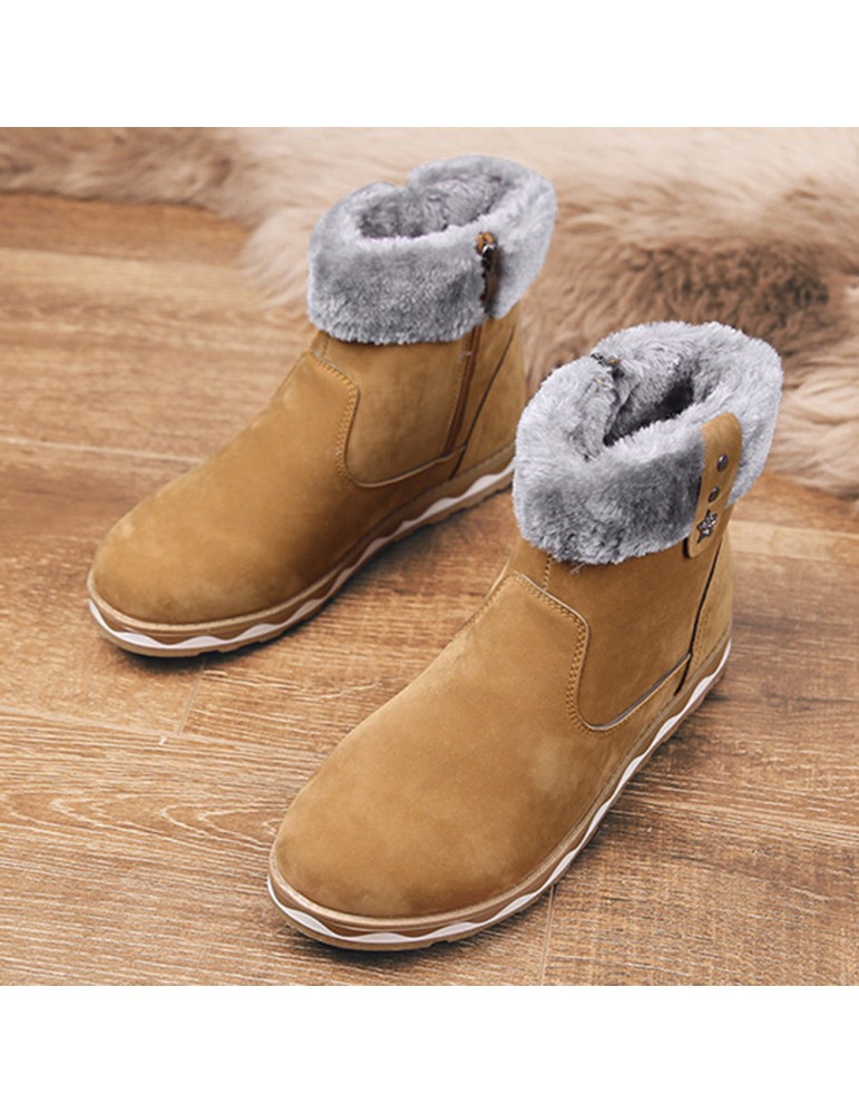 Men Suede Fur Lining Slip Resistant Side Zipper Casual Snow Boots