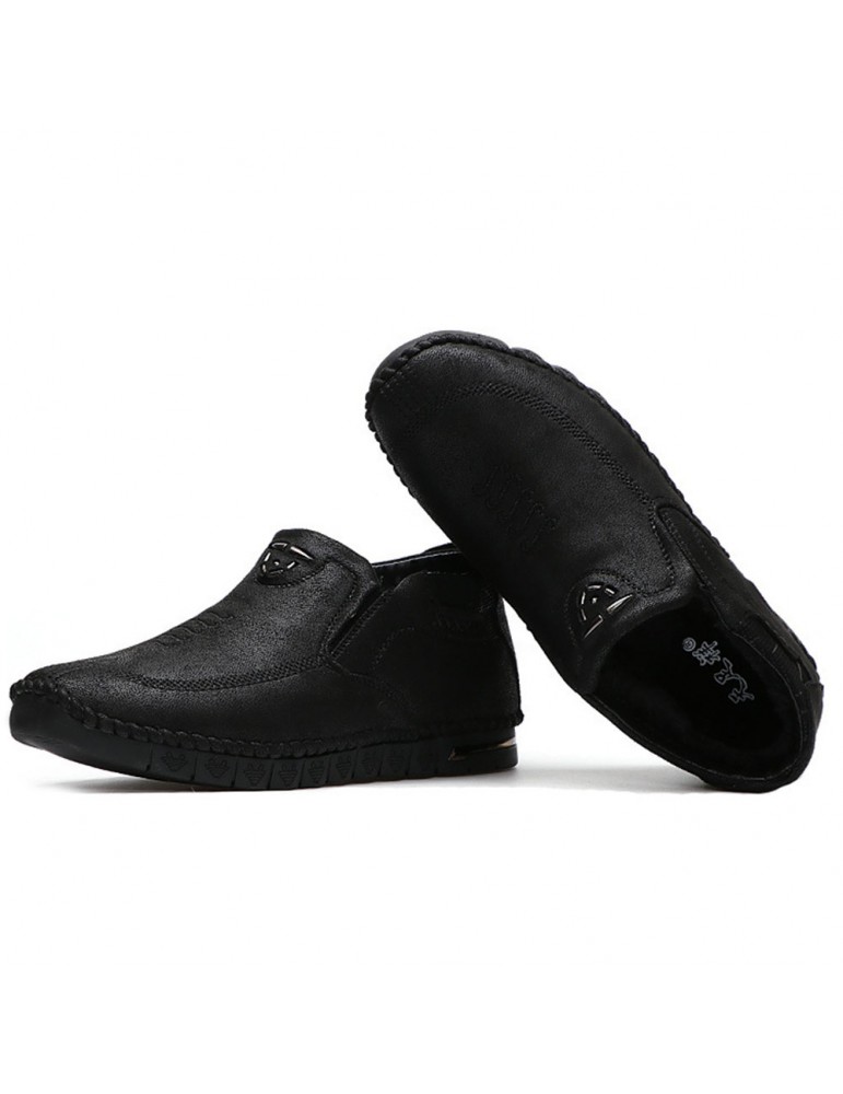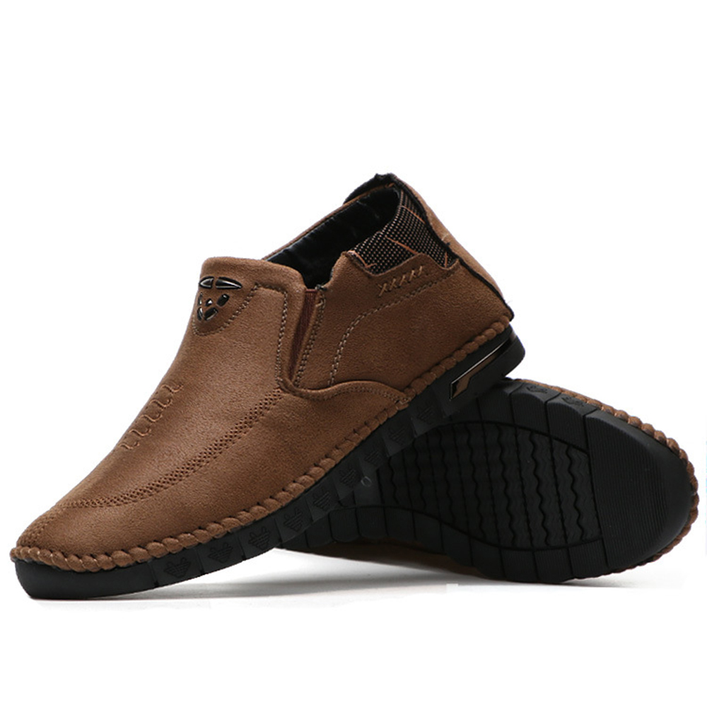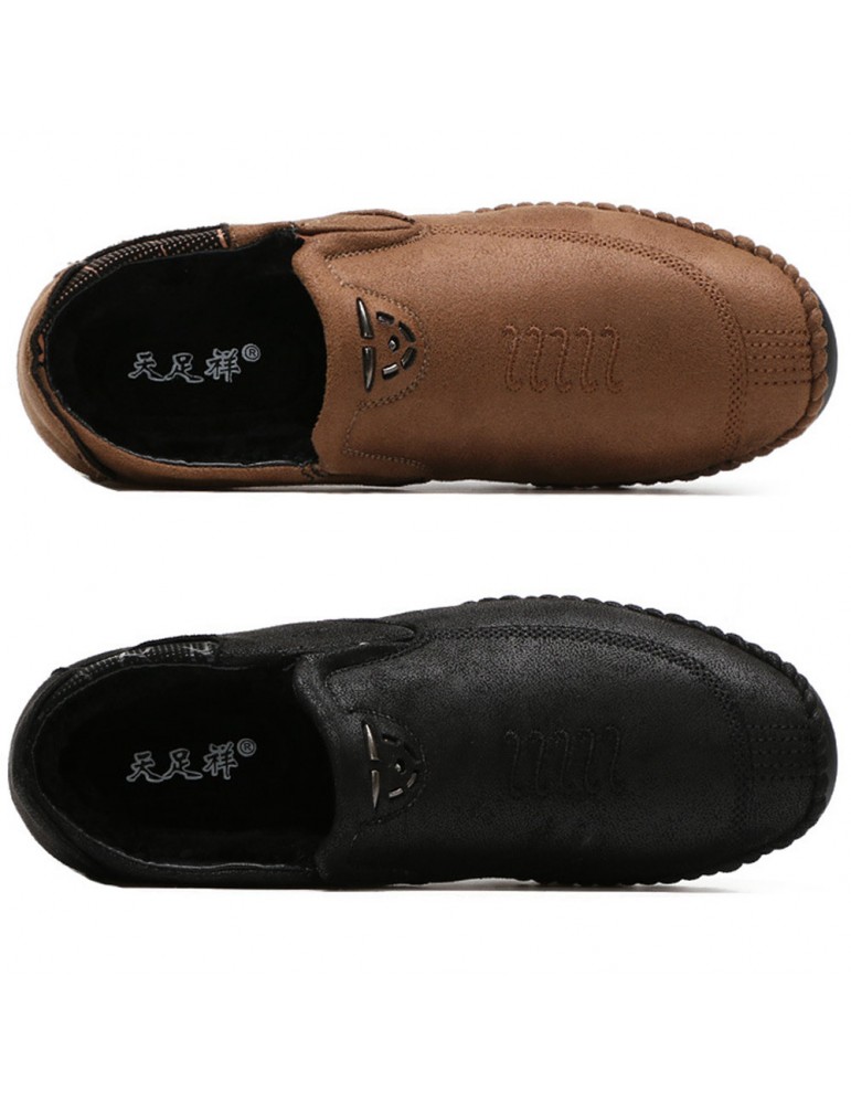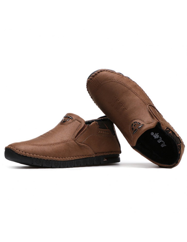 Men Hand Stitching Soft Sole Slip On Warm Lined Casual Ankle Boots