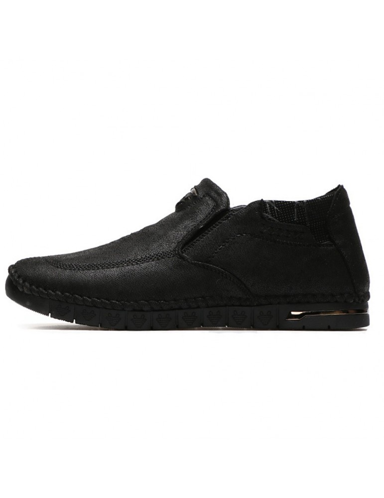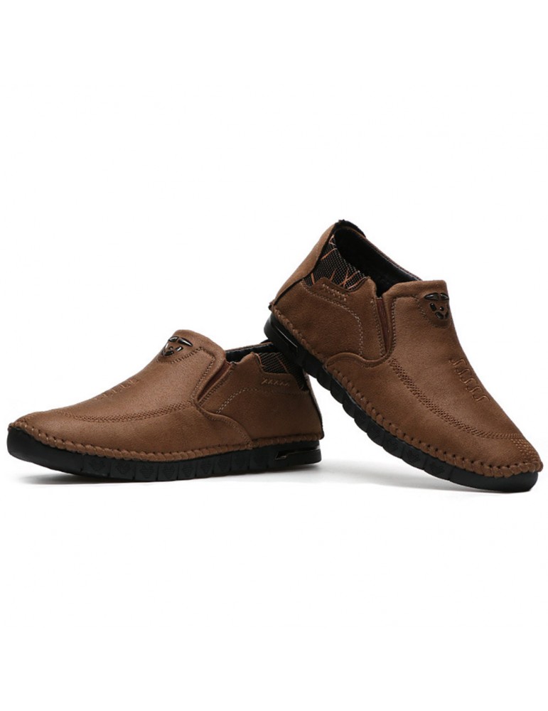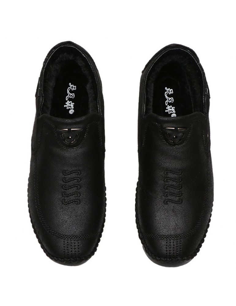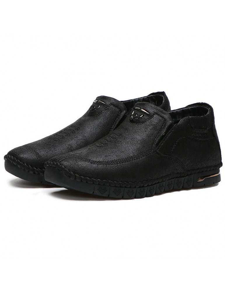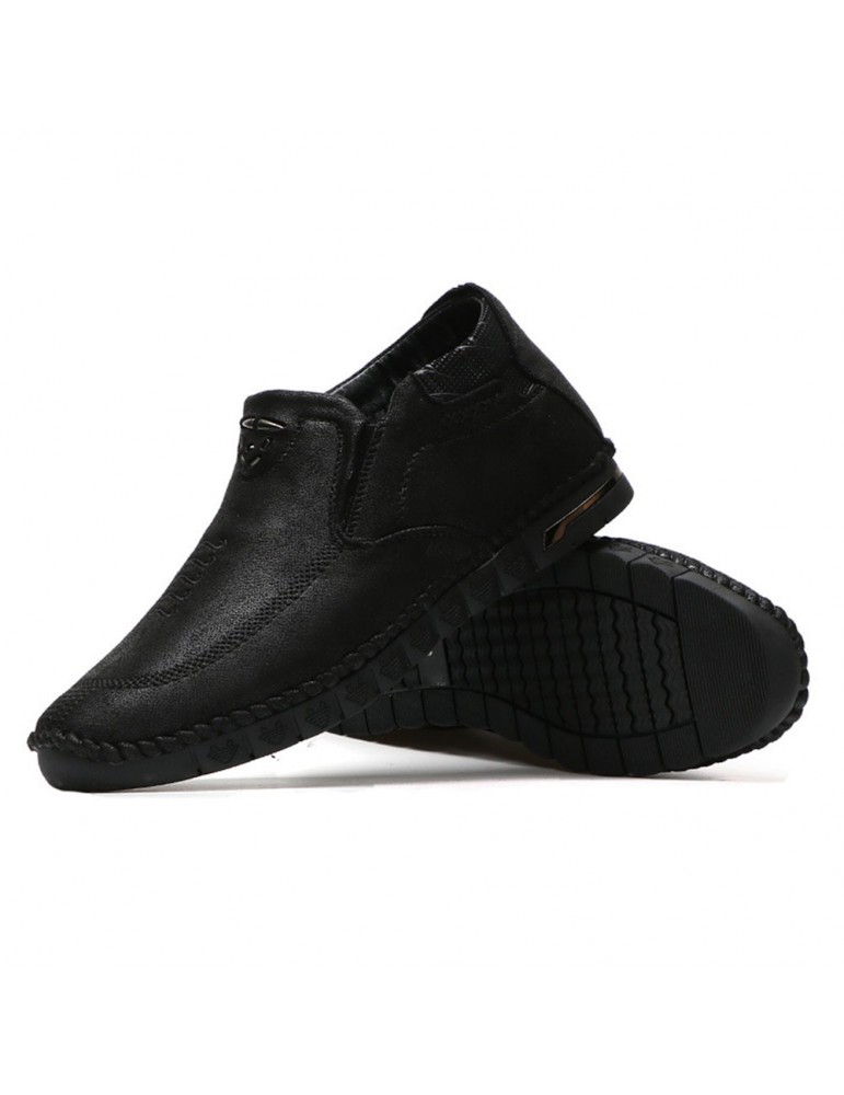 Men Hand Stitching Soft Sole Slip On Warm Lined Casual Ankle Boots