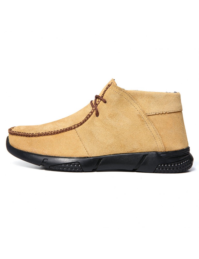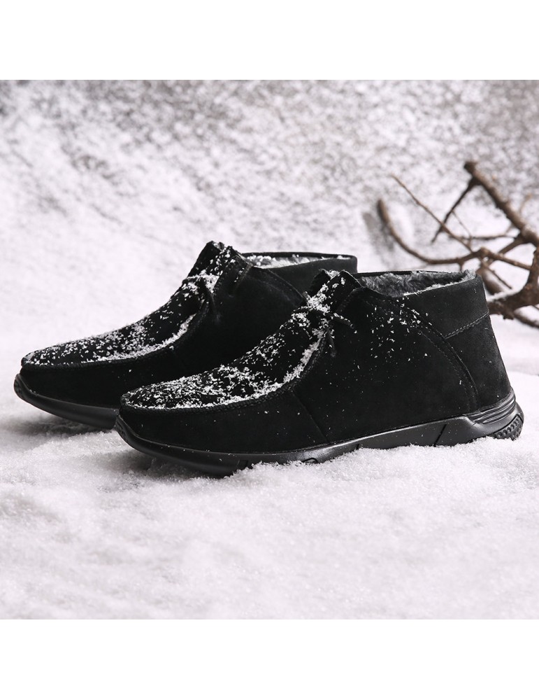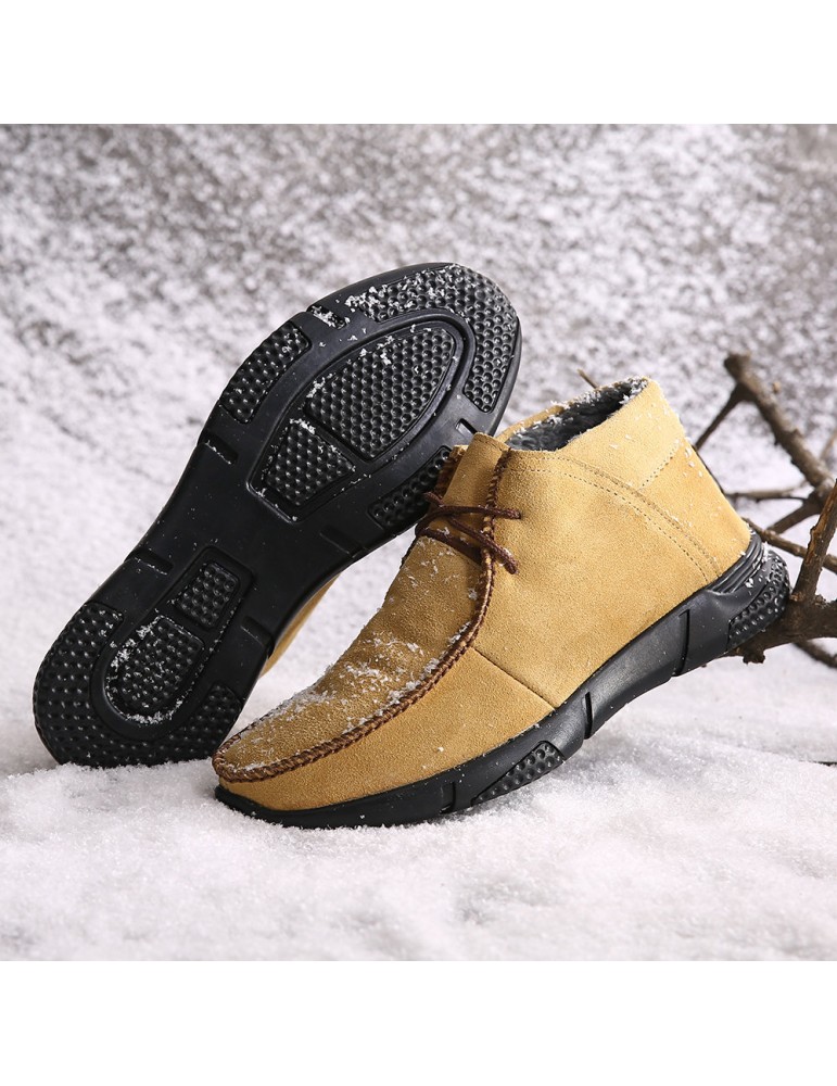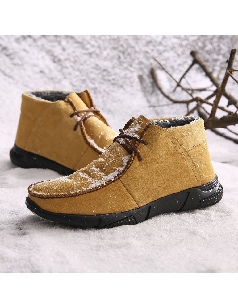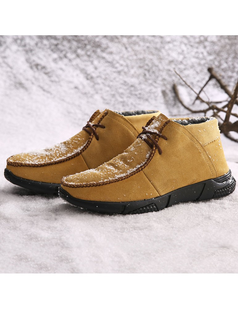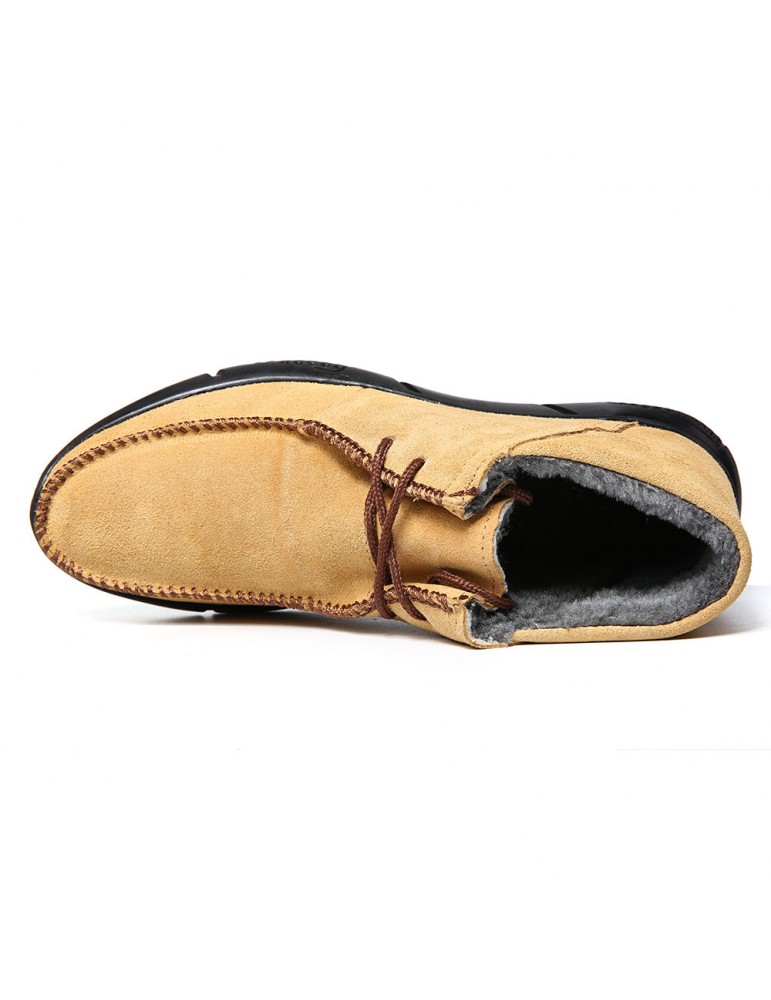 Men Hand Stitching Fabric Plush Lining Warm Casual Boots