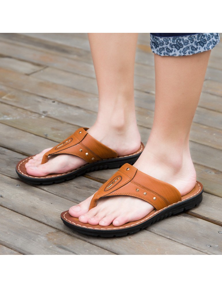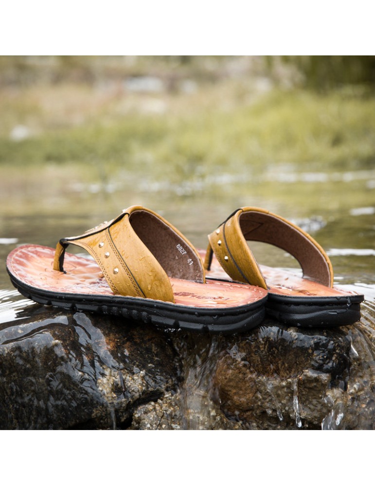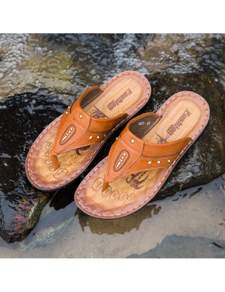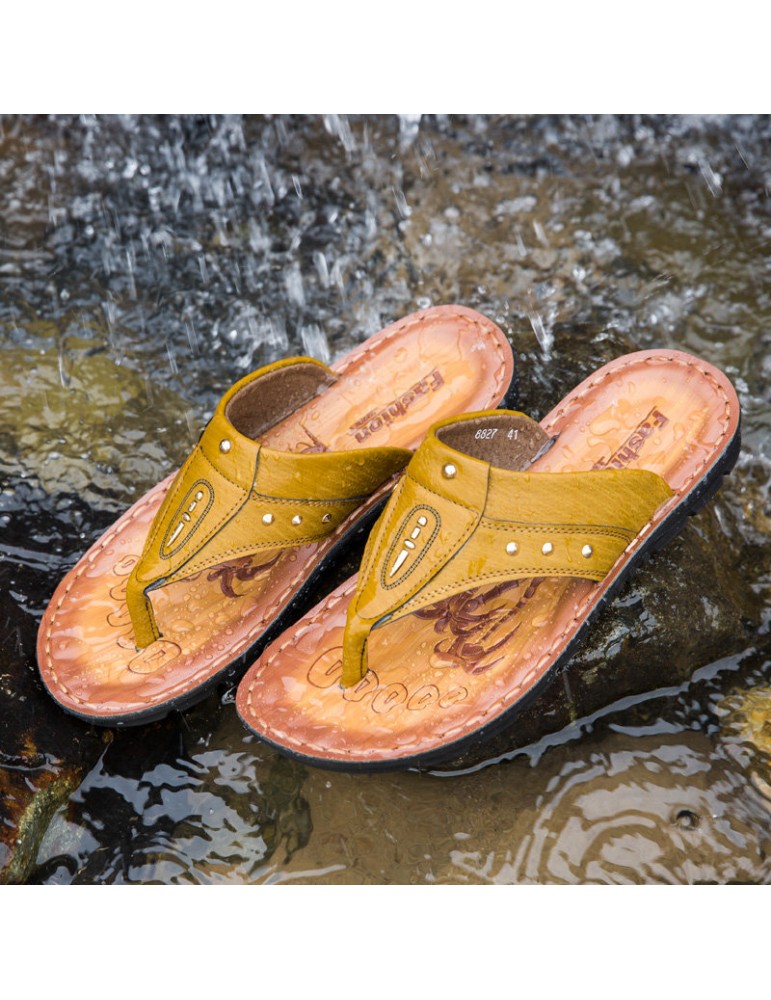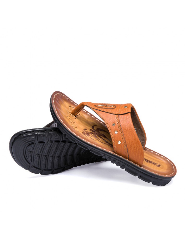 Men Clip Toe Soft Sole Water Friendly Beach Casual Leather Flip Flops