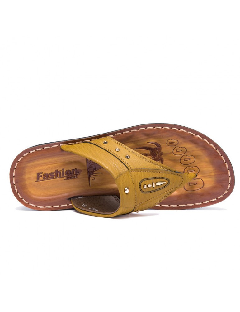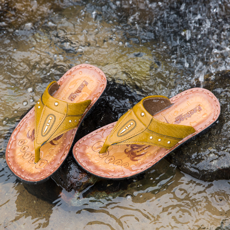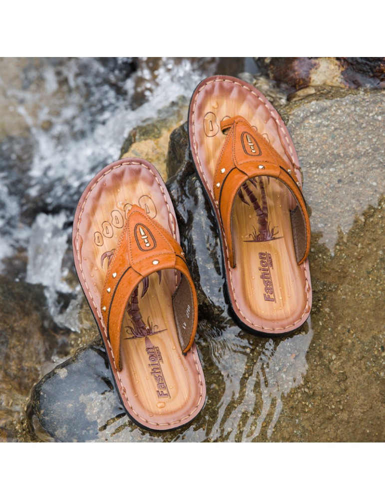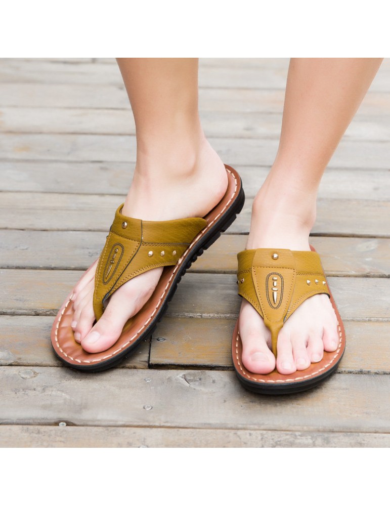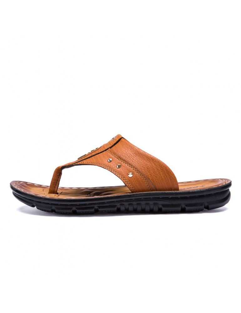 Men Clip Toe Soft Sole Water Friendly Beach Casual Leather Flip Flops
