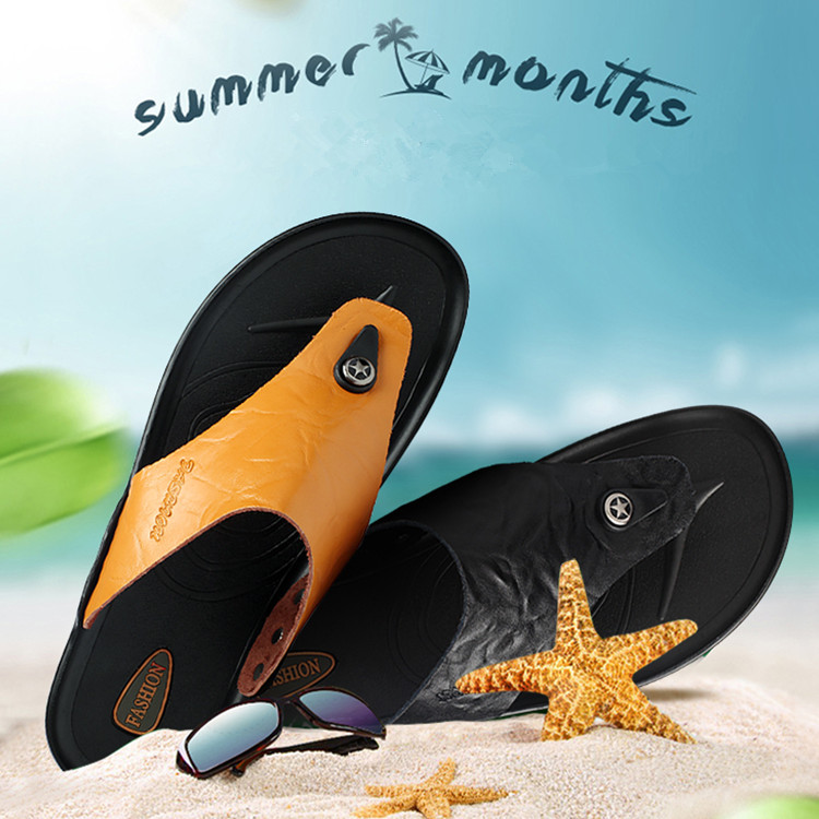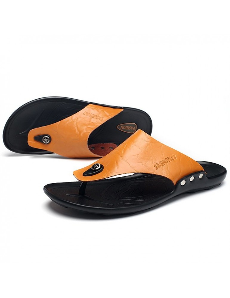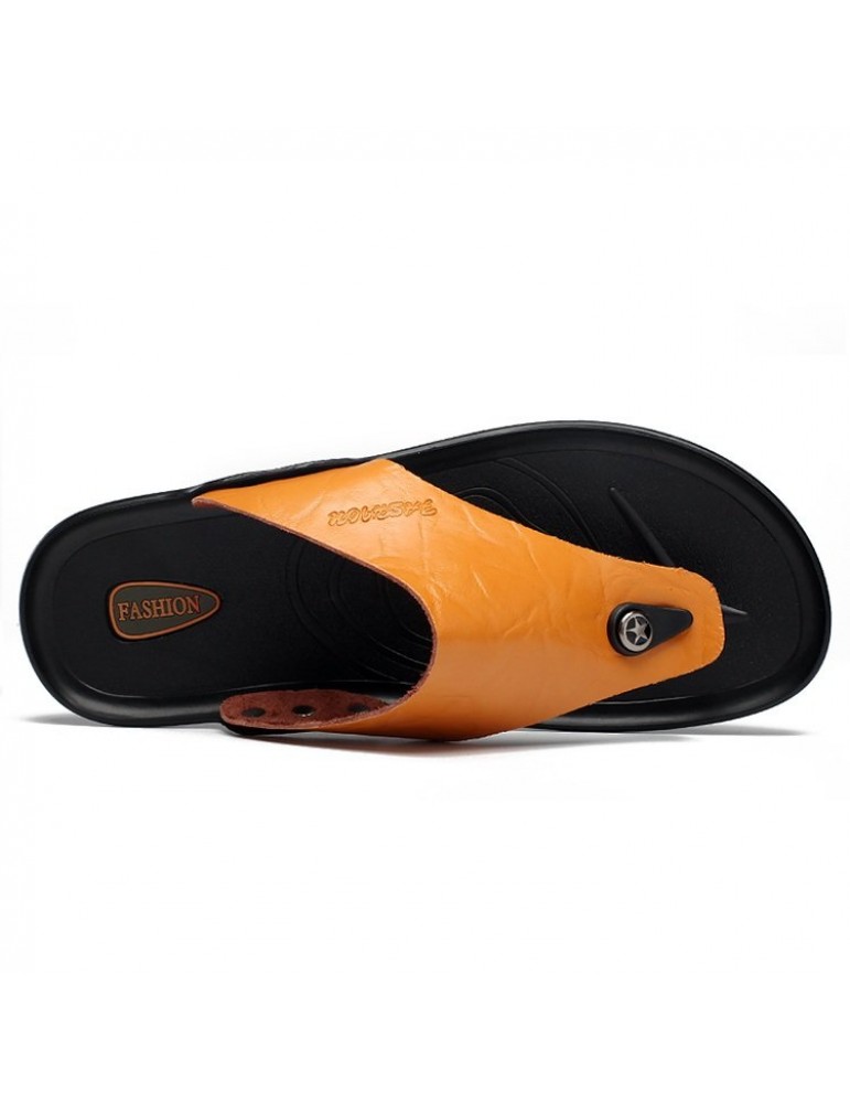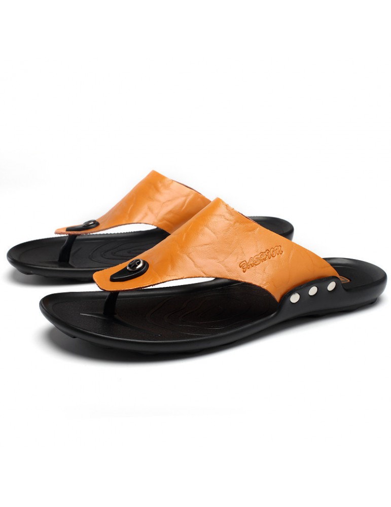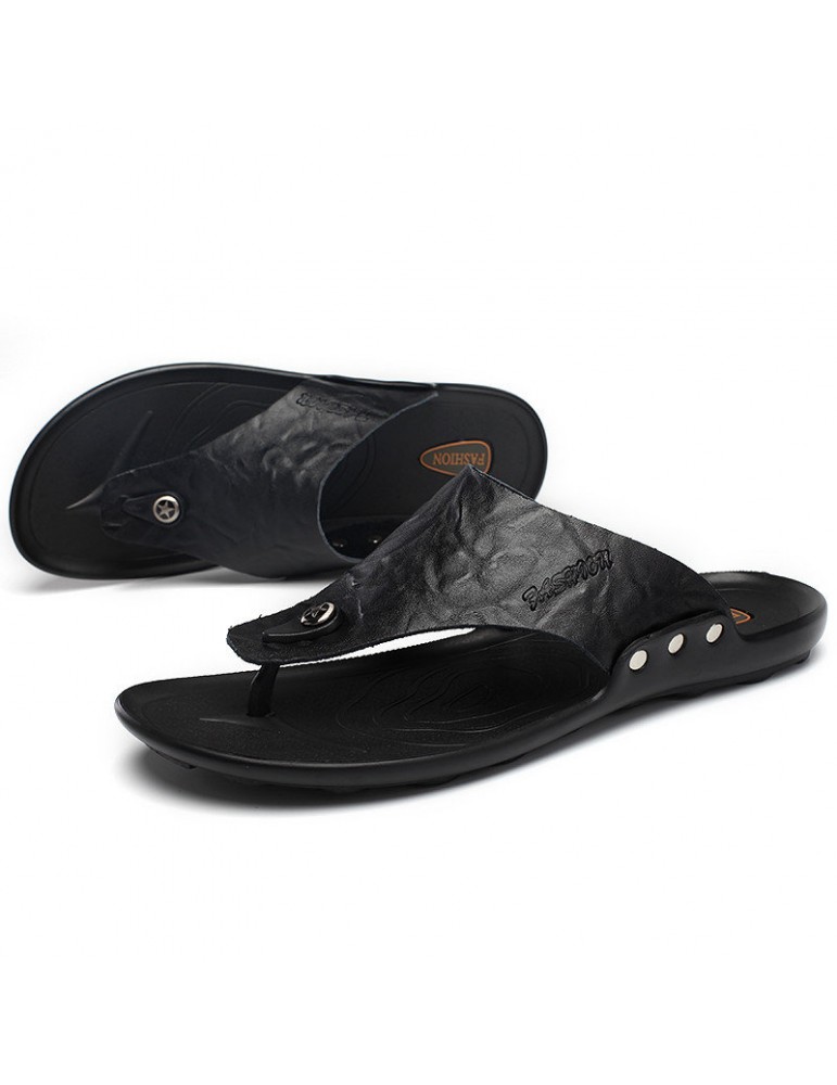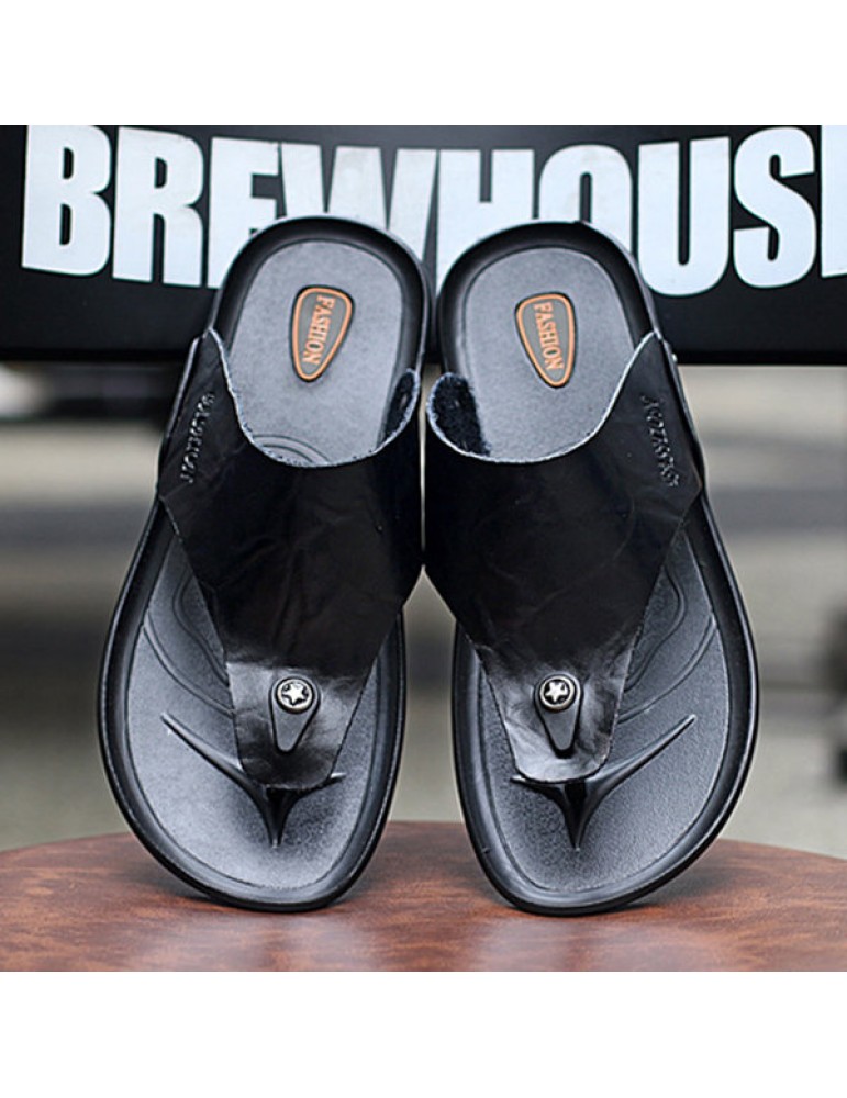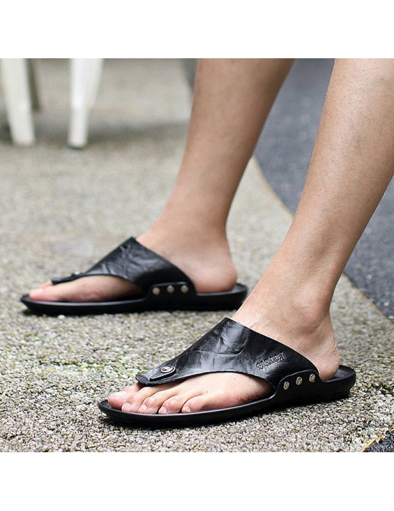 Men Clip Toe Soft Water Friendly Leather Flip Flops