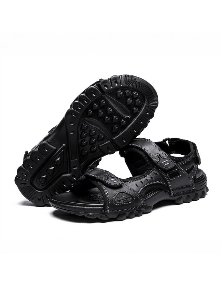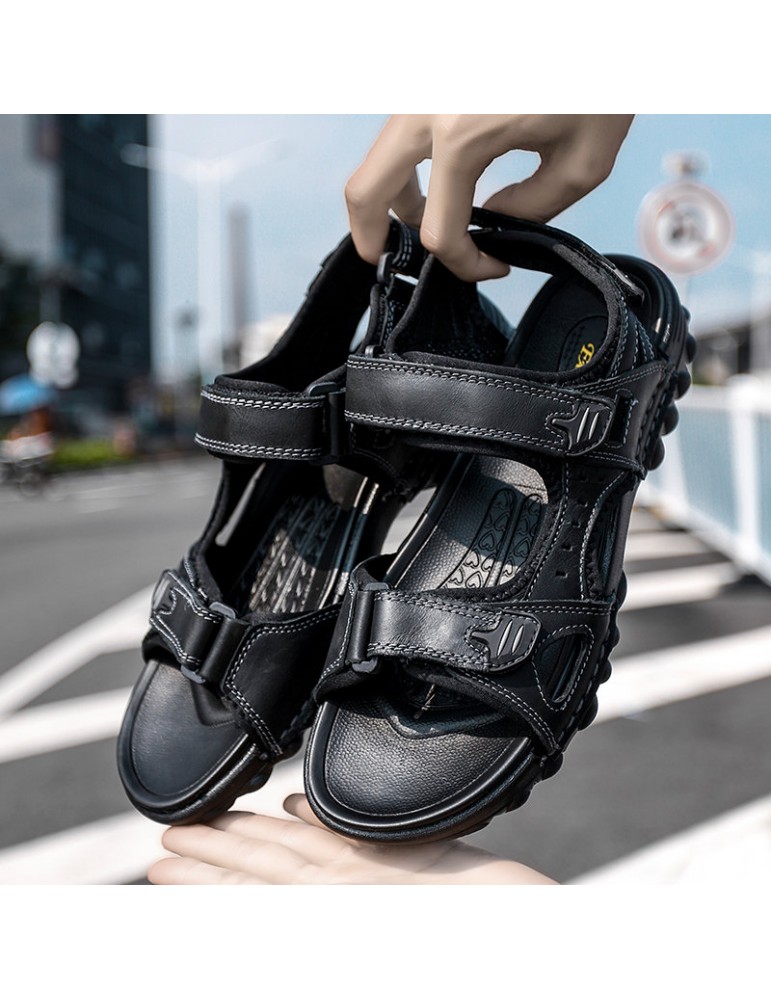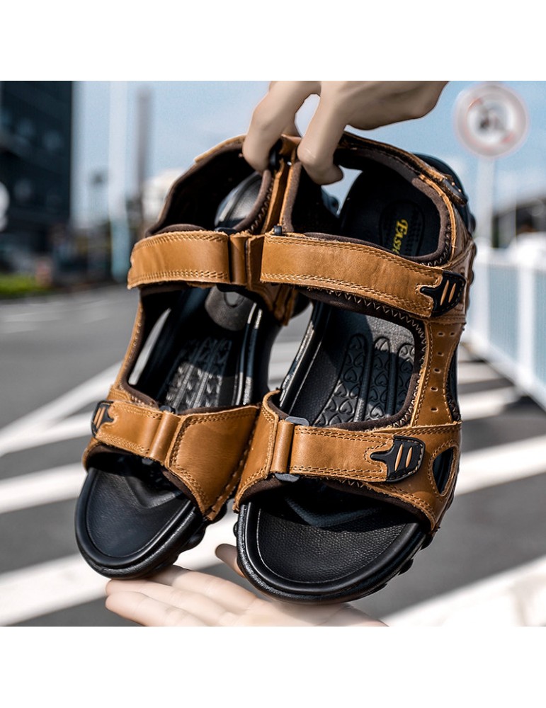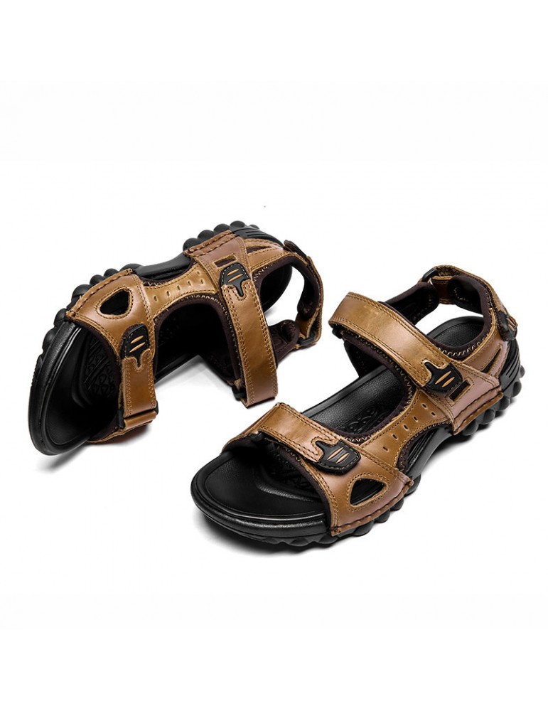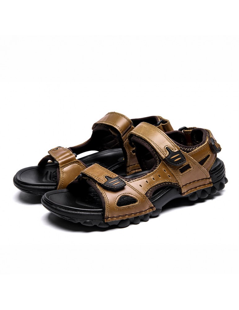 Men Double Hook Loop Outdoor Slip Resistant Comfy Leather Sandals