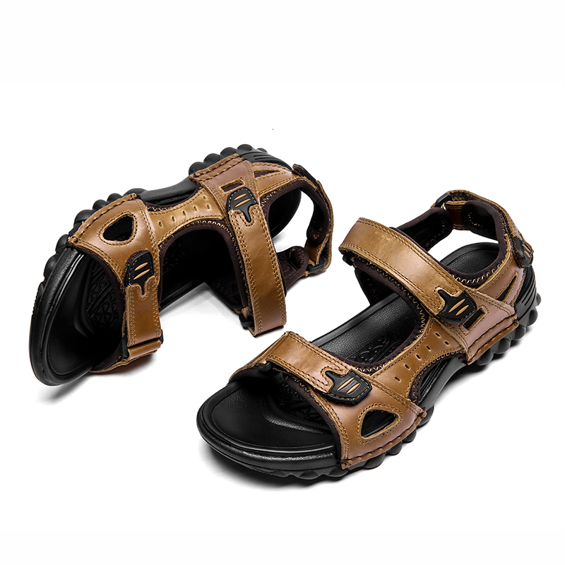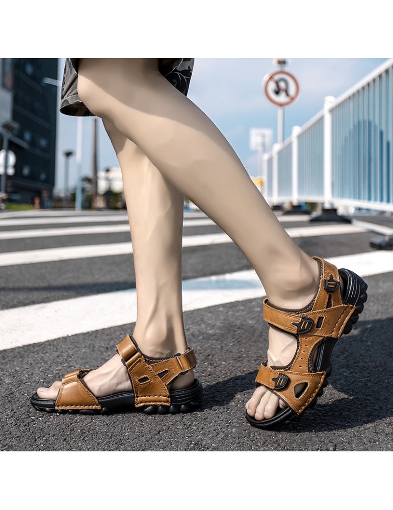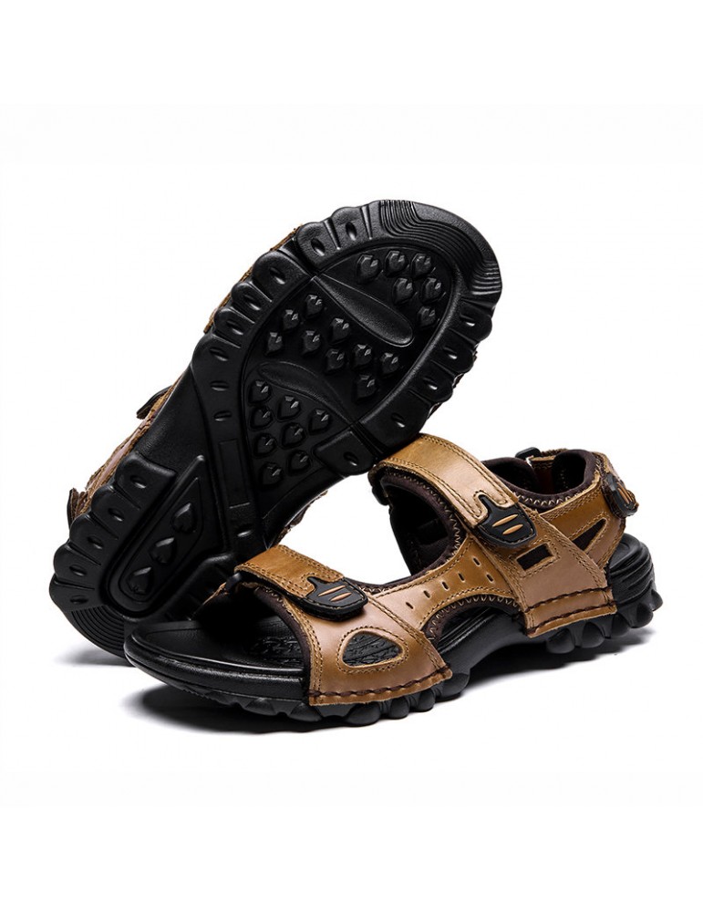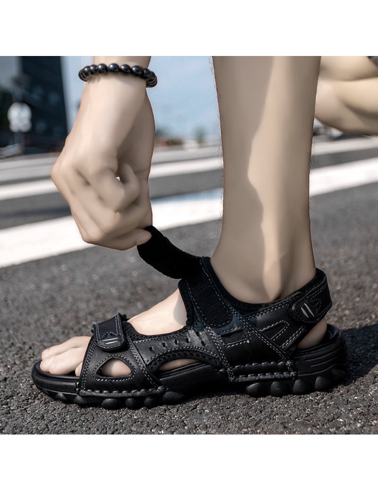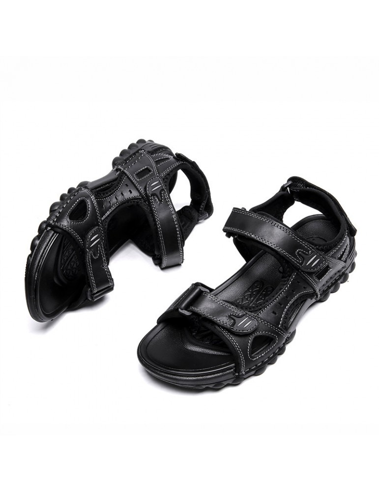 Men Double Hook Loop Outdoor Slip Resistant Comfy Leather Sandals