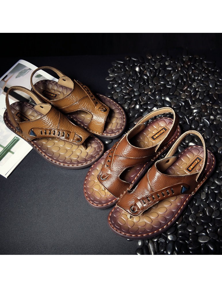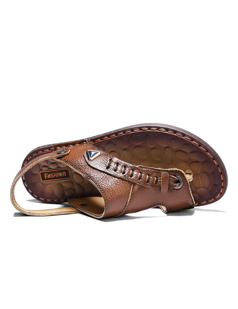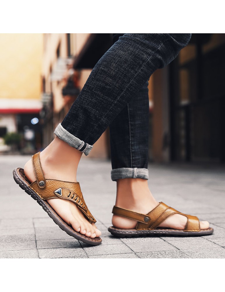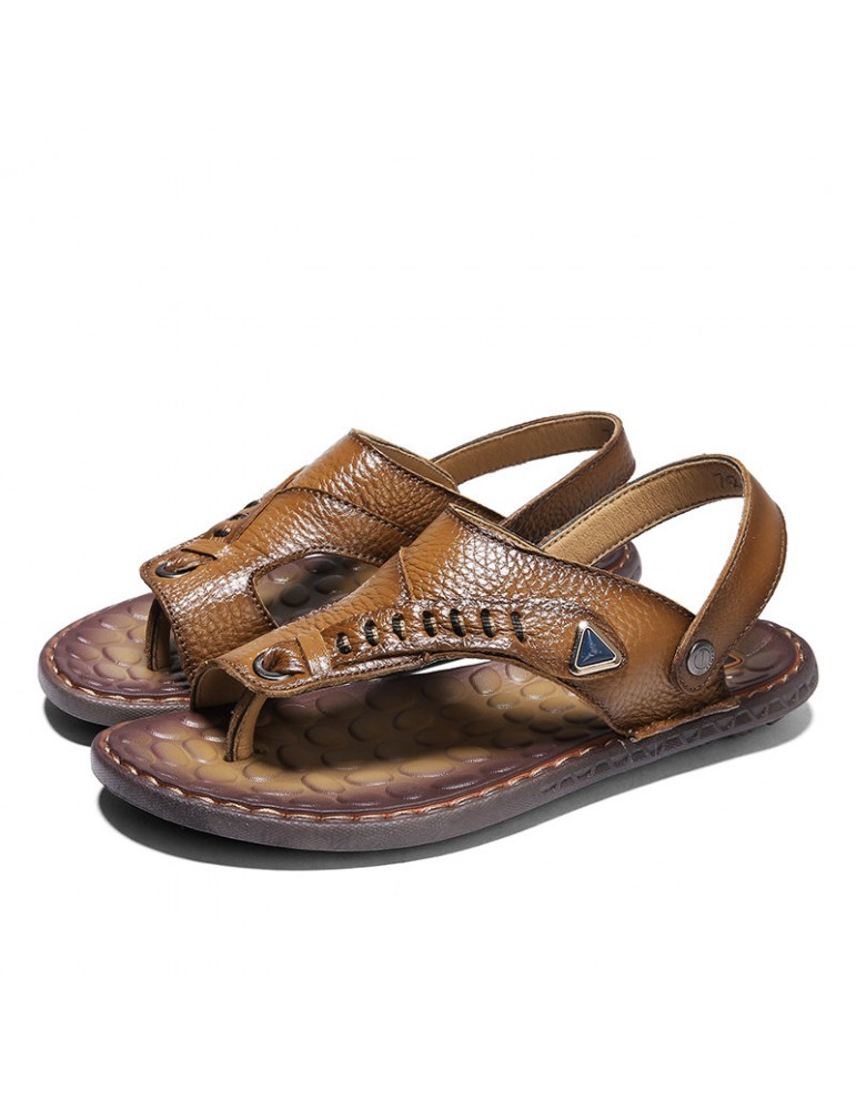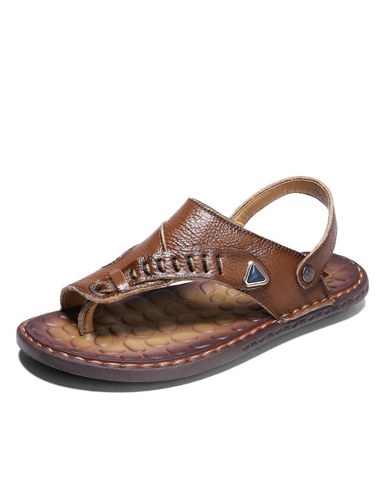Men Genuine Leather Metal Buckle Clip Toe Casual Sandals