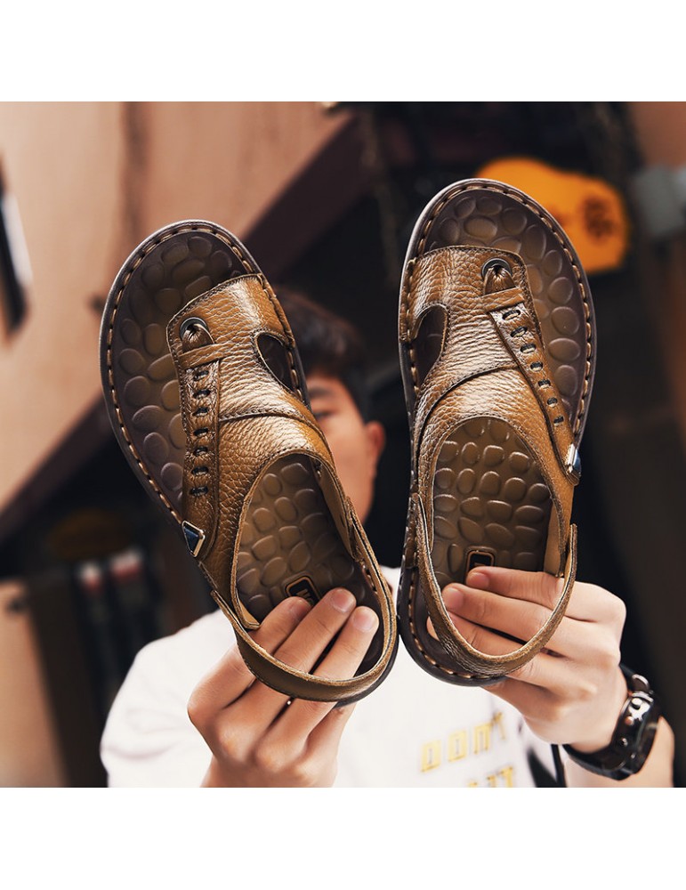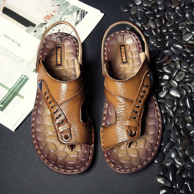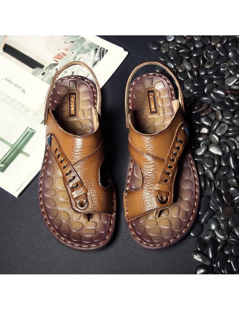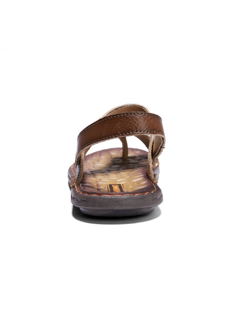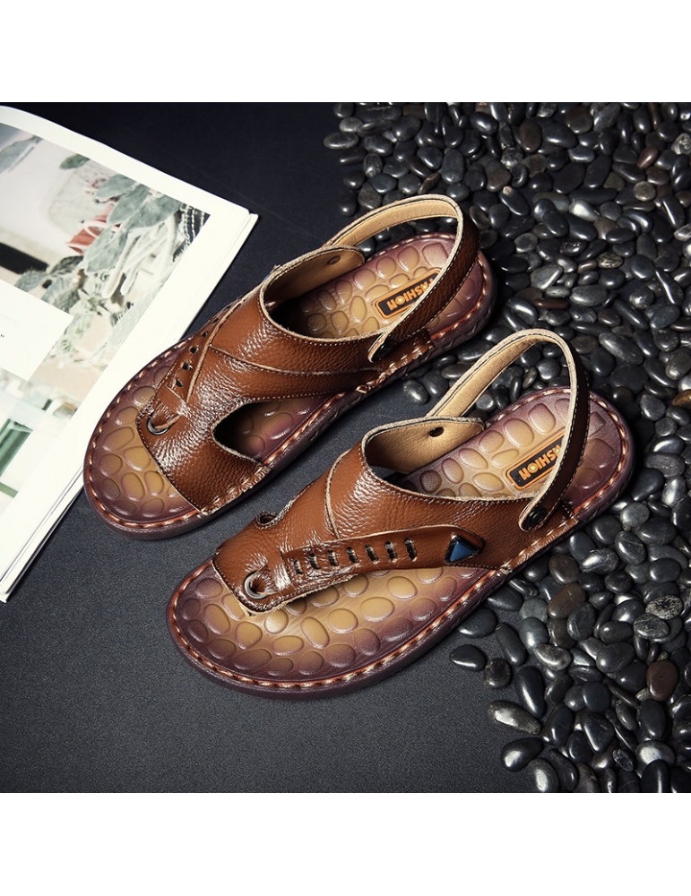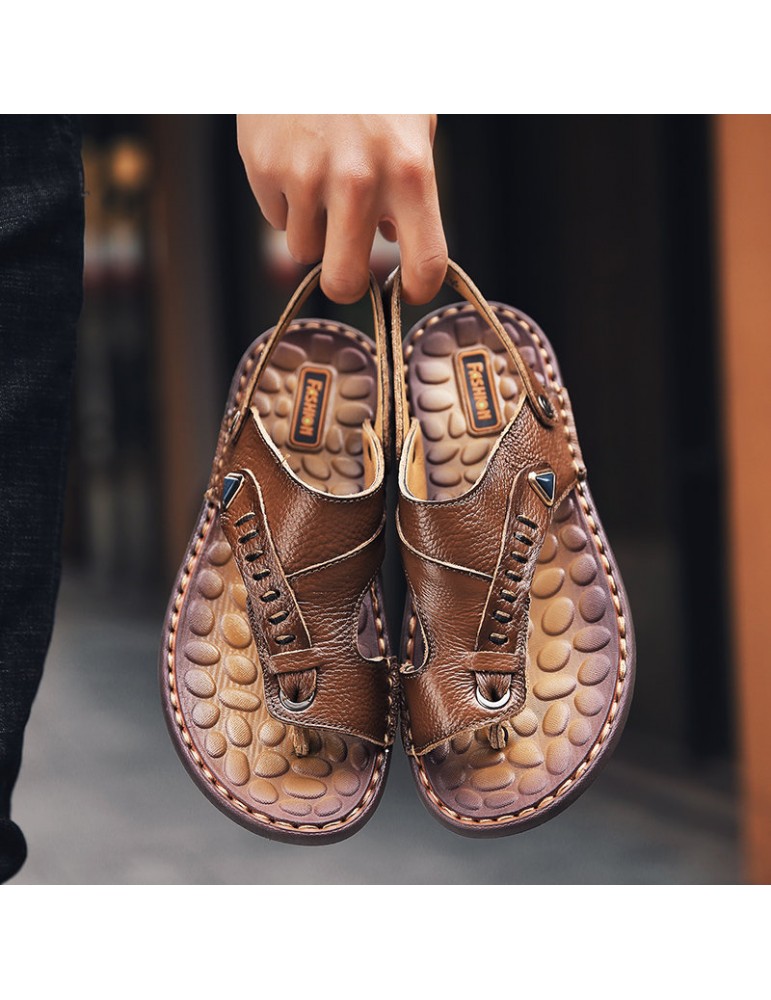 Men Genuine Leather Metal Buckle Clip Toe Casual Sandals