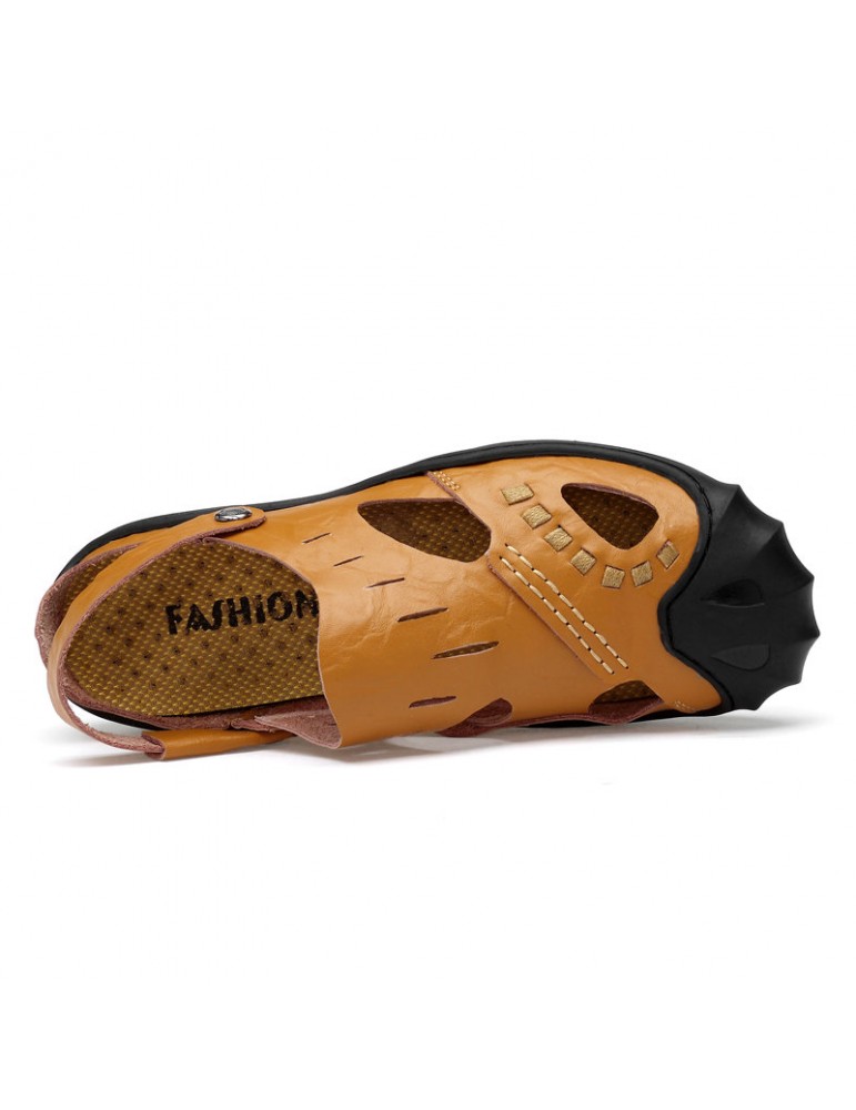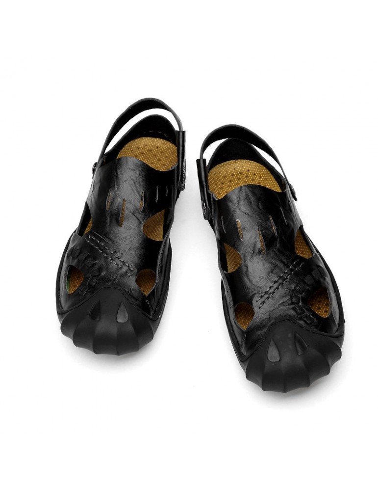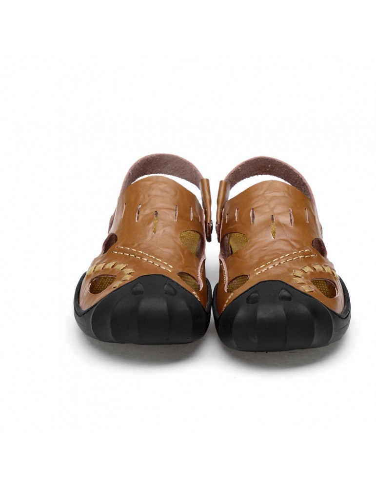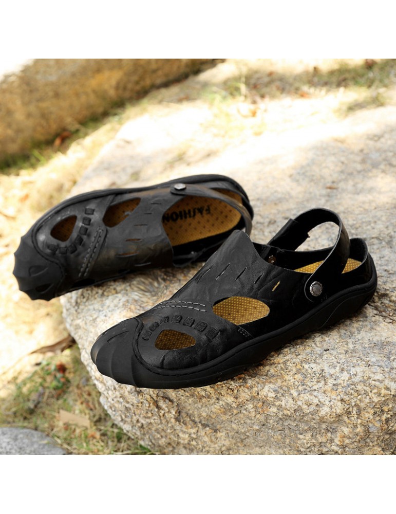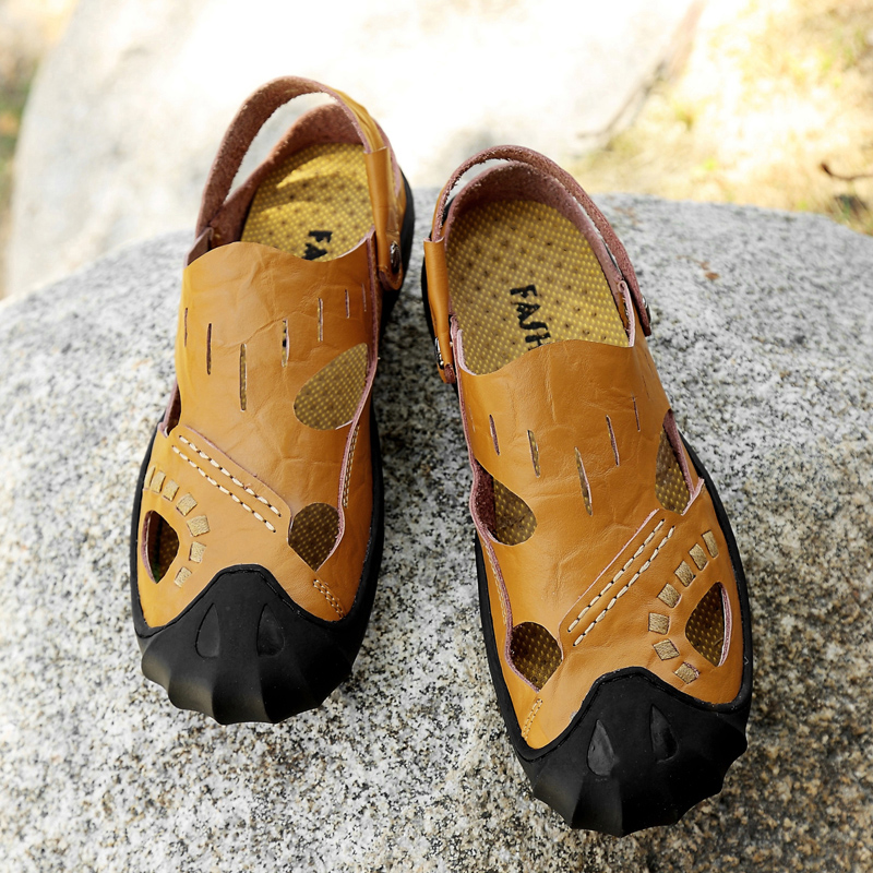 Men Anti-collision Toe Outdoor Slip Resistant Soft Leather Sandals