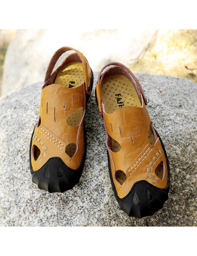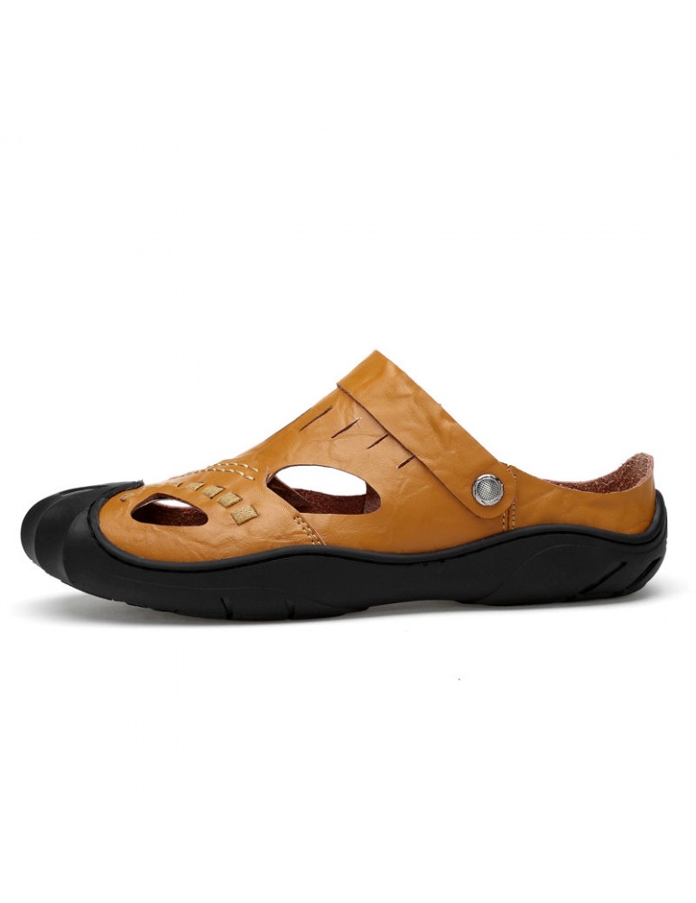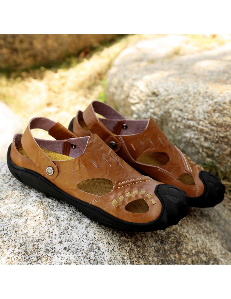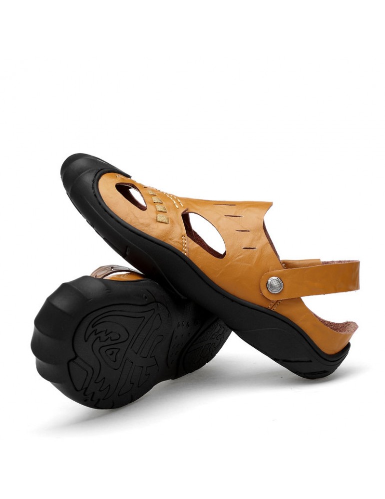 Men Anti-collision Toe Outdoor Slip Resistant Soft Leather Sandals