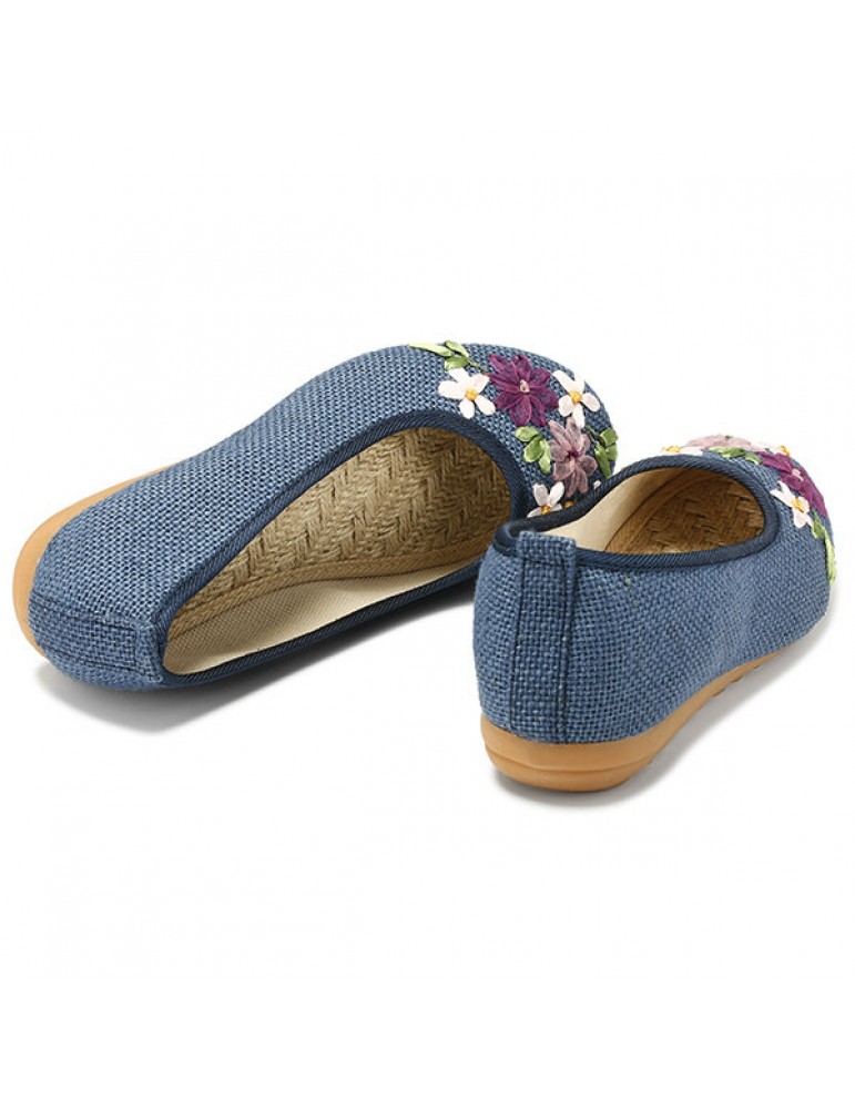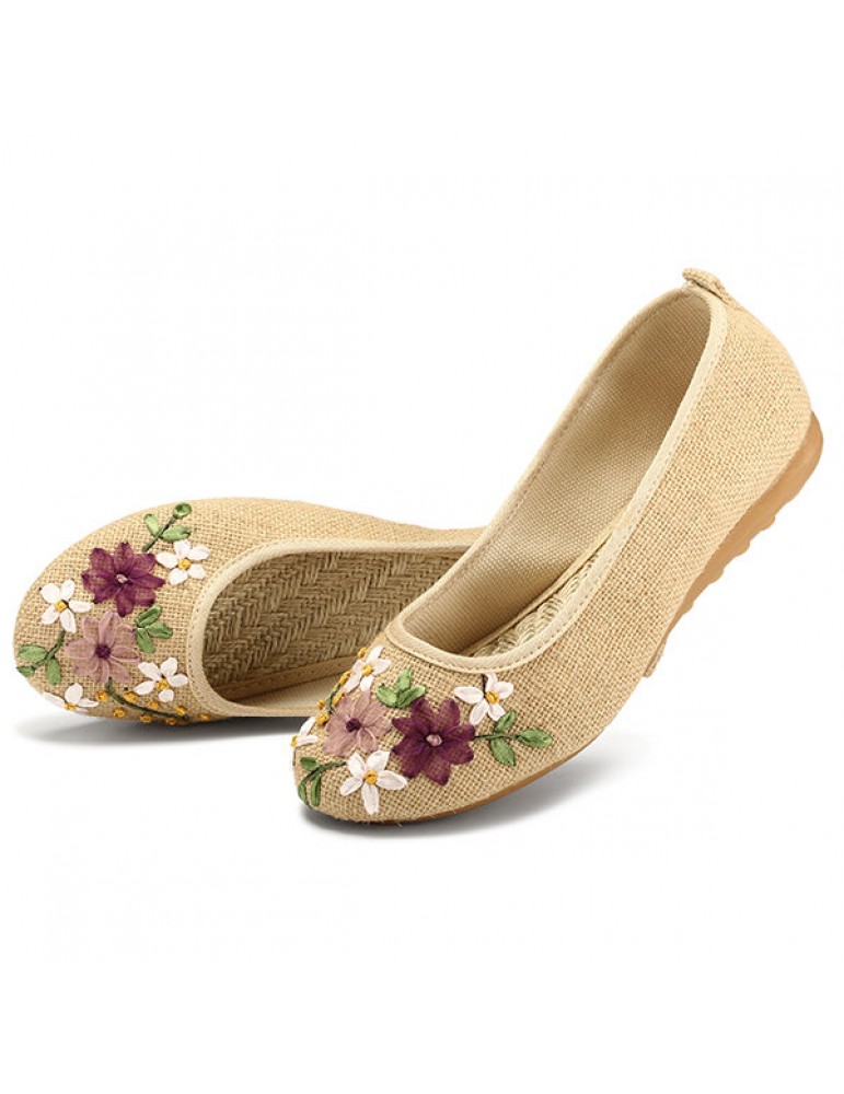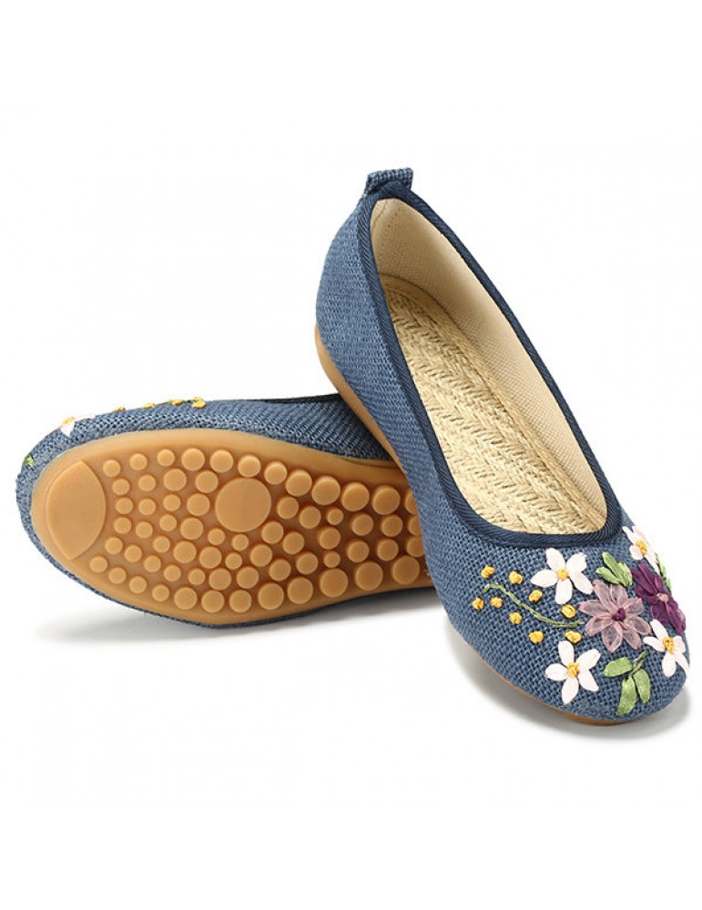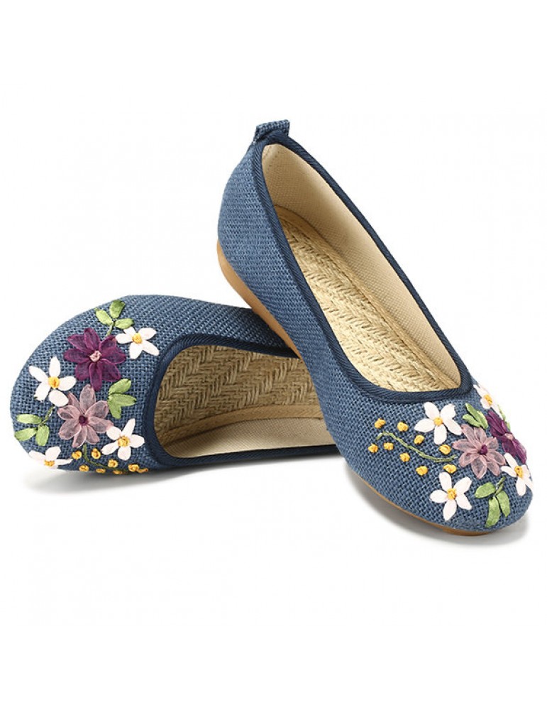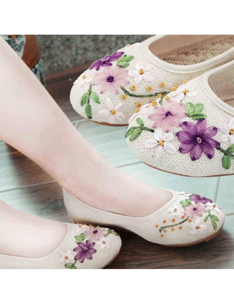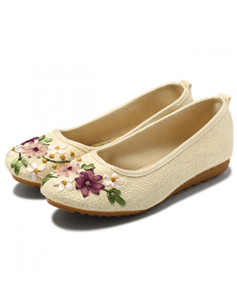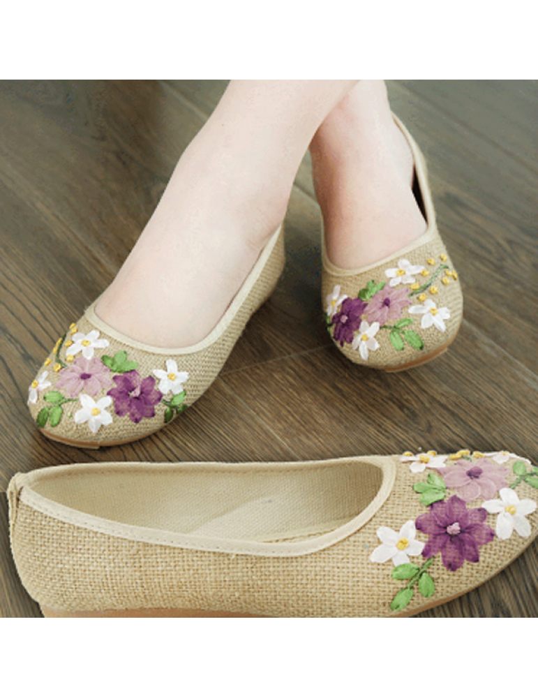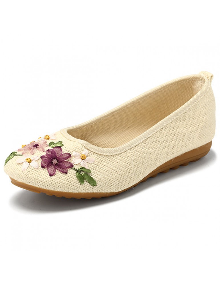 Big Size Flower Print National Wind Slip On Flat Shoes