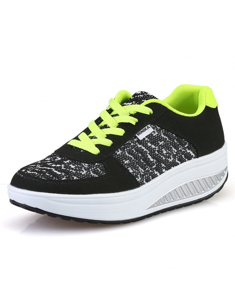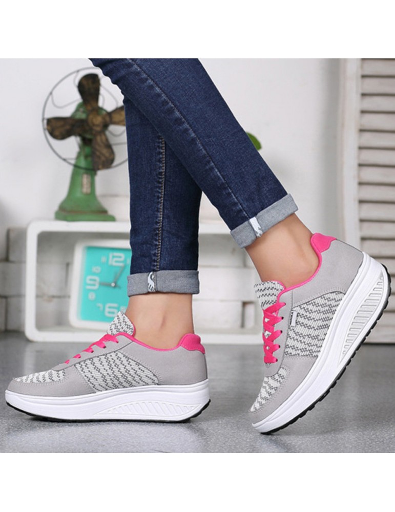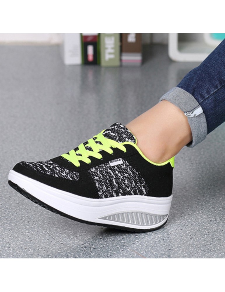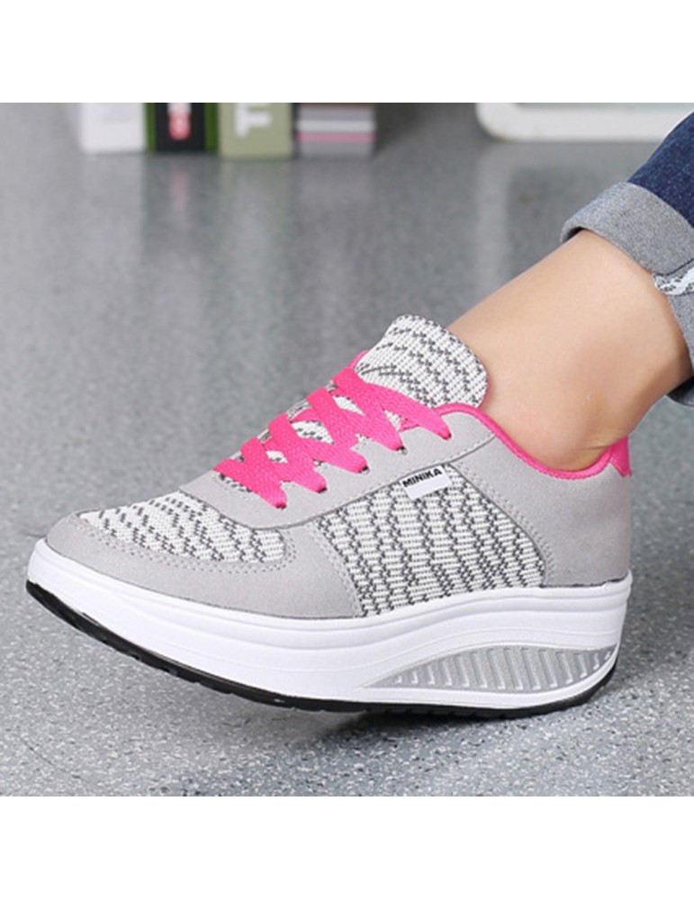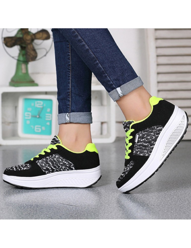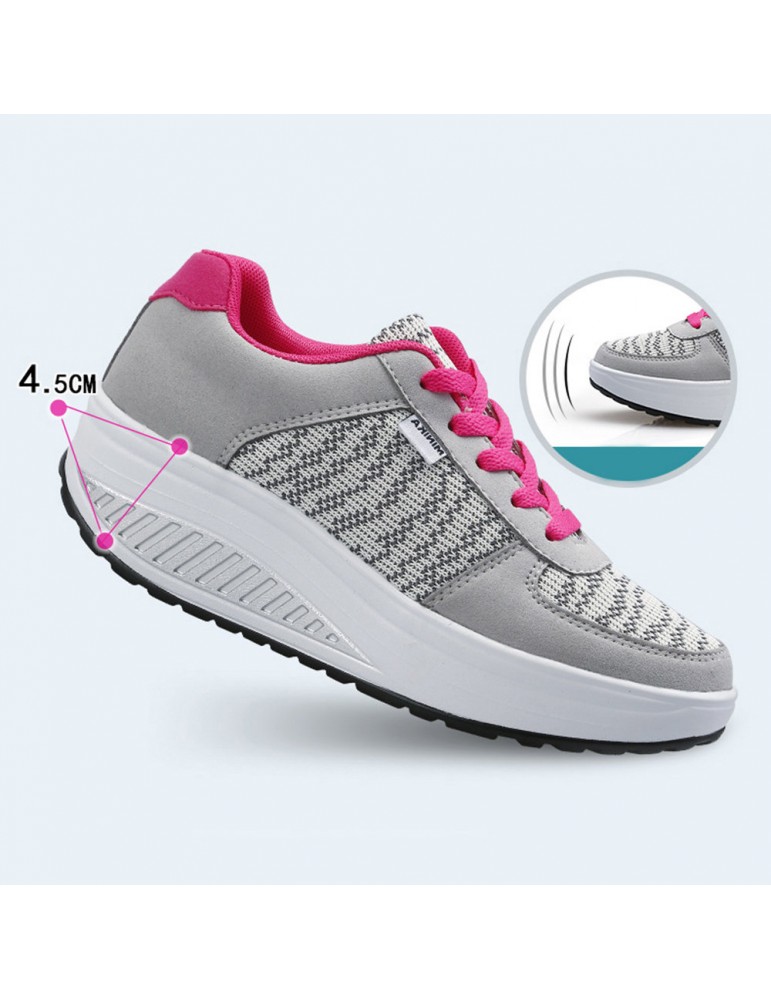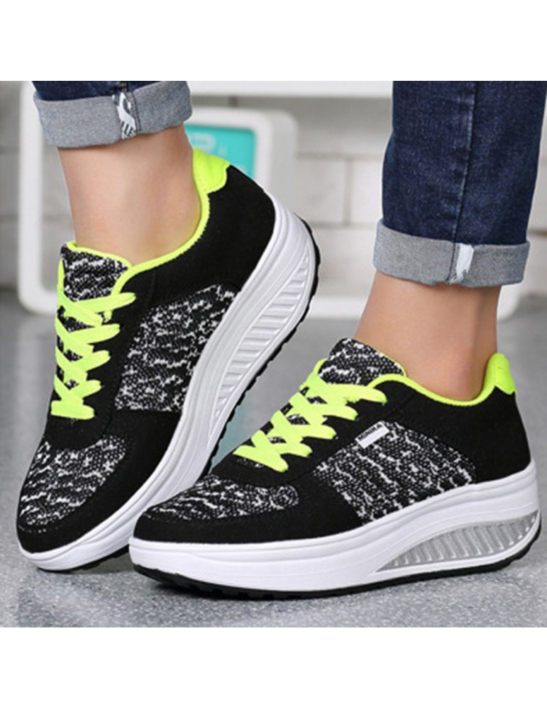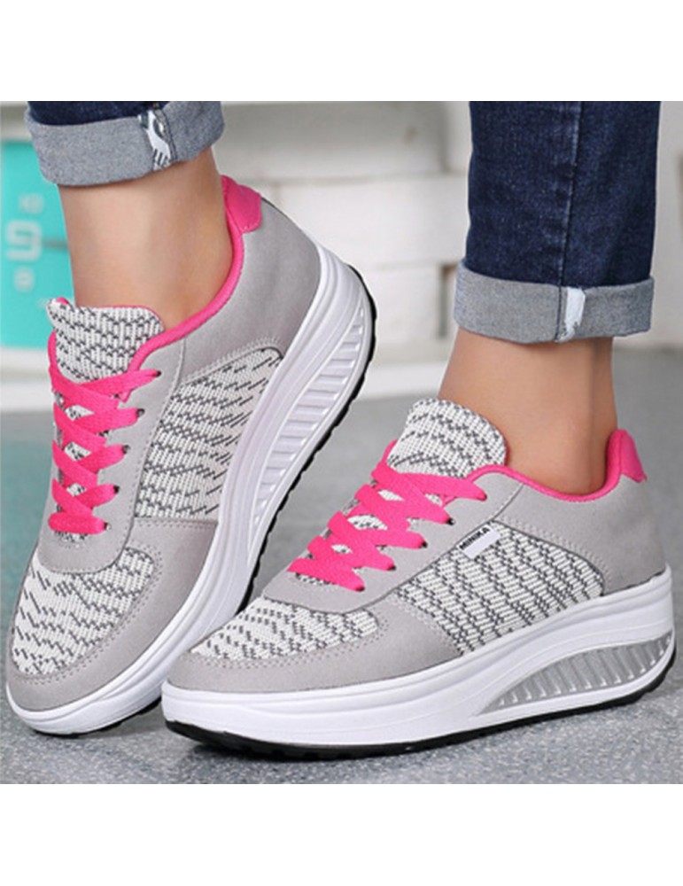 Women Mesh Splicing Rocker Sole Lace Up Platform Shoes