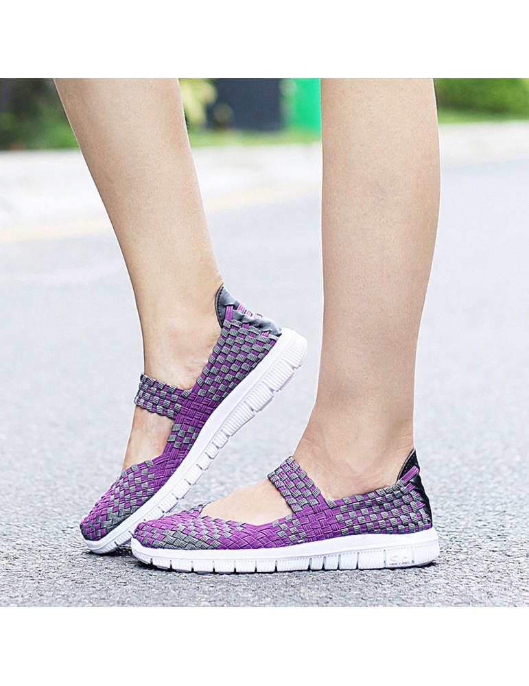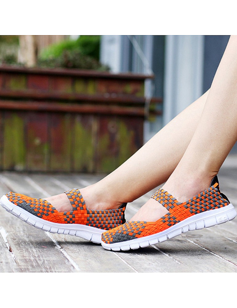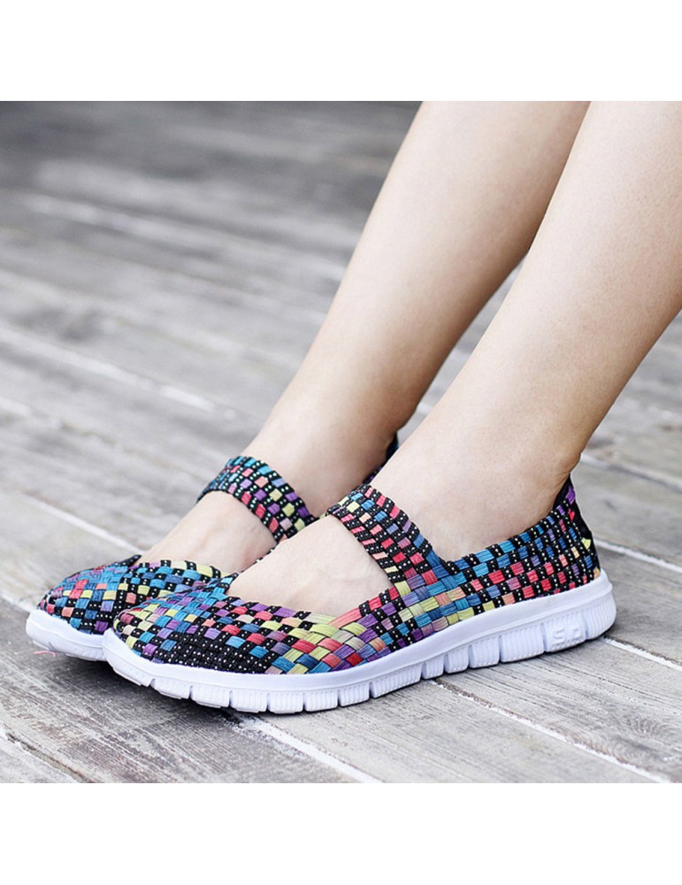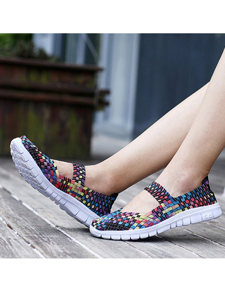 Multi-color Elastic Slip On Flat Athletic Shoes