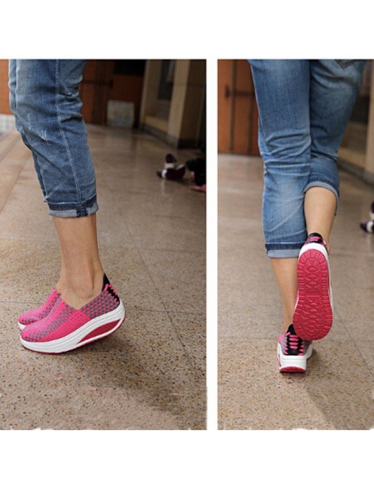 Stretch Casual Breathable Knitting Platform Slip On Shook Shoes Sneakers